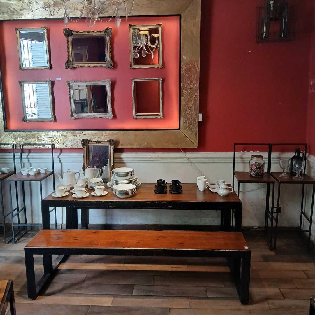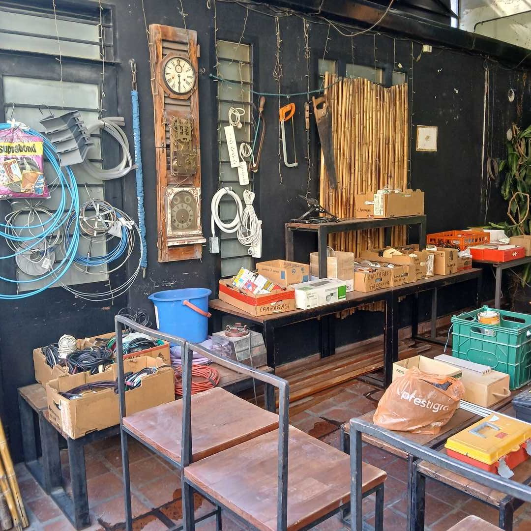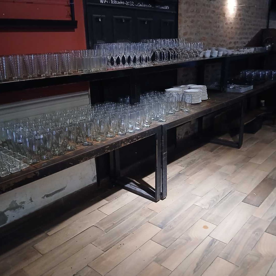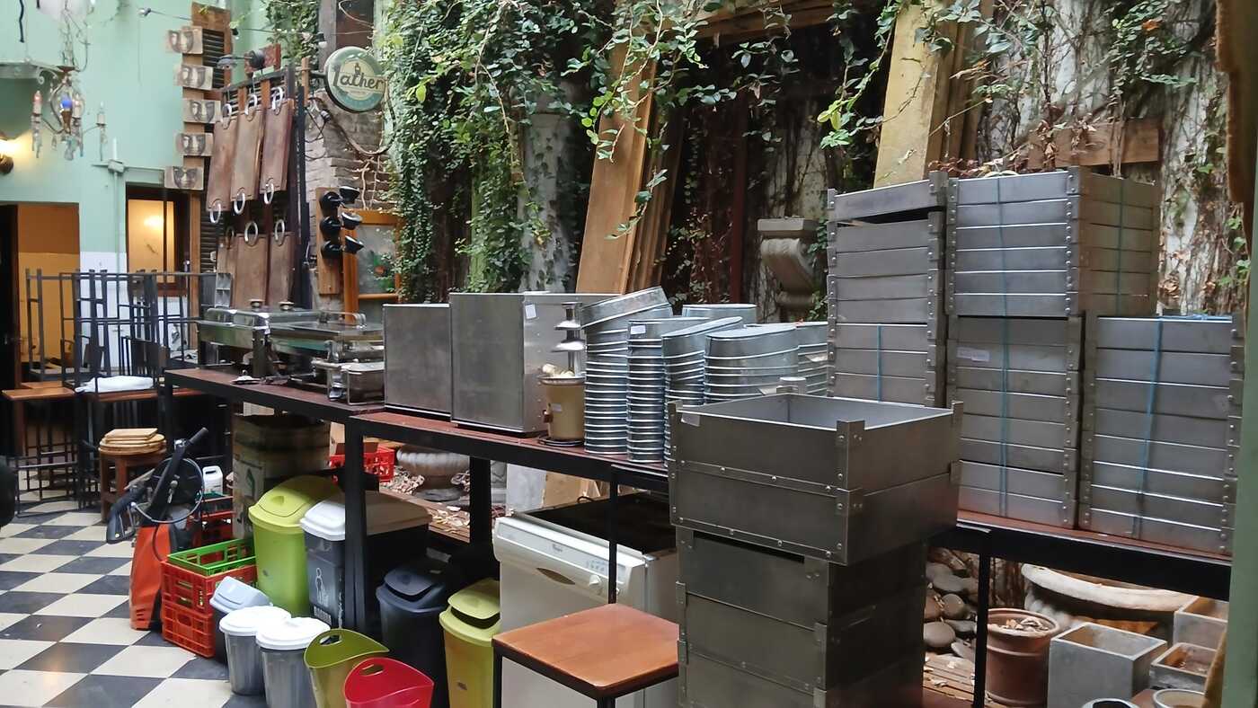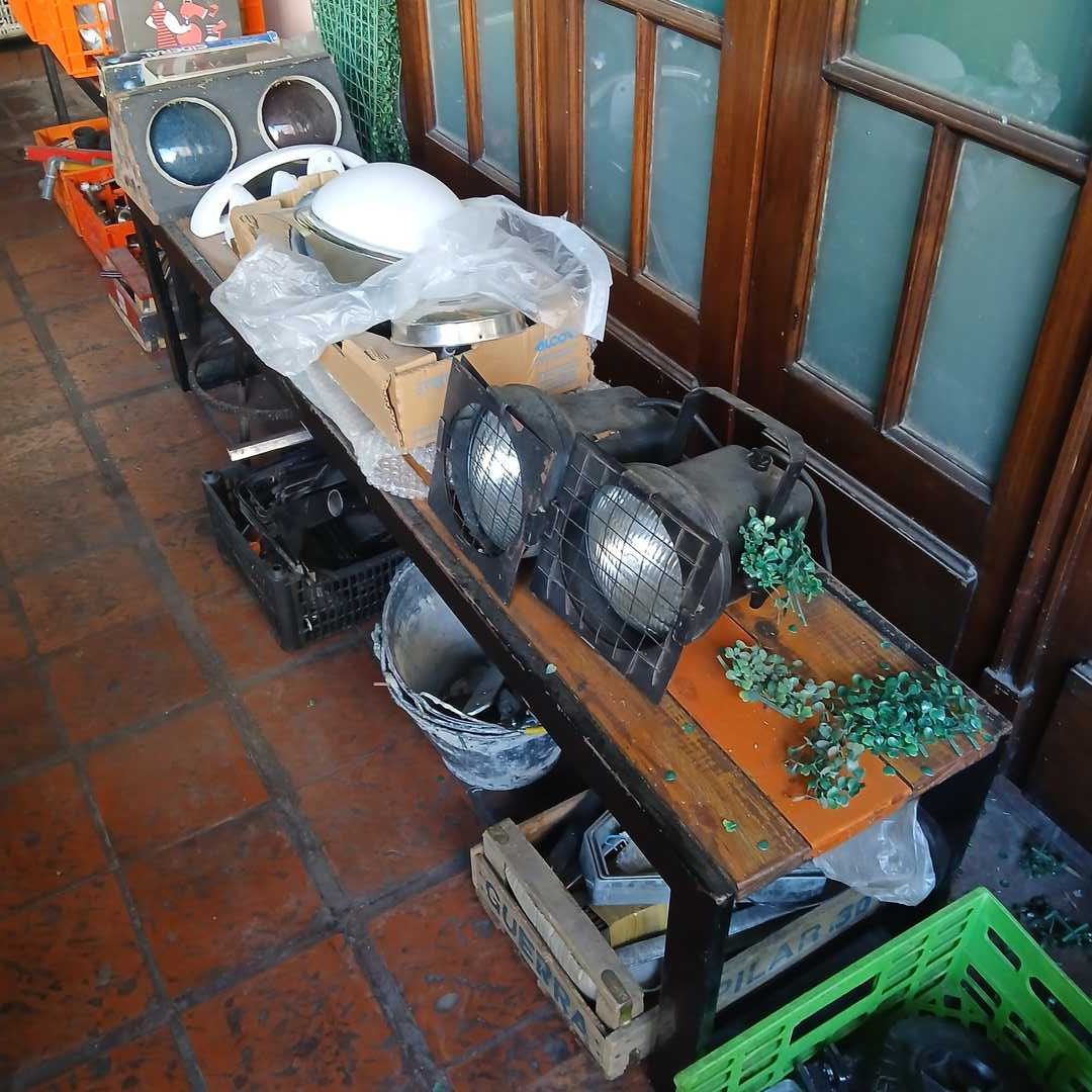 Juego de sala 3 piezas estilo vintage americano; banqueta capitoné; barra estructura de hierro y madera con ruedas; mesas circulares con estructura de barril con o sin sombrilla; estantes de algarrobo; mueble vajillero tapa mármol y madera patinada verde; mueble de guardado; mesa con patas largas y cortas 140 x 140 cm; par bibliotecas con 2 puertas vidrio repartido; escritorio; puerta de cedro para decoración-Adornos y vajilla; jofaina Villeroy & Bosch; vajilla blanca platos cuadrados; lote vajilla blanca con virola plateada Tsuji; tazas de café y platos de postre Tsuji; copas, vasos, botellones, jarras, floreros, ensaladeras; adorno surtidor Shell; reloj de pared con números romanos y otros de pared; pedestal de madera antiguo; campana; espejos patinado en verde, de puertas antiguas, con marco de chapa redondo y otros; arañas bronce con caireles, caireles vidrio en tonalidades verdes, en vidrio transparente con caireles y pantallas rojas 6 luces, con 5 luces con pantallas negras, de hierro pequeña 4 luces, otras; riel de techo 3 luces halógenas; lámparas de aluminio; luces galponeras-TV Sony Bravía 37″ con soporte pared; minicomponente JVC; equipos de música Sony / 2 parlantes JVC y Sony; amplificador Technics; sintonizador Technics; proyector Vivi Bright; pantalla Daza gigante 320 cm; máquina de coser; pantallas colgantes artesanales; lavavajillas Whirlpool; hidrolavadora Mas Star; termotanque Acquapiu 1100 litros; cava Whirlpool para 10 botellas; caja de seguridad negra Top House; heladera almacenera vertical Jordon, 2 puertas con ruedas; heladera mostrador 190 x 75 x 100 cm; cocina con plancha y horno profesional; otra cocina 4 hornallas con horno, 80 cm de frente; aire acondicionado Carrier trifácico frío/calor 15000; aire acondicionado Surrey 3000 f frío/calor; ventilador de mesa Stylo; cámara de frío para gastronomía; calefactores Ciroc de 30000 k y 6,44m largo; fuente cascada de chocolate; batidora/amasadora Kitchen Aid; máquina de hacer pastas; partes automotrices antiguas para decoración; chapa lumínica de cerveza; letreros colgantes; chapas de propagandas, carteles; sombrillas publicitarias; sombrillas con luces LED panel solar; mesas plegables de madera, sillas plegables director con publicidad; banquetas estructura en hierro y asiento de madera; bancos de madera; espejos lumínicos con marco de madera con luces led; bancos con estructura metálica largos y cortos; mesas altas negras, bancos negros con respaldo; mesas largas y cortas con estructura metálica y madera, sillas plásticas naranjas; banquetas en eco cuero y estructura cromada regulable; estructuras estantería en hierro colgante (2 y 3 metros); pizarra; estantería cromada con 5 estantes; pilón de canillas cerveceras (despacho de cerveza) 8 canillas cada una; refrescadores de plástico y vidrio; cubiertos acero inoxidable Gamuza, otros sueltos genéricos; bandejas y champagnera acero inoxidable; porta tortas, porta canapés y asaderas de aluminio; variedad de bebidas; cafeteras, pavas, jarras, teteras, utensilios; paelleras; morteros de madera; cortadora de fiambre; cuchillo eléctrico; máquina pela papas con lijas Metvisa; tablas de madera redondas y rectangulares, con manija; escaleras madera y aluminio; 5 estanterías metálicas 90 x 60 cm; 2 sets de llamadores gastronómicos; bañera en hierro con patas; escurridor gastronómico acero; variedad ollas gastronómicas con tapas aluminio; olla a presión, sartenes; artículos de camping: carpas, bolsas de dormir, gazebo, marmitas, sillas; banco de carpintero, herramientas, variedad de elementos albañilería, variedad elementos de electricidad; cascos bicicleta; silla de comer; adornos, artículos de decoración, caireles, puntillas; alfombra-Ropa hombre y mujer, zapatos, zapatillas; carteras, bijoux y más…