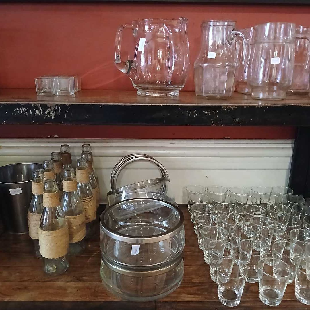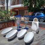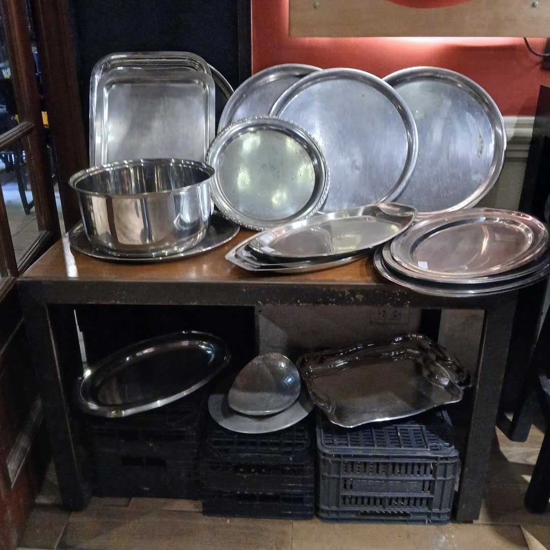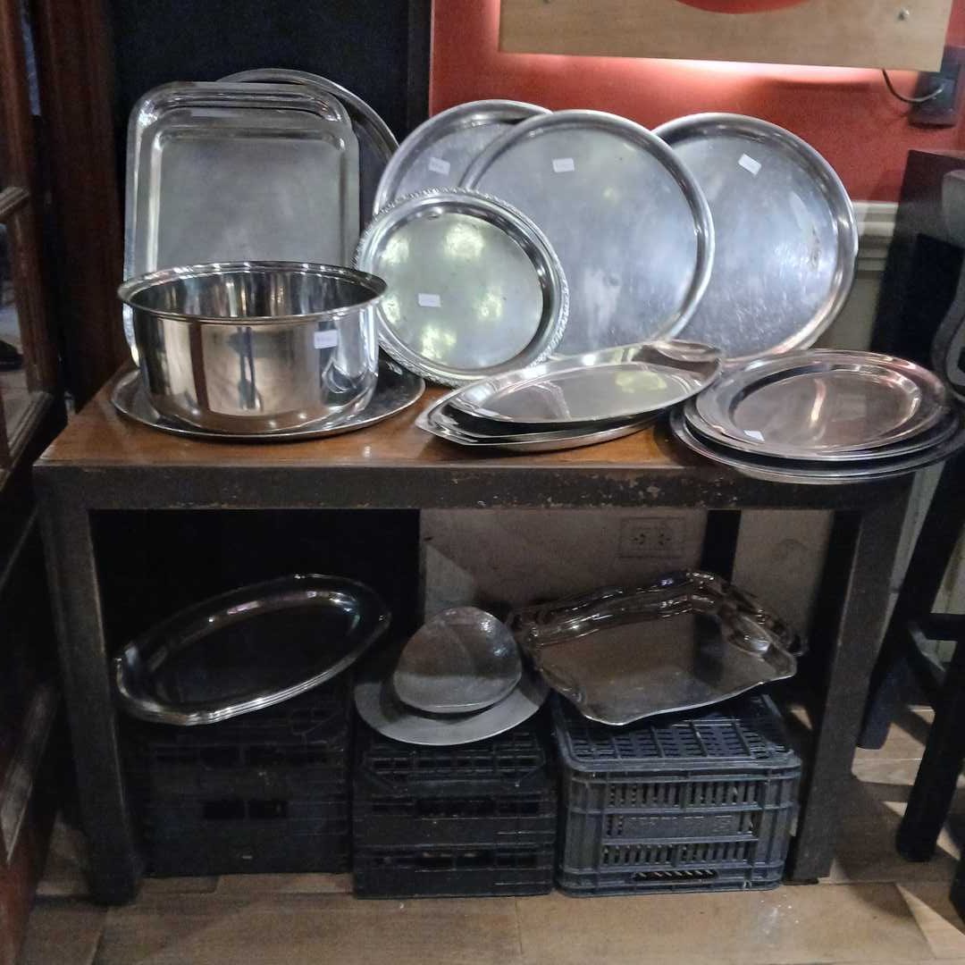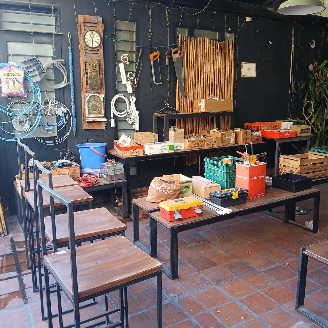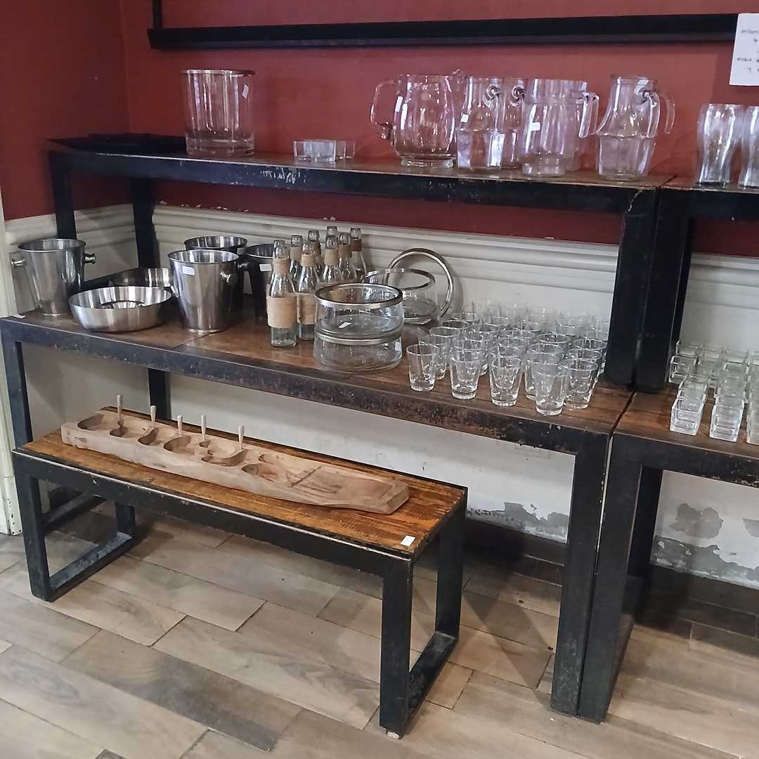 Juego de sala 3 piezas estilo vintage americano; banqueta capitoné; barra estructura de hierro y madera con ruedas; mesas circulares con estructura de barril con o sin sombrilla; estantes de algarrobo; mueble vajillero tapa mármol y madera patinada verde; mueble de guardado; mesa con patas largas y cortas 140 x 140 cm; par bibliotecas con 2 puertas vidrio repartido; escritorio; puerta de cedro para decoración-Adornos y vajilla; jofaina Villeroy & Bosch; vajilla blanca platos cuadrados; lote vajilla blanca con virola plateada Tsuji; tazas de café y platos de postre Tsuji; copas, vasos, botellones, jarras, floreros, ensaladeras; adorno surtidor Shell; reloj de pared con números romanos y otros de pared; pedestal de madera antiguo; campana; espejos patinado en verde, de puertas antiguas, con marco de chapa redondo y otros; arañas bronce con caireles, caireles vidrio en tonalidades verdes, en vidrio transparente con caireles y pantallas rojas 6 luces, con 5 luces con pantallas negras, de hierro pequeña 4 luces, otras; riel de techo 3 luces halógenas; lámparas de aluminio; luces galponeras-TV Sony Bravía 37″ con soporte pared; minicomponente JVC; equipos de música Sony / 2 parlantes JVC y Sony; amplificador Technics; sintonizador Technics; proyector Vivi Bright; pantalla Daza gigante 320 cm; máquina de coser; pantallas colgantes artesanales; lavavajillas Whirlpool; hidrolavadora Mas Star; termotanque Acquapiu 1100 litros; cava Whirlpool para 10 botellas; caja de seguridad negra Top House; heladera almacenera vertical Jordon, 2 puertas con ruedas; heladera mostrador 190 x 75 x 100 cm; cocina con plancha y horno profesional; otra cocina 4 hornallas con horno, 80 cm de frente; aire acondicionado Carrier trifácico frío/calor 15000; aire acondicionado Surrey 3000 f frío/calor; ventilador de mesa Stylo; cámara de frío para gastronomía; calefactores Ciroc de 30000 k y 6,44m largo; fuente cascada de chocolate; batidora/amasadora Kitchen Aid; máquina de hacer pastas; partes automotrices antiguas para decoración; chapa lumínica de cerveza; letreros colgantes; chapas de propagandas, carteles; sombrillas publicitarias; sombrillas con luces LED panel solar; mesas plegables de madera, sillas plegables director con publicidad; banquetas estructura en hierro y asiento de madera; bancos de madera; espejos lumínicos con marco de madera con luces led; bancos con estructura metálica largos y cortos; mesas altas negras, bancos negros con respaldo; mesas largas y cortas con estructura metálica y madera, sillas plásticas naranjas; banquetas en eco cuero y estructura cromada regulable; estructuras estantería en hierro colgante (2 y 3 metros); pizarra; estantería cromada con 5 estantes; pilón de canillas cerveceras (despacho de cerveza) 8 canillas cada una; refrescadores de plástico y vidrio; cubiertos acero inoxidable Gamuza, otros sueltos genéricos; bandejas y champagnera acero inoxidable; porta tortas, porta canapés y asaderas de aluminio; variedad de bebidas; cafeteras, pavas, jarras, teteras, utensilios; paelleras; morteros de madera; cortadora de fiambre; cuchillo eléctrico; máquina pela papas con lijas Metvisa; tablas de madera redondas y rectangulares, con manija; escaleras madera y aluminio; 5 estanterías metálicas 90 x 60 cm; 2 sets de llamadores gastronómicos; bañera en hierro con patas; escurridor gastronómico acero; variedad ollas gastronómicas con tapas aluminio; olla a presión, sartenes; artículos de camping: carpas, bolsas de dormir, gazebo, marmitas, sillas; banco de carpintero, herramientas, variedad de elementos albañilería, variedad elementos de electricidad; cascos bicicleta; silla de comer; adornos, artículos de decoración, caireles, puntillas; alfombra-Ropa hombre y mujer, zapatos, zapatillas; carteras, bijoux y más…