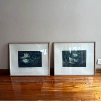 Par de cuadros temple sobre papel serie “Aguas”, M. Silvia Corcuera Teran
