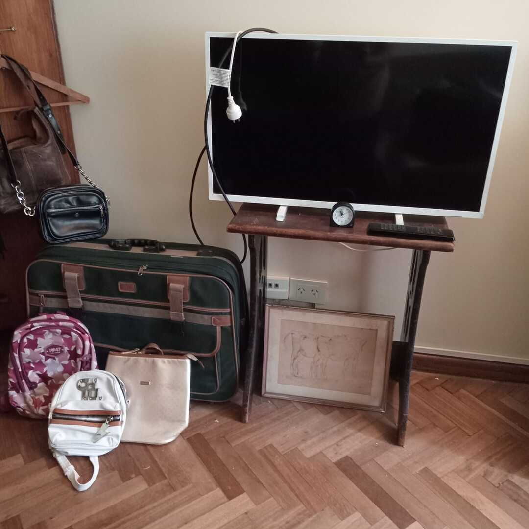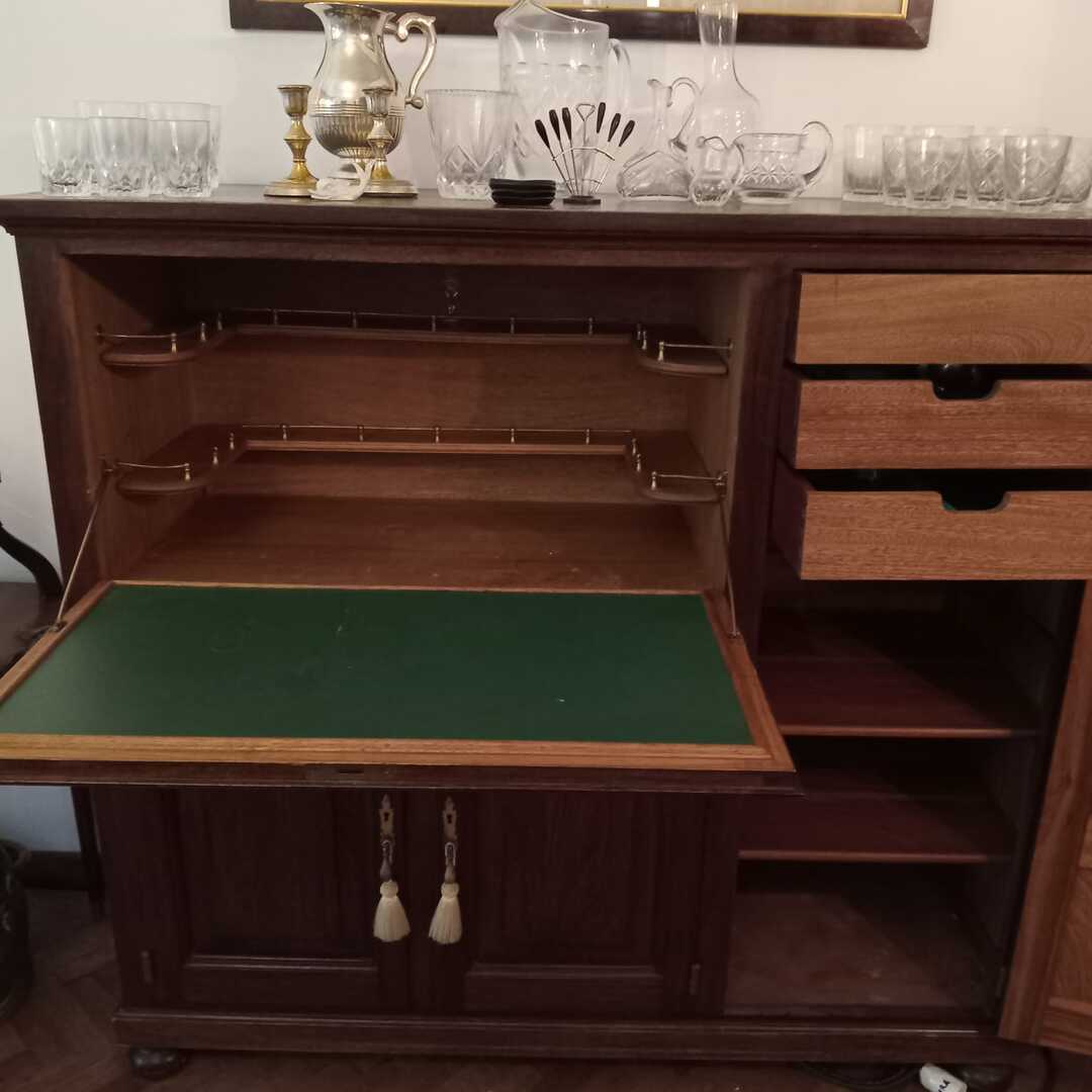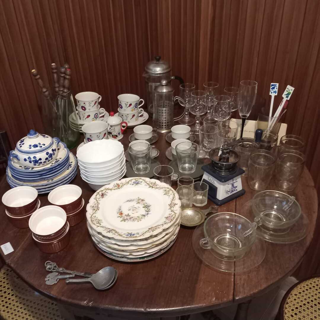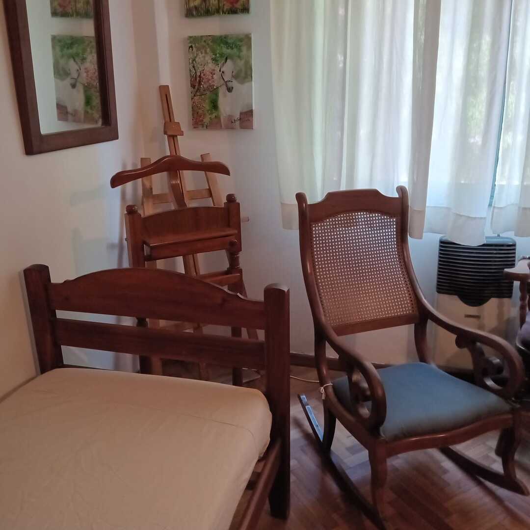 Sofá 3 cuerpos tapizado en pana verde; sofá 2 cuerpos tapizado floreado con respaldo capitoné; sillón 1 cuerpo en color maíz; sillón 1 cuerpo formato herradura; silla respaldo labrado asiento tapizado; silla hamaca; silla matera; sillón hamaca; mesas auxiliares: tapa rectangular, estilo Adams con alas y cajones, mayordomo estilo Francés con herrajes y aplicaciones bronce, nido estilo Inglés, con alas; mueble de guardado 2 puertas con alzada biblioteca, otro auxiliar 3 canastos; estantería 2 puertas y 3 estantes estilo Inglés; perchero escocés ganchos bronce; escritorio estilo Inglés; comedor: mesa estilo Inglés tapa oval con alargue en roble y 8 sillas asiento tapizado; aparador 3 puertas y tapa volcable; mueble 1 puerta herraje y aplicación bronce; secretaire tapa volcable con puertas, cajón y tapa mármol; mueble auxiliar estilo Francés con tapa volcable y 3 cajones; auxiliar 33 cajones y 1 estante; biblioteca 3 puertas vidriadas y 2 cajones; cómoda 4 cajones herrajes en bronce; cama 2 plazas estilo Francés; colchón 2 plazas; cama 1 plaza y colchón; 2 bases sommier 1 plaza; mesa luz 2 cajones y otras; percha valet-Adornos y vajilla; lote Verbano; tazas de te y café; ensaladera Verbano con 5 compoteras; pequeña guisera en porcelana Inglesa; 6 platos porcelana con monograma; cristalería, lote copas facetadas, copas y vasos, jarras, ensaladeras; piezas en metal plateado, piezas de servir; lote cubiertos metal plateado Christofle; lote cubiertos metal plateado Coquilla; set accesorios vino; pala miguera; revistero en madera; cenicero de pie en hierro; cacharro, paragüero y canasto en bronce; reloj Sol; reloj caja madera; espejos con marco madera, en estilo Francés, con marco alpaca y marco blanco; cuadro religioso; atril; baúl; dibujos «Hotel de mar del Sur»; grabado «Cacería»; par láminas enmarcadas «Aves»; arañas estilo Holandés 6 luces; araña en hierro 4 luces, otra en bronce con tulipa; artefacto lumínico colgante; lámparas color crudo craquelé, en madera figurando columna, con mesa 3 planos estilo Inglés; par veladores figurando columnas, de pie cadena; aplique brazo extensible, par en bronce estilo Holandés-LCD Philips; LCD Tedge; DVD portátil Toshiba; tocadiscos Dual 10195; cámaras de seguridad Ezvis Smart Home Camera H3C-1080P; Blu-Ray LG; DVD Noblex; turbo; ventilador Liliana; caloventor; heladera Whirlpool No Frost 350; microondas; lavarropas Drean; enceradora Waypack; Kooh-i-noor; cafetera eléctrica First Line; grupo electrógeno TyC GE6500E Motor 15HP; cafetera, azucarera y lechera en acero inoxidable, molinillo de café, enseres cocina; mesa carro 2 planos plegable; banco altura regulable; 2 reposeras aluminio y tiras plástico; 3 sillas estilo Inglés; libros; juegos de ajedrez y más…