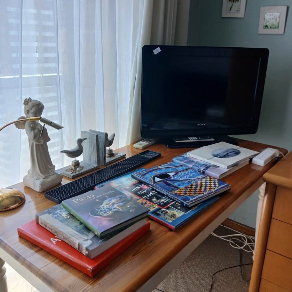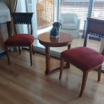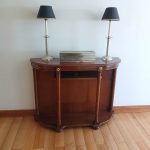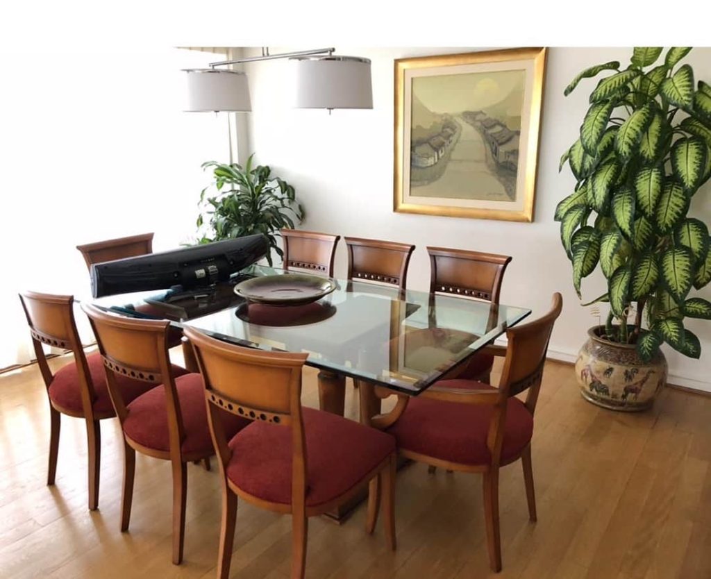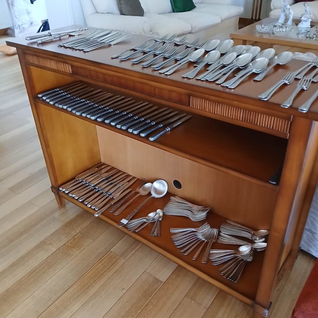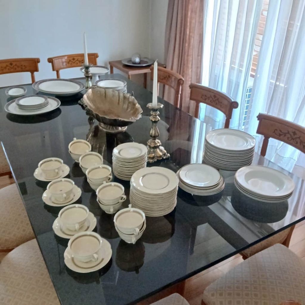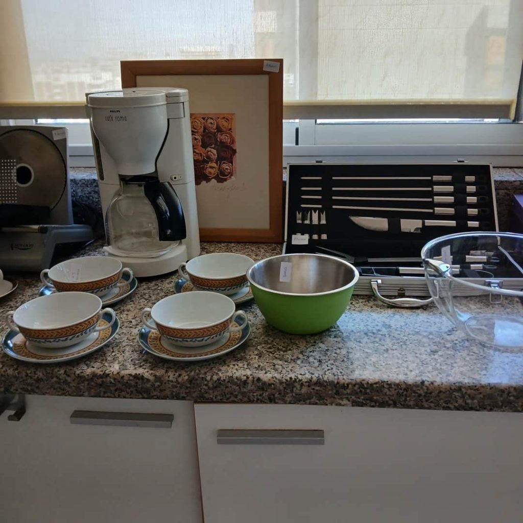 Par sofás 3 cuerpos color crudo; par sillones 1 cuerpo; par sillones bergere en tonos bordó; par sillones bergere rayado en color habano y negro; par silloncitos; banqueta tapizada; sillón relax; siloncitos con apoya brazos; mesas auxiliares: en madera, circular con 3 columnas, par circulares, circular con cajones estilo Inglés, par con 4 columnas estilo Inglés, carro 2 planos, carro de TV; 2 consolas semi curvas con aplique en bronce, otra semi curva con 3 columnas; comedor Fontenla: mesa tapa vítrea con base 100 x 180 cm, 6 sillas y 2 silloncitos; otro comedor: mesa tapa vítrea con base en madera y 10 sillas; vajillero con vitrina enchapado en raíz de nogal; bar con 5 butacas tapizadas Biedermeier; mueble con 3 cajones enchapado en raíz nogal; mueble para TV y biblioteca; mueble doble puerta corrediza; consola vítrea y hierro; cómoda con 4 cajones con espejo; percha valet; cabecera tapizada 1.60, otra en madera; par mesas de luz-Adornos y vajilla: servicio de mesa porcelana Limoges; servicio de te porcelana Tsuji; platos de postre; lote tazas de te y platos postre color crema; lote platos y 2 tazas de te en porcelana europea; 12 tazas de café en porcelana virola dorada; centro calado y 2 platos porcelana Alemana; lote te en loza Inglesa con flores azules; lote platos y bandejas en porcelana Inglesa virola azul y dorada; par floreros sangre de buey; figuras Lladró; centro en cerámica azul; cristalería, lote copas con tallas geométricas y otras, florero cristal tallado, florero copón decorado, violetero en cristal azul, floreros, canasta, caramelera decorada en amarillo y naranja, centro con pie y 6 compoteras en cristal iridiscente, compoteras en vidrio, 2 botellones color bordó, vasos de whisky y trago largo; caja de alpaca; metal plateado, par candelabros, jardinera; juego cubiertos 81 piezas, otro juego Christofle 86 piezas; reloj de pared estilo Inglés; lote campanas en bronce; cacharros de cobre; espejos biselado y con marco mimbre; óleos decorativos “Embarcaciones”, “Rostro femenino”; par lámparas en alpaca, par con asas, par en madera y platil, de pie regulable, de pie negra-TV Sony 55″; TV Sony 40″; TV Smart; equipo reproductor Samsung barra de sonido; equipo Sony amplificador; audio Samsung; pantalla y TV; calefactor eléctrico; heladera doble puerta General Electric Profile; heladera Patrick; pequeña Cava Wine Froz; secarropas Candy; lavarropas Whirlpool 9kg; heladerita Ranser; lavavajillas Candy; cortadora de fiambre; pequeños electrodomésticos, cafetera, tostadora, plancha, pava eléctrica; juego completo vajilla de diario para 6, jarras café; comedor diario; mesa circular Thonet, 4 sillas y 2 silloncitos; mesa carro de diseño con patas en aluminio, mesa rectangular con tapa vítrea y patas en caño gris, mesa carro negra y madera; balcón: sillones 1 cuerpo; bicicleta fija; libros, CD´s Pop, jazz, clásica; cortinados; mantelería y más…