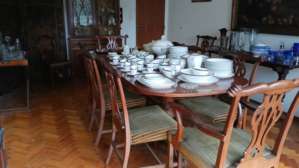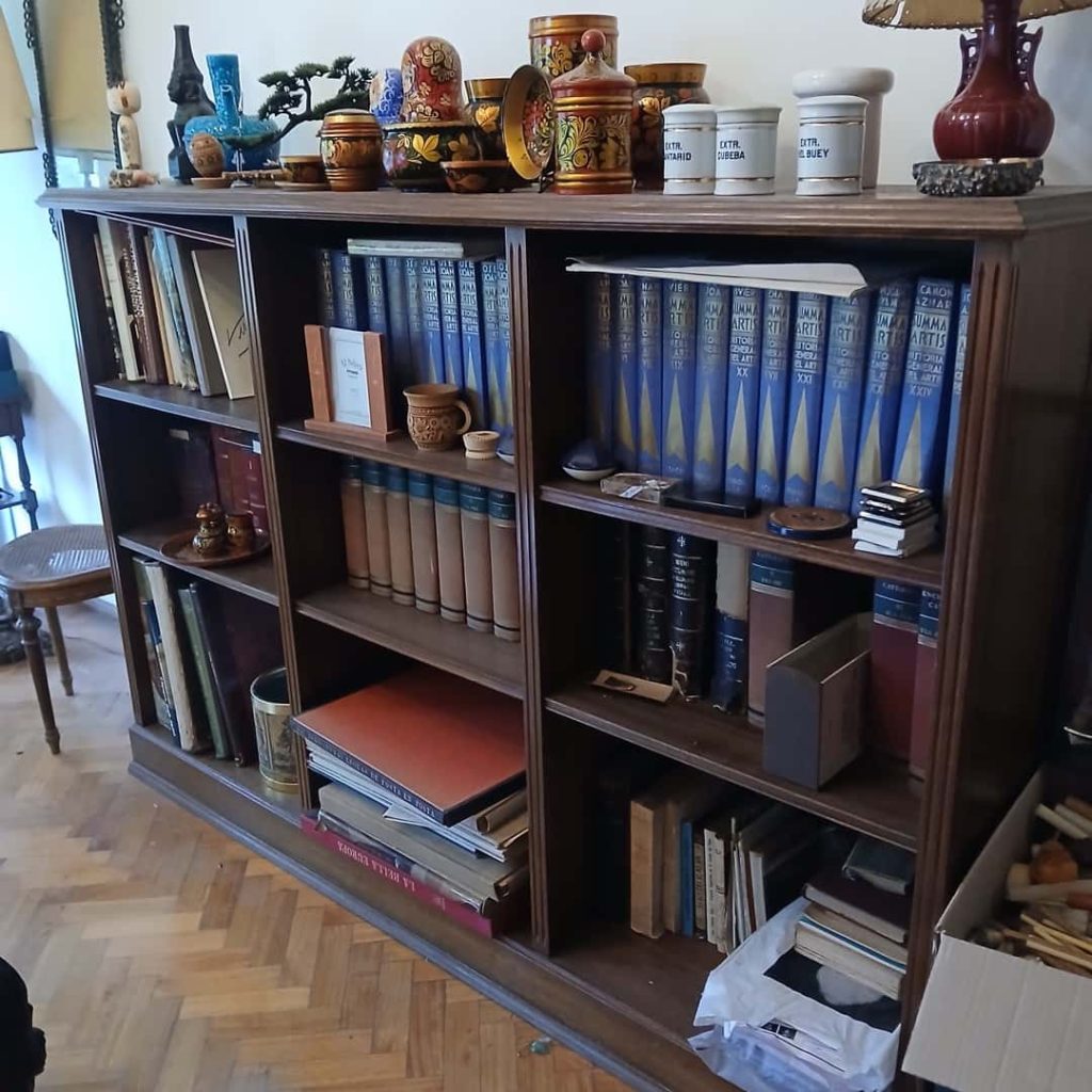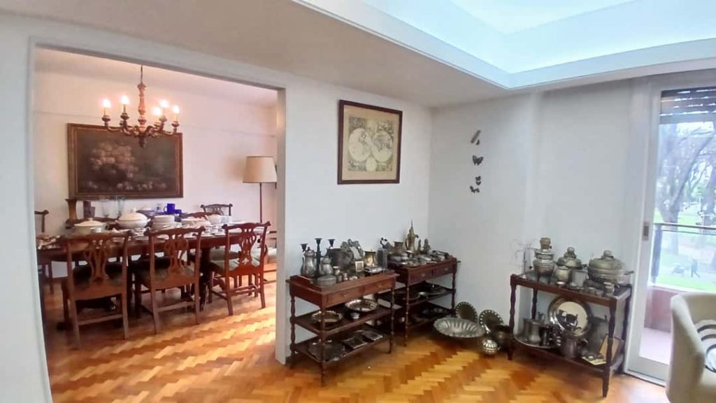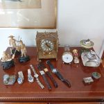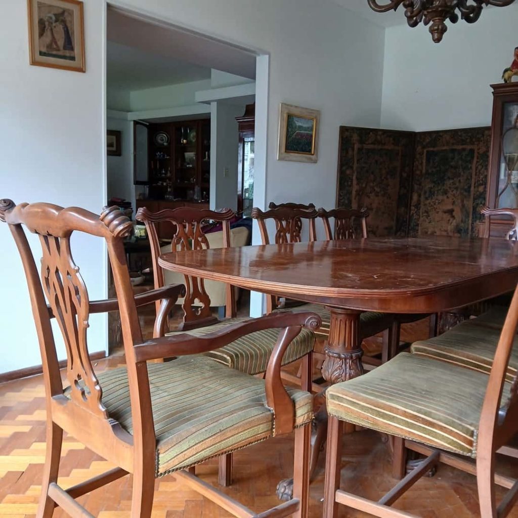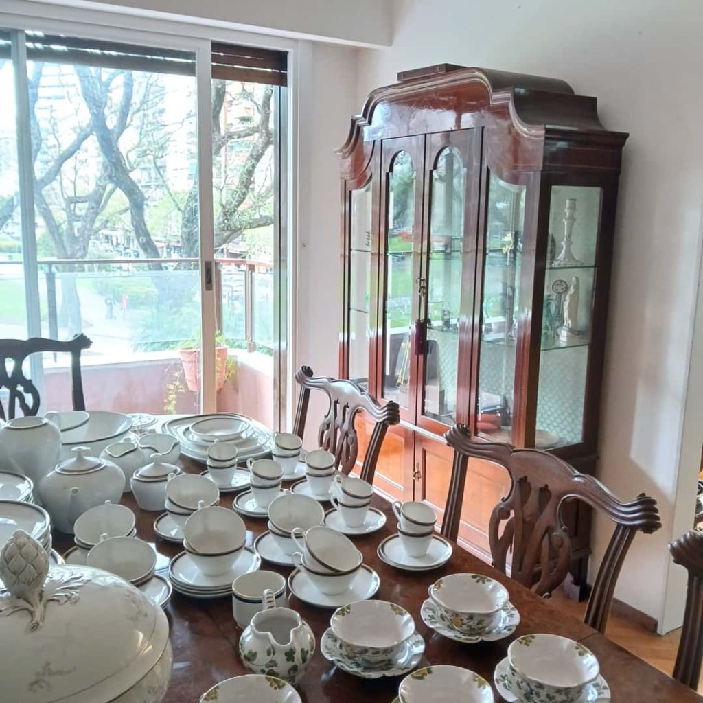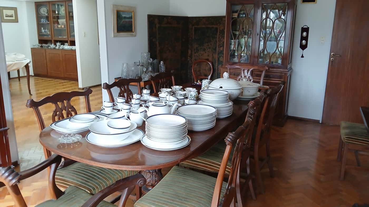 Par sillones 1 cuerpo diseño tapizado en corderoy; silla estilo Francés, pequeña silla estilo Inglés, silla estilo Luis XV, pequeña banqueta con respaldo; mesas auxiliares, carro triple plano estilo Inglés, bandeja con pie tijera, rectangular estilo Inglés, bandeja base tijera, rectangular estilo Inglés, pata central, otras; vitrina de pared 5 niveles, otras Adams; comedor estilo Inglés: mesa doble pata Sheraton con tabla de alargue, 8 sillas, 2 sillones cabecera; consola estilo Inglés; bibliotecas estilo Inglés 3 niveles, otras pequeña 4 niveles, otra 4 niveles con puertas corredizas en vidrio; cómoda estilo Inglés 5 cajones-Adornos, vajilla, cristalería, metal plateado, alpaca y objetos decorativos; florero cristal color ámbar, otros cristal tallado; piezas de servir; cajita con esmalte; 4 figuras muñecas vintage; relojes de mesa; cantidad íconos religiosos y crucifijo; espejo estilo Francés con marco dorado; óleos “Personaje hombre”, “Flores” y cuadros decorativos varios; arañas talladas en madera 6 luces; araña en bronce Art Decó; lámpara de pie 3 luces en bronce-Piano Monaren Piano Company chico; TV LCD Talent; heladera; comedor diario: mesa rectangular en fórmica patas metal, par sillas; mesa redonda con alas; platos y bandejas decorativas; enseres cocina y vajilla diaria; cantidad libros y vinilos; peluches; ropa de blanco-Cantidad de ropa mujer y de calidad! carteras, sombreros; bijoux y más…