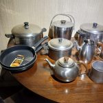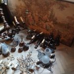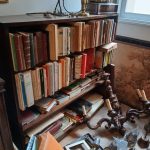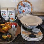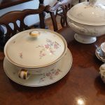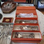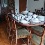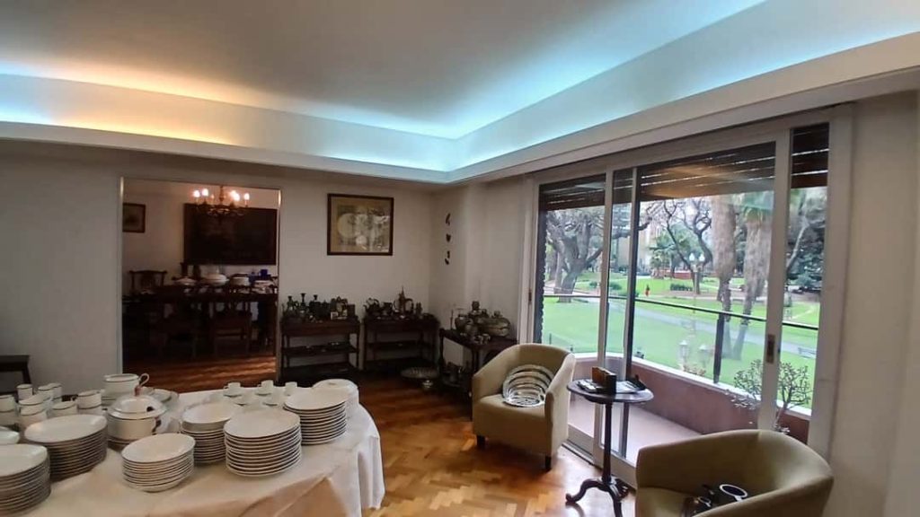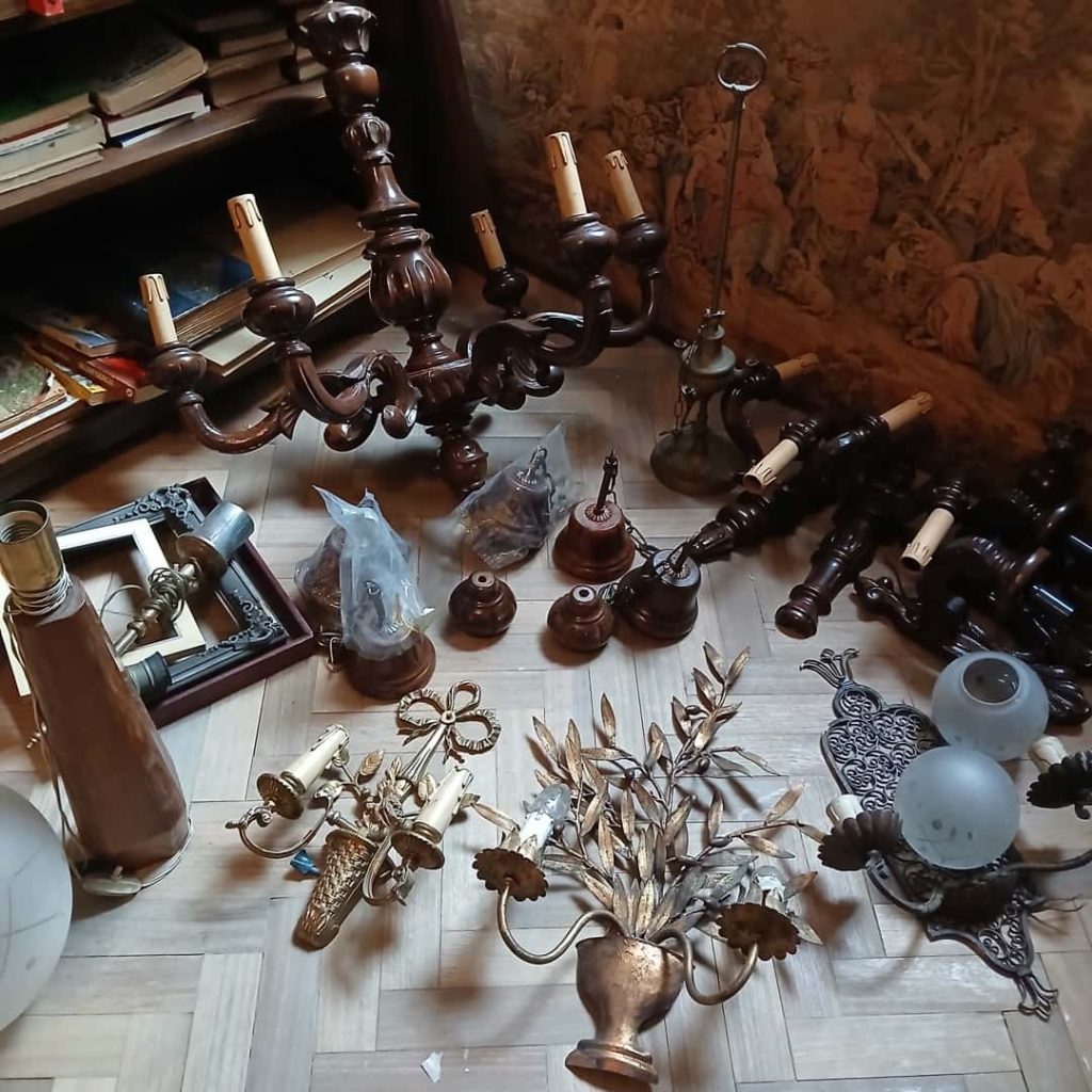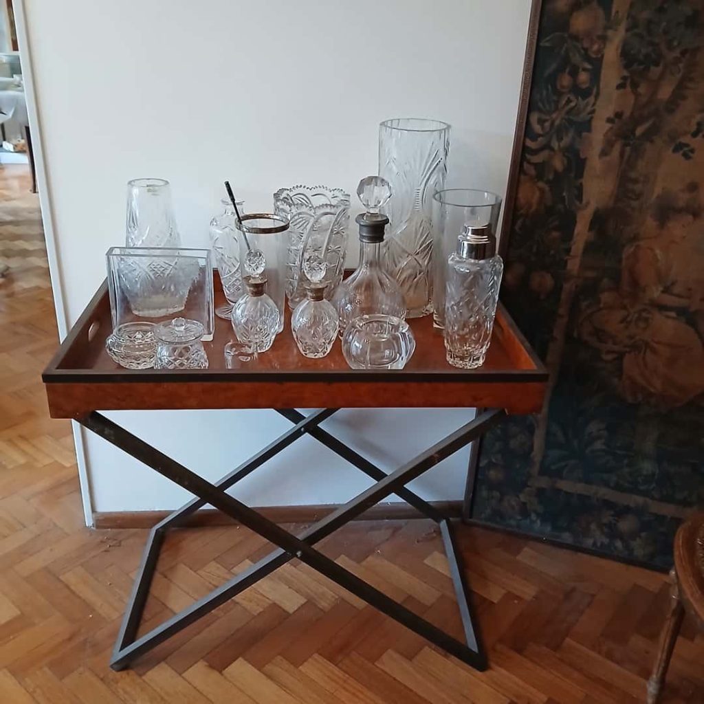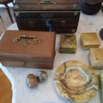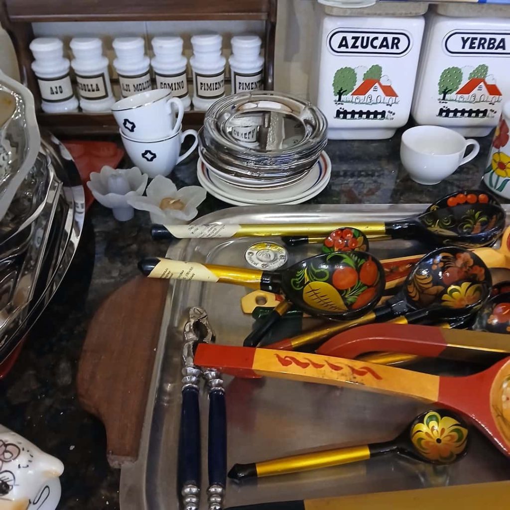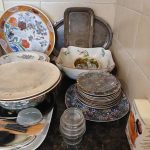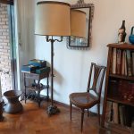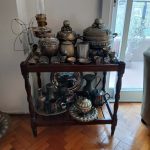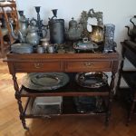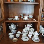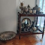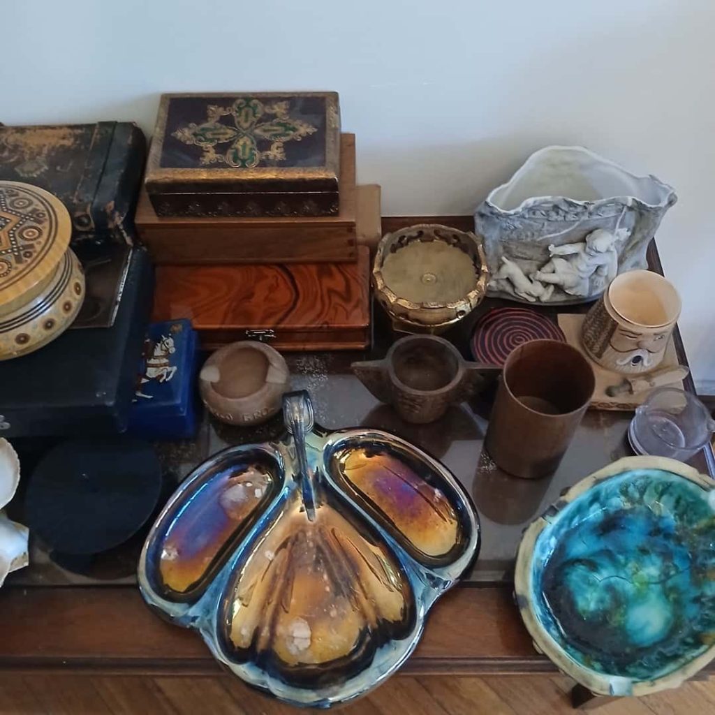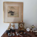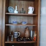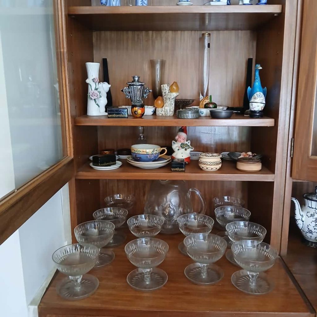 Par sillones 1 cuerpo diseño tapizado en corderoy; silla estilo Francés, pequeña silla estilo Inglés, silla estilo Luis XV, pequeña banqueta con respaldo; mesas auxiliares, carro triple plano estilo Inglés, bandeja con pie tijera, rectangular estilo Inglés, bandeja base tijera, rectangular estilo Inglés, pata central, otras; vitrina de pared 5 niveles, otras Adams; comedor estilo Inglés: mesa doble pata Sheraton con tabla de alargue, 8 sillas, 2 sillones cabecera; consola estilo Inglés; bibliotecas estilo Inglés 3 niveles, otras pequeña 4 niveles, otra 4 niveles con puertas corredizas en vidrio; cómoda estilo Inglés 5 cajones-Adornos, vajilla, cristalería, metal plateado, alpaca y objetos decorativos; florero cristal color ámbar, otros cristal tallado; piezas de servir; cajita con esmalte; 4 figuras muñecas vintage; relojes de mesa; cantidad íconos religiosos y crucifijo; espejo estilo Francés con marco dorado; óleos “Personaje hombre”, “Flores” y cuadros decorativos varios; arañas talladas en madera 6 luces; araña en bronce Art Decó; lámpara de pie 3 luces en bronce-Piano Monaren Piano Company chico; TV LCD Talent; heladera; comedor diario: mesa rectangular en fórmica patas metal, par sillas; mesa redonda con alas; platos y bandejas decorativas; enseres cocina y vajilla diaria; cantidad libros y vinilos; peluches; ropa de blanco-Cantidad de ropa mujer y de calidad! carteras, sombreros; bijoux y más…