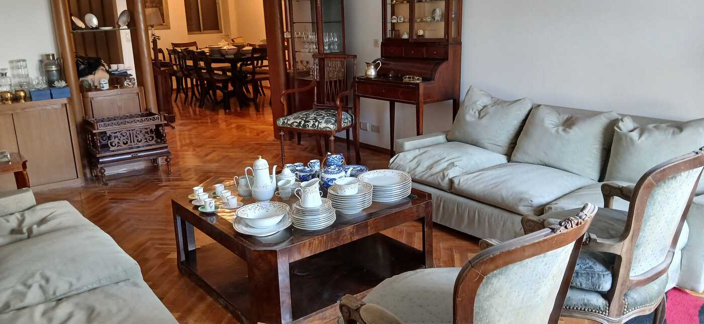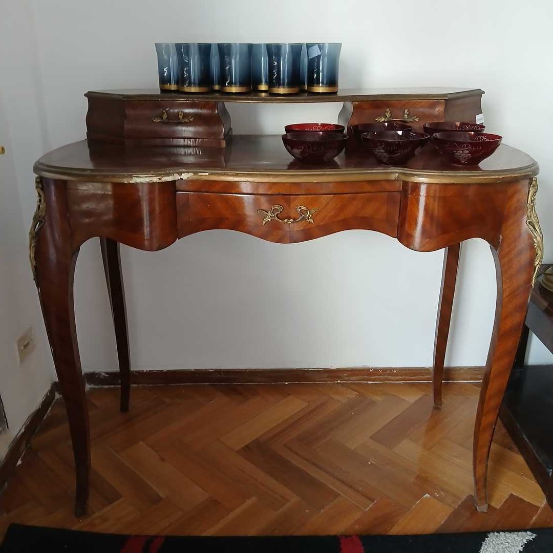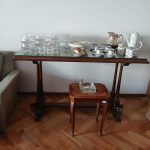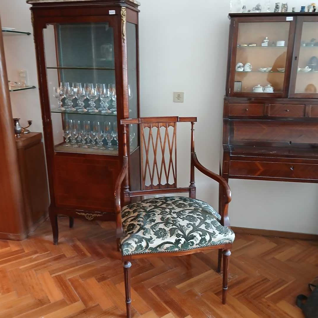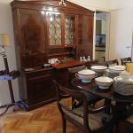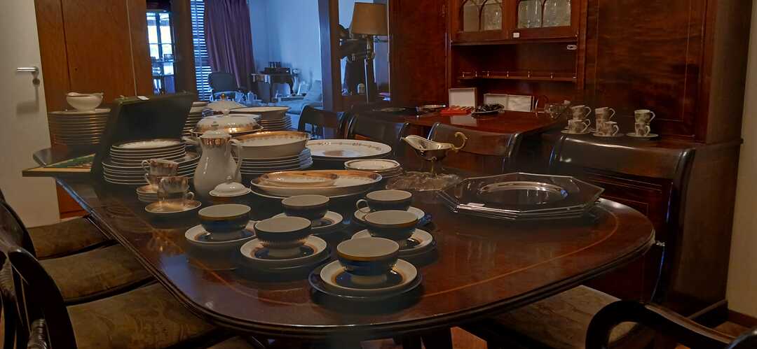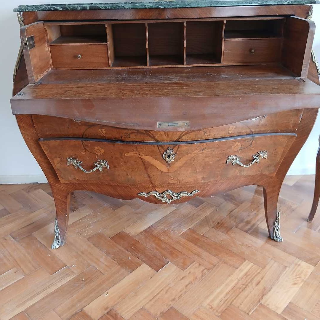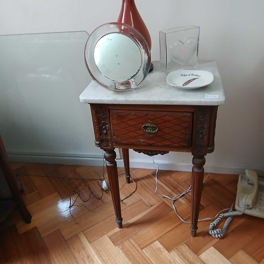 Diván tapizado; par silloncitos estilo Francés; par sillas de dormitorio; mesas auxiliares: de sala estilo Francés, de diseño en bronce y vítrea, estilo Inglés 4 gajos, carro patas torneadas, par enchapadas en raíz; consola estilo Inglés; vitrina estilo Francés; comedor estilo Inglés: mesa, sillas y par silloncitos; vajillero estilo Inglés; biblioteca pequeña; escritorio con alzada estilo Francés; revistero en madera calada; cómoda estilo Francés bombé; cama con colchón; par mesas de luz y tapa mármol, otras-Adornos y vajilla: servicio de mesa Bavaria; 5 tríos de te en porcelana azul cobalto; juego café en porcelana oriental; taza de te de porcelana; servicio de mesa en porcelana Checoslovaca; servicio de te porcelana Hartford; tazas de te y café; porcelana «Patos»; cristalería, lote copas con dibujo en dorado, vasos y copas, botellones; cubiertos de lunch en su estuche; platos de sitio acero; colección de búhos; elefante en jade; bola de la paciencia en marfil; espejos marcos dorados; cuadros firmados: óleos «El Baile» De La Fuente, «Niña» Schurjin, otros decorativos «Bandoneón» y cuadritos esmaltados marco madera; luminaria colgante; par lámparas de cerámica con montura de bronce, otras estilo Inglés y par de acrílico-Heladera y lavarropas Electrolux; microondas; cantidad enseres de cocina; comedor diario: mesa y 2 sillas; alfombra Mihran diseño; almohadones; ropa de blanco-Cantidad ropa mujer primeras marcas; zapatos, carteras, accesorios; bijoux y más…