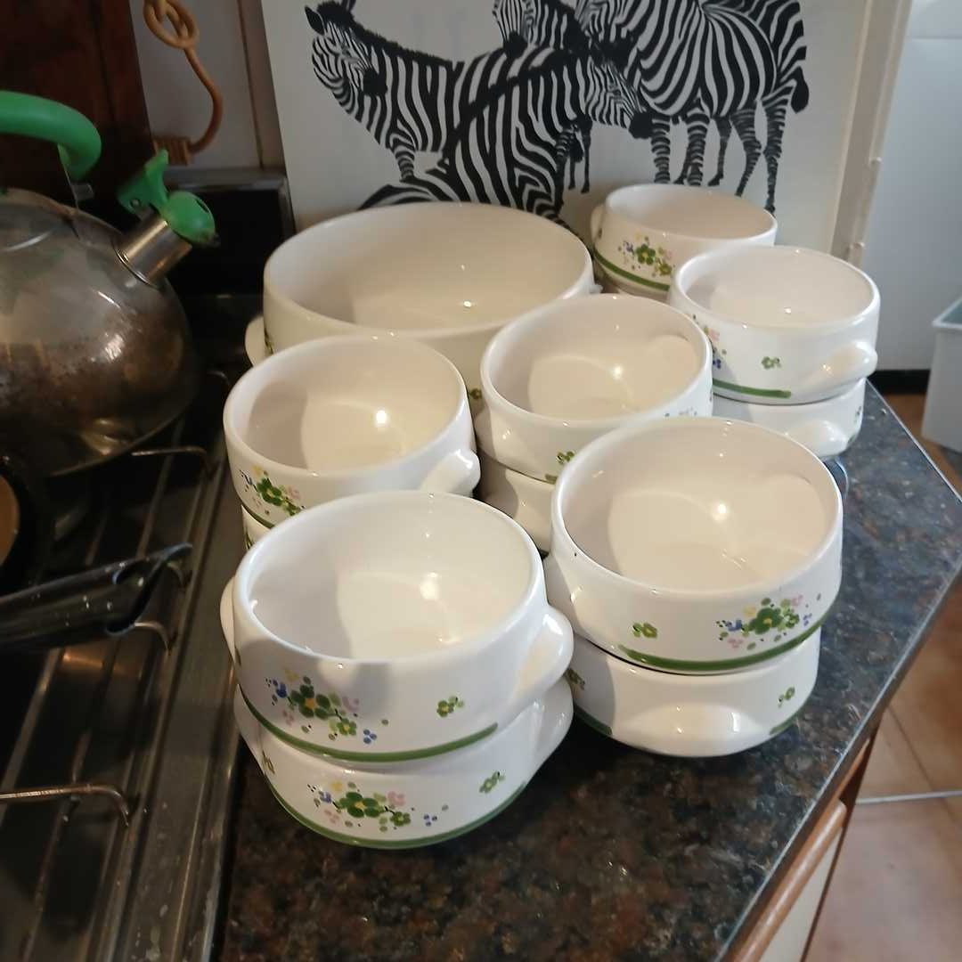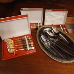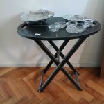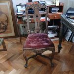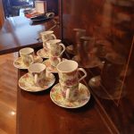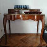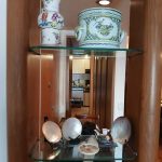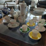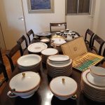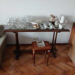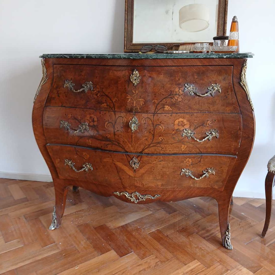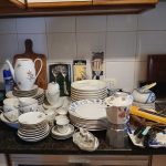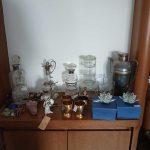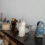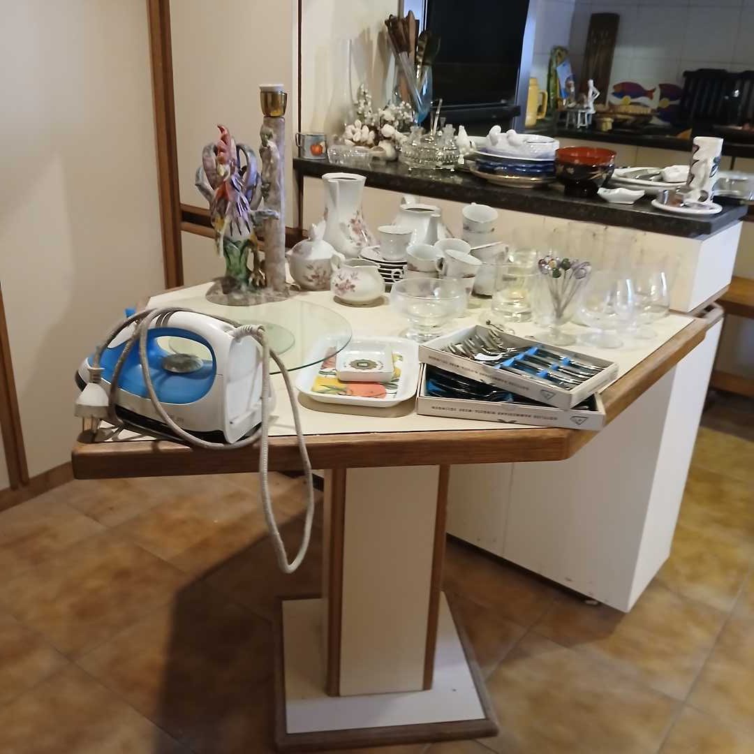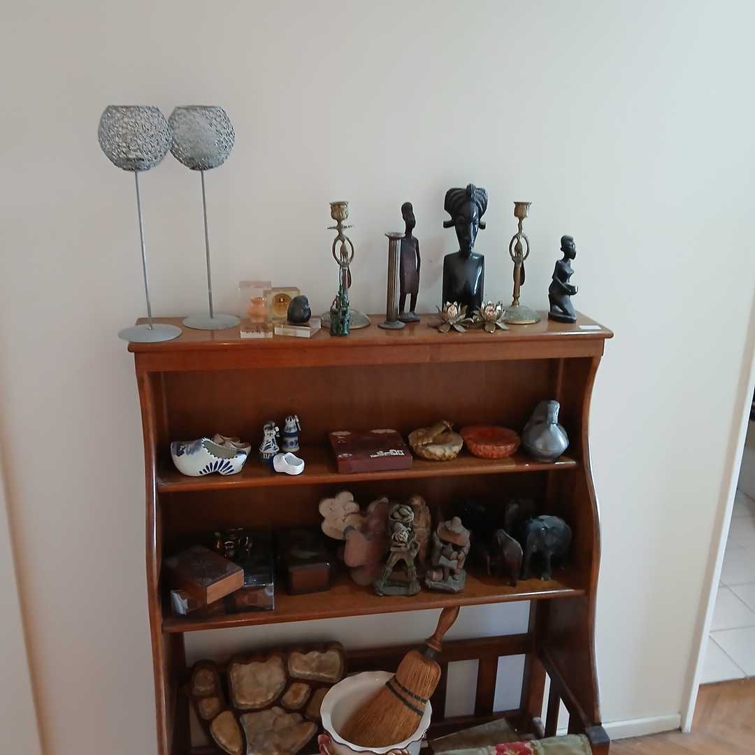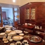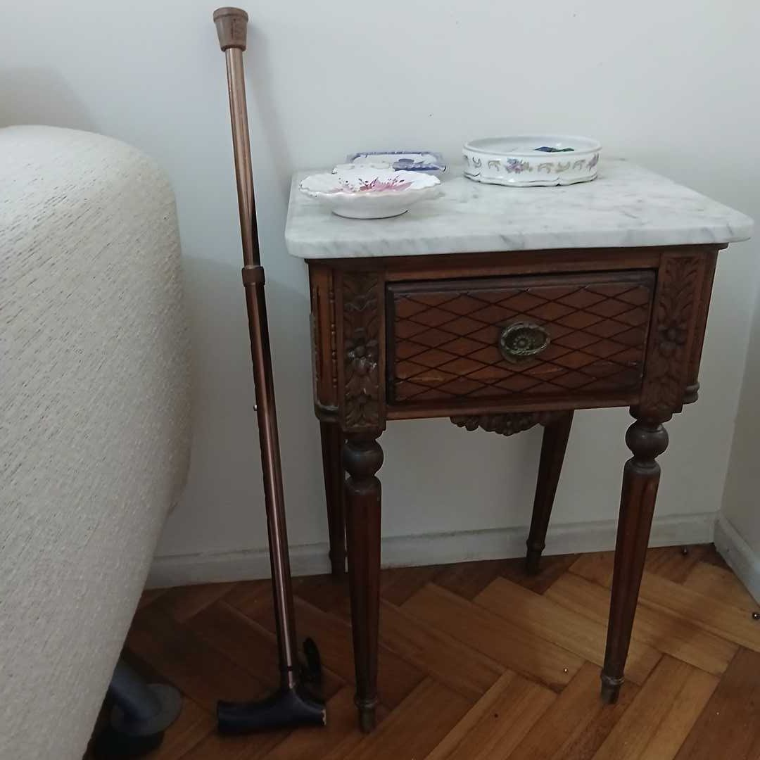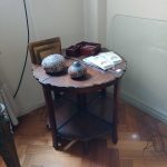 Diván tapizado; par silloncitos estilo Francés; par sillas de dormitorio; mesas auxiliares: de sala estilo Francés, de diseño en bronce y vítrea, estilo Inglés 4 gajos, carro patas torneadas, par enchapadas en raíz; consola estilo Inglés; vitrina estilo Francés; comedor estilo Inglés: mesa, sillas y par silloncitos; vajillero estilo Inglés; biblioteca pequeña; escritorio con alzada estilo Francés; revistero en madera calada; cómoda estilo Francés bombé; cama con colchón; par mesas de luz y tapa mármol, otras-Adornos y vajilla: servicio de mesa Bavaria; 5 tríos de te en porcelana azul cobalto; juego café en porcelana oriental; taza de te de porcelana; servicio de mesa en porcelana Checoslovaca; servicio de te porcelana Hartford; tazas de te y café; porcelana «Patos»; cristalería, lote copas con dibujo en dorado, vasos y copas, botellones; cubiertos de lunch en su estuche; platos de sitio acero; colección de búhos; elefante en jade; bola de la paciencia en marfil; espejos marcos dorados; cuadros firmados: óleos «El Baile» De La Fuente, «Niña» Schurjin, otros decorativos «Bandoneón» y cuadritos esmaltados marco madera; luminaria colgante; par lámparas de cerámica con montura de bronce, otras estilo Inglés y par de acrílico-Heladera y lavarropas Electrolux; microondas; cantidad enseres de cocina; comedor diario: mesa y 2 sillas; alfombra Mihran diseño; almohadones; ropa de blanco-Cantidad ropa mujer primeras marcas; zapatos, carteras, accesorios; bijoux y más…