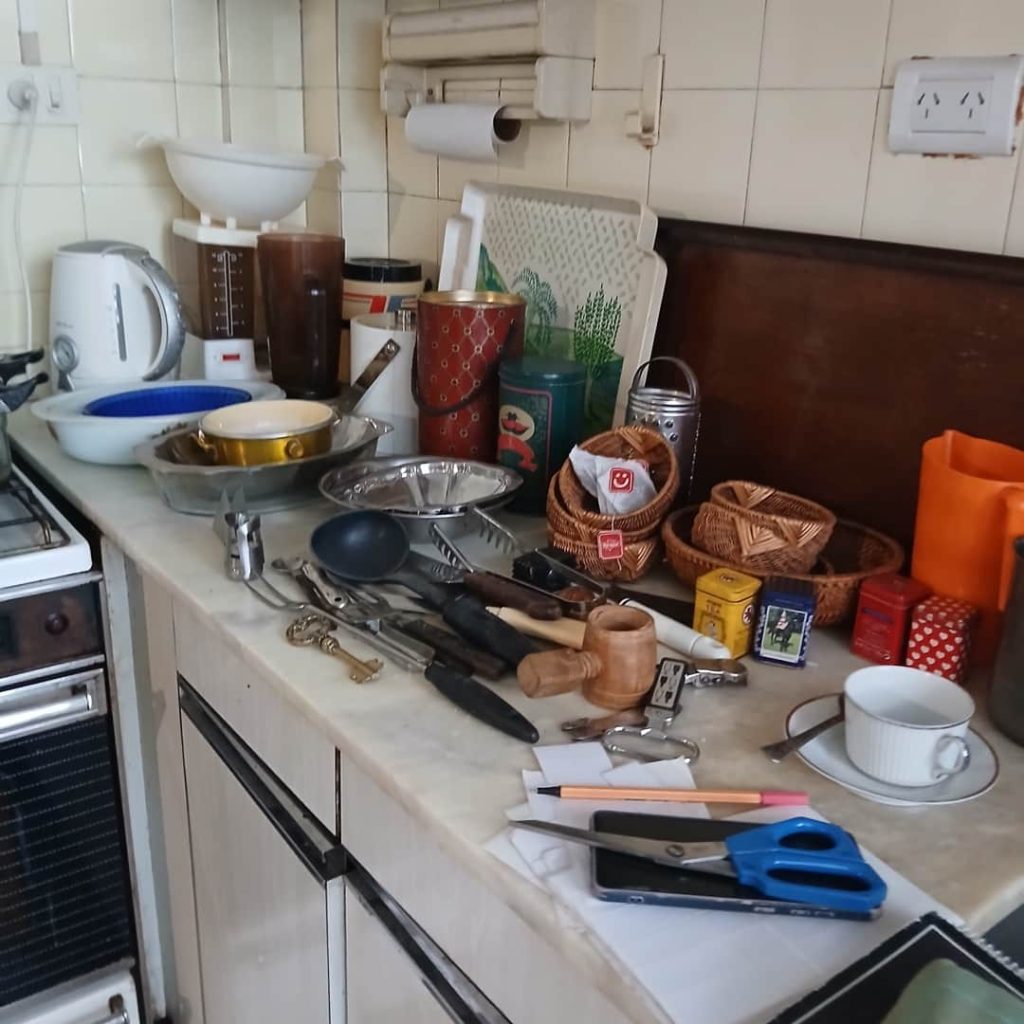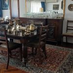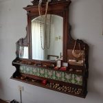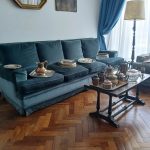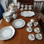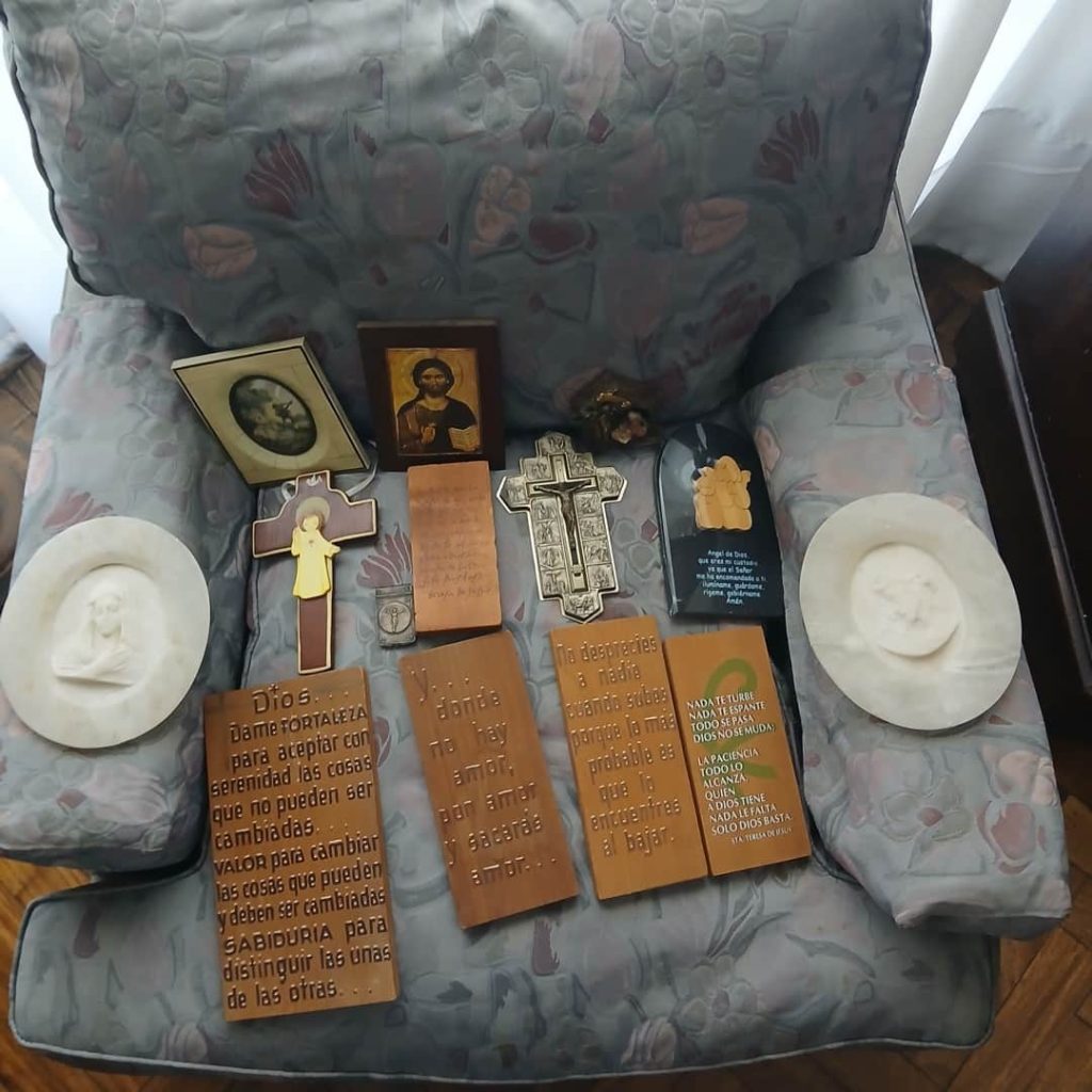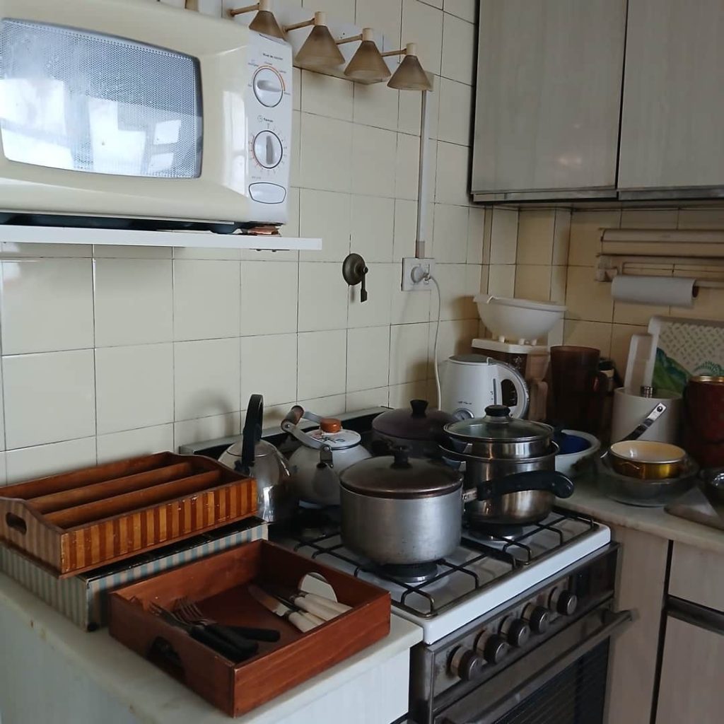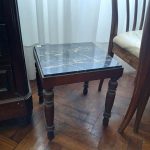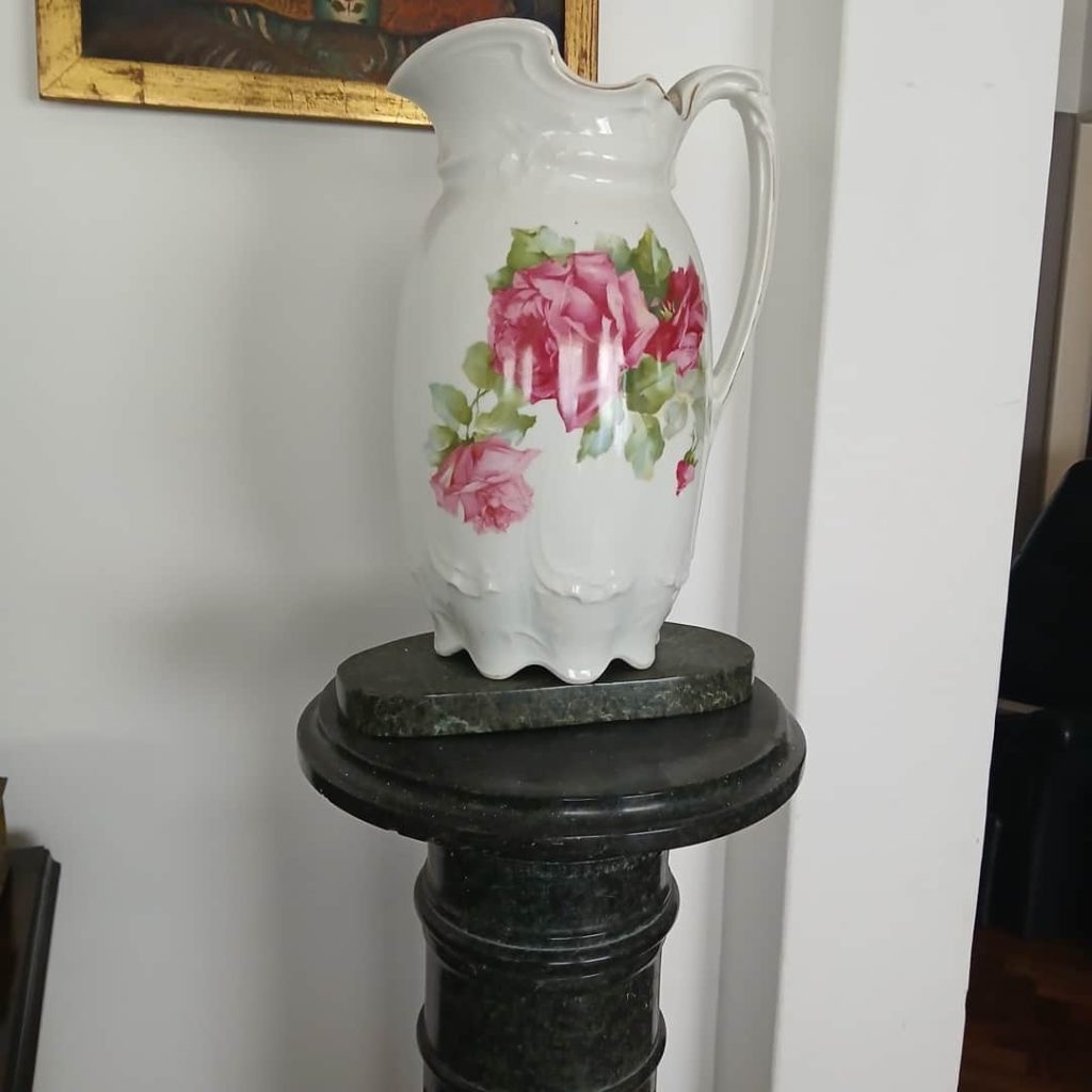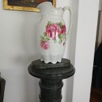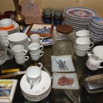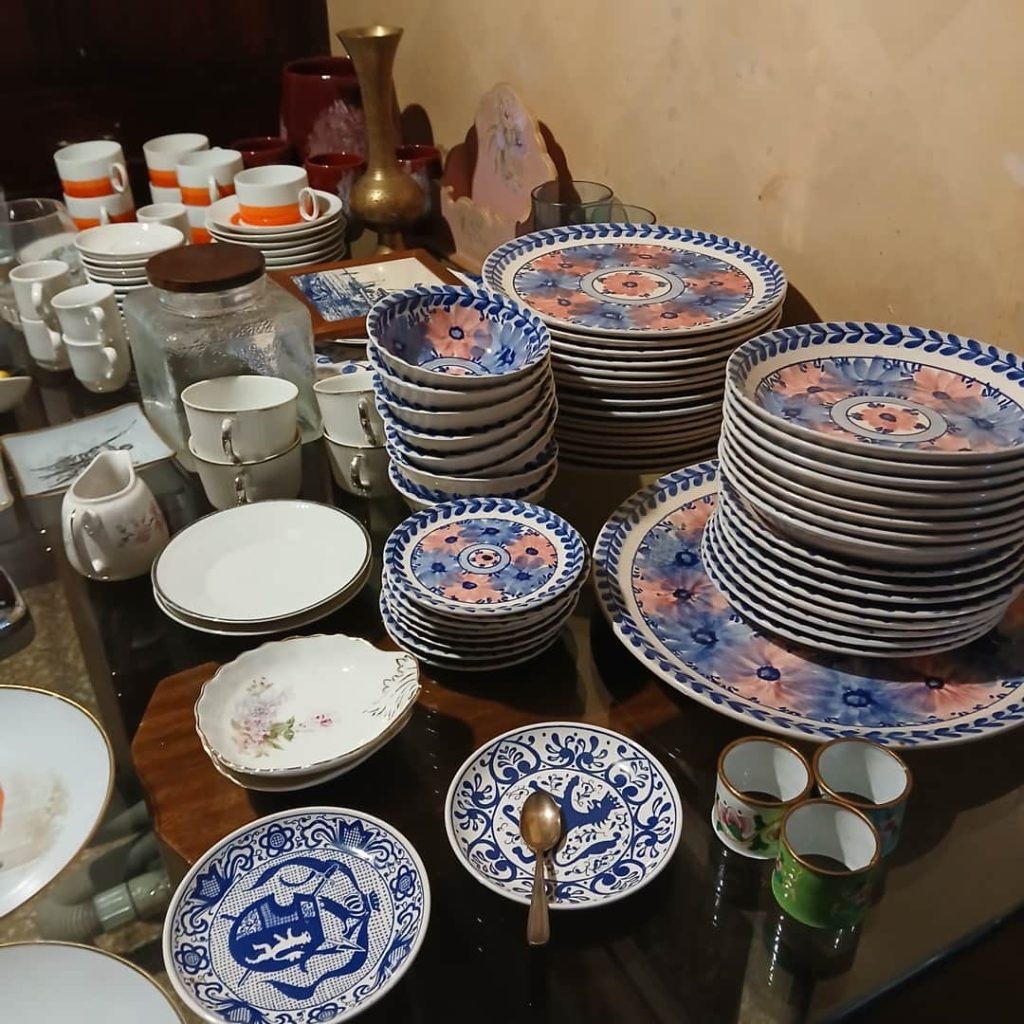 Sofá de 4 cuerpos en pana azulina; par sillones 1 cuerpo; 3 sillas; mesa auxiliar tapa de mármol cuadrada, otra tapa vítrea; mueble recibidor con espejo y percheros estilo Inglés; comedor diseño: mesa con 6 sillas; otro comedor estilo Inglés; mesa, 8 sillas; vajilleros tallado con herrajes de bronce, grande y chico; escritorio estilo Americano; silloncitos con ruedas; cómoda estilo Inglés tapa de mármol; cajonera 6 cajones; pequeño biombo oriental; 2 elásticos de 1 plaza-Adornos y vajilla: lote servicio de te en porcelana nacional hojas en dorado; tazas de café; servicio de café en porcelana Verbano; jarra y 3 jarros en cerámica bordó; 6 tazas en porcelana Brasilera; lote platos en loza nacional con flores rosas y celestes; figuras biscuit; jarra en porcelana Checoslovaca; metal plateado: balde refrescador, platos de sitio, 2 cafeteras y lechera, cafeteras, jarras, azucareras, maceteros, bandejas, caramelera con tapa metal; pedestal de mármol; escudo enmarcado; porta botella en alpaca y asta, mate de alpaca con bombilla, cuchillo con vaina de alpaca; colección de pastilleros; lote cubiertos metal plateado, 4 mates en madera, encendedor de mesa; cajas; platos decorativos; florero en cerámica azul cobalto con decó de fruta; cristalería, copas y vasos, floreros, botellones y jarras, ensaladeras, centros con pie, copetinero; reloj Inglés de pared; 2 íconos; espejo biselado montura de madera con estante, otro montura de madera; cuadros decorativos orientales; lámparas de hierro, de cerámica, con brazo móvil, de pie en madera; portarretratos-Microondas; enseres de cocina; libros, literatura, poesía, religión, teatro, filosofía-Bijoux y más…