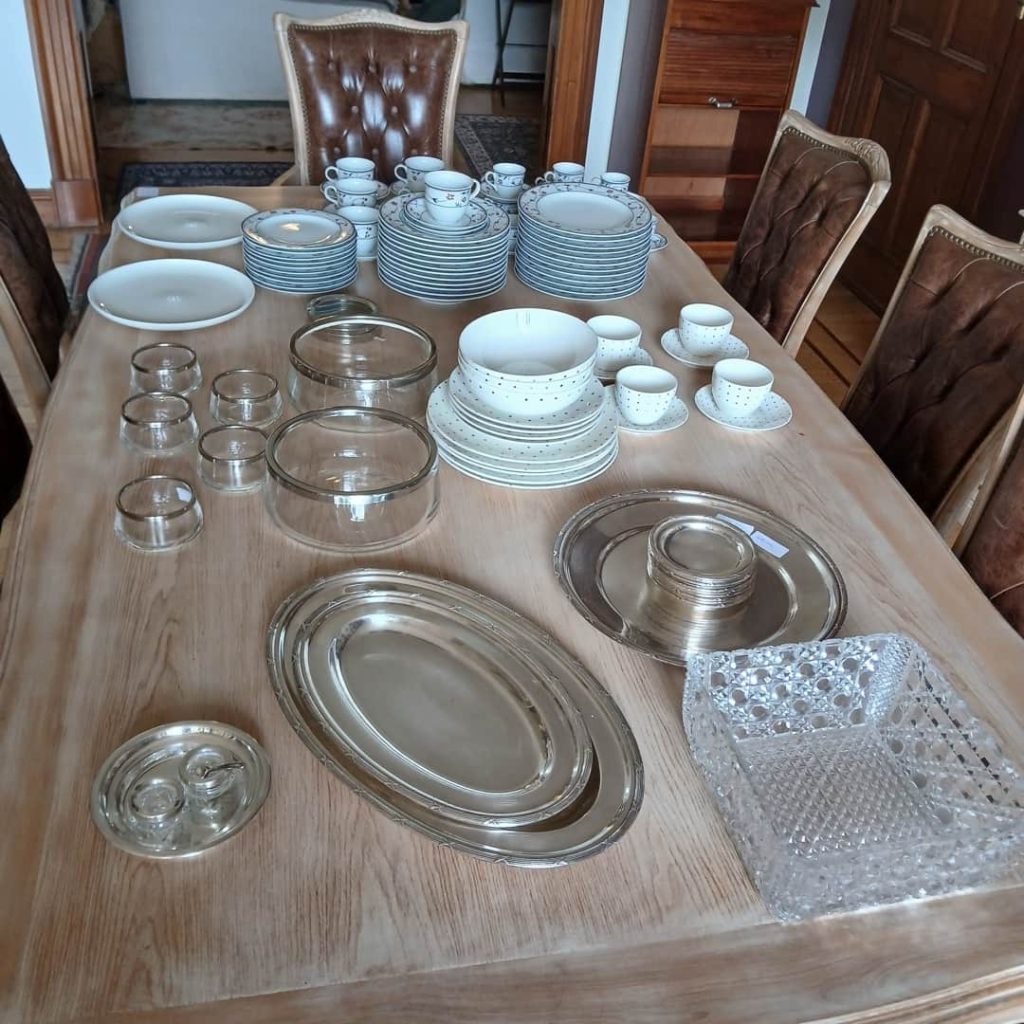 Sofá 2 cuerpos; sillón bergere; sillón 1 cuerpos; 2 sillones cama 1 plaza; mesas redondas antiguas; mesa auxiliar tijera; juego comedor: mesa con sillas; vajillero antiguo, otro blanco; bar con mesada bronce; escritorio azul, otros blanco tipo industrial y antiguo en cuero; juego de escritorio y cómoda gris; mueble fichero; biblioteca madera blanca; perchero en hierro blanco; muebles recibidores; cajoneras; mesas luz; respaldo de cama hierro; cómoda blanca; secretaire; juego tocador, silla, espejo cristal y velador; sommier 2 plazas-Adornos y vajilla; juego servicio Benetton; juego te bañado en plata; juego bandejas y posa vasos; juego ensaladeras y bowls; juego de vasos Viena y copas; juego copas champagne; copas acrílico color caramelo; 38 vasos Génova policarbonato; ensaladeras; servicio en metal plateado; lote cubiertos en acero inoxidable; reloj El Ángel; reloj Laura Ashley; espejo redondo Laura Ashley, otros rectangular carey, ovalado dorado; cantidad de cuadros; araña estilo imperio; morrillos en bronce; farol porta vela; mortero en piedra-Piano Carol Otto; heladera dos puertas Electrolux; aspiradora 5800 watts, otra Black & Decker 2000w; enseres cocina; mueble cocina Laura Ashley, otro con flores; gimnasio lote, cinta de correr, bicicleta spinning, lote de pesas, bicicleta Recumbent y otras; tráiler Batan con tapa; soporte para guitarra; exterior: juego en hierro, mesa y sillas, reposeras de aluminio, porta macetas en hierro, canastos porta macetas, lote macetas; baúles; 22 organizadores con tapa; lote contenedores plástico; individuales rígidos; porta velas jardín; alfombra Persa original y otras; cantidad almohadones, acolchados y más…