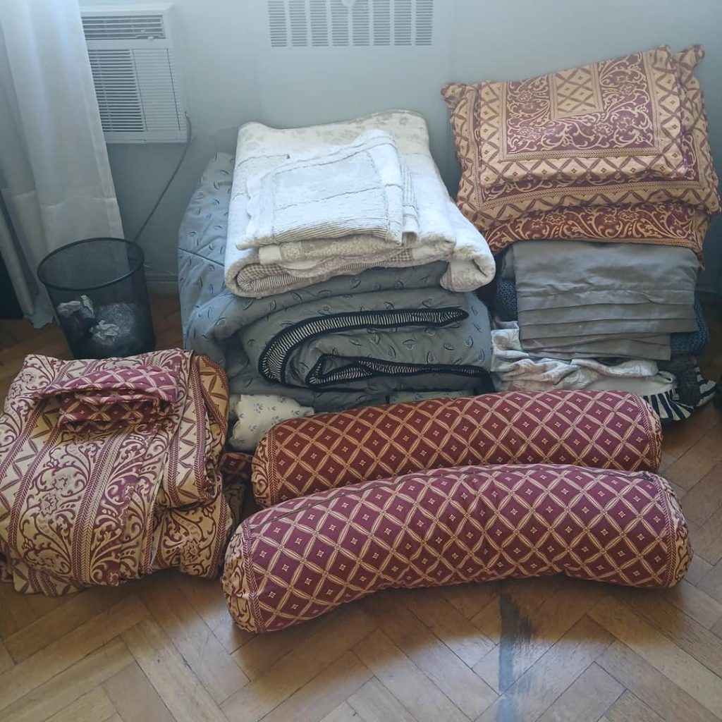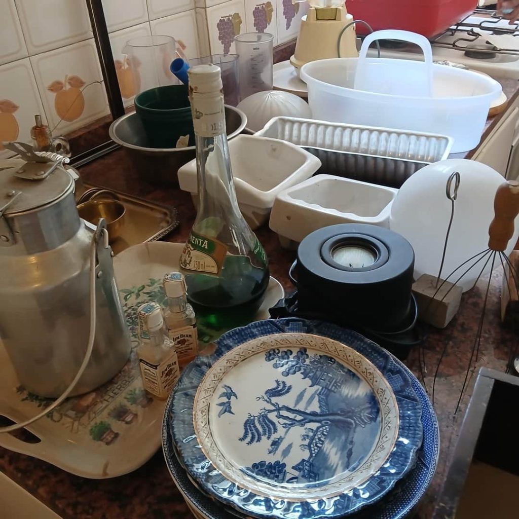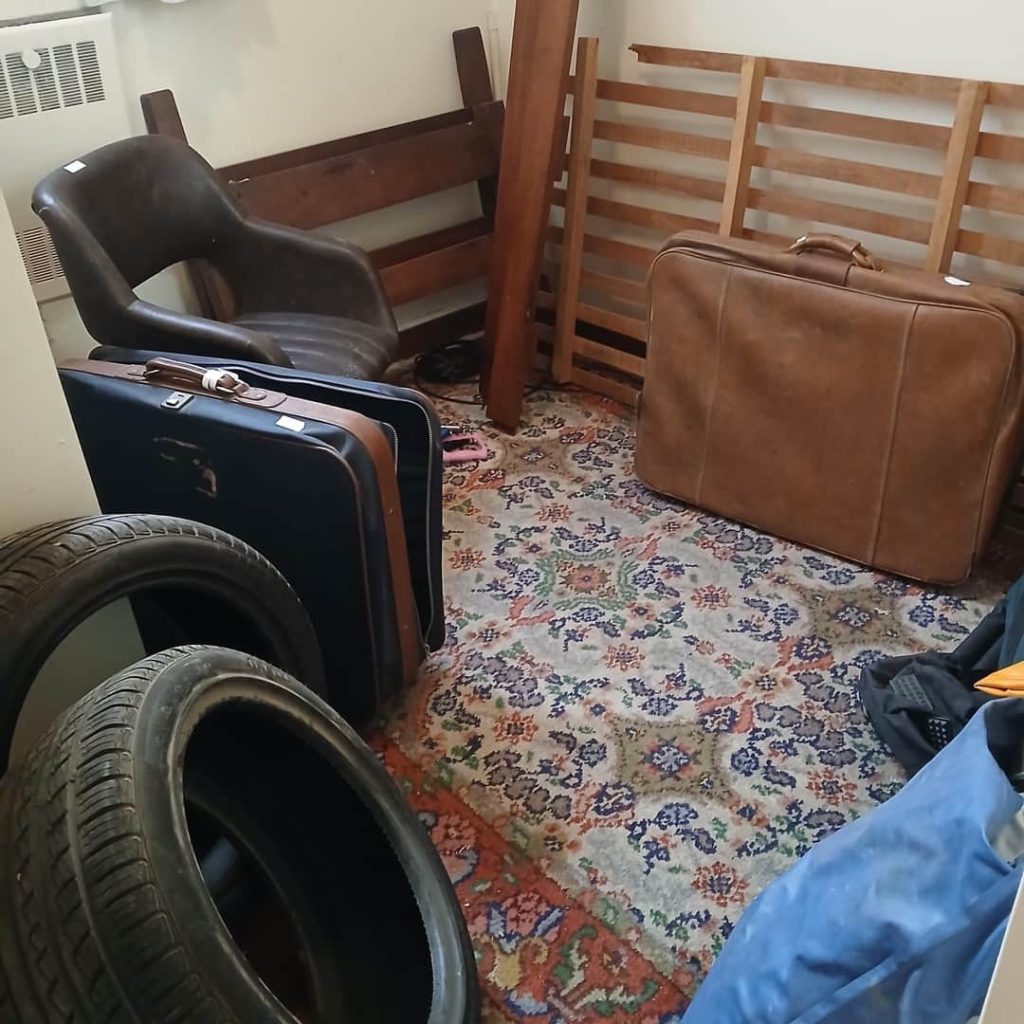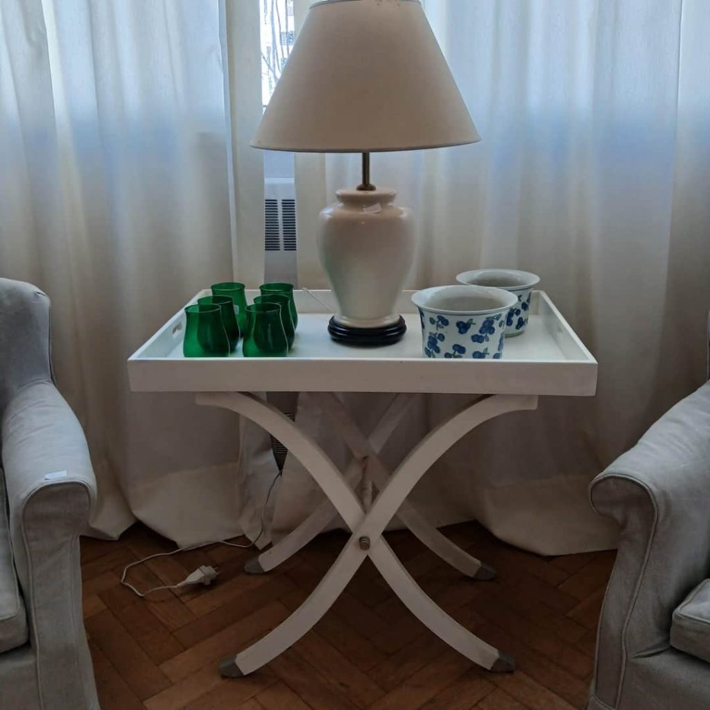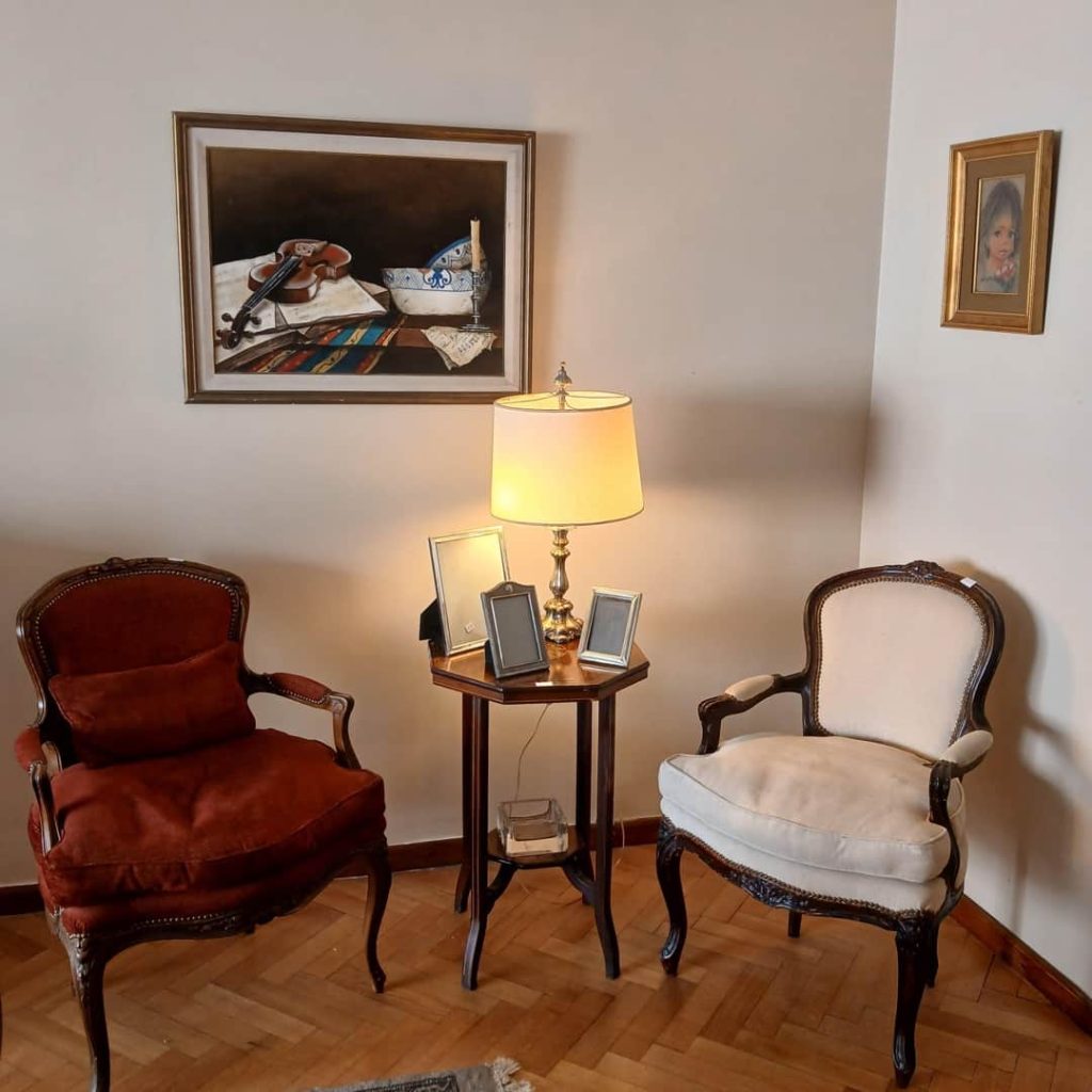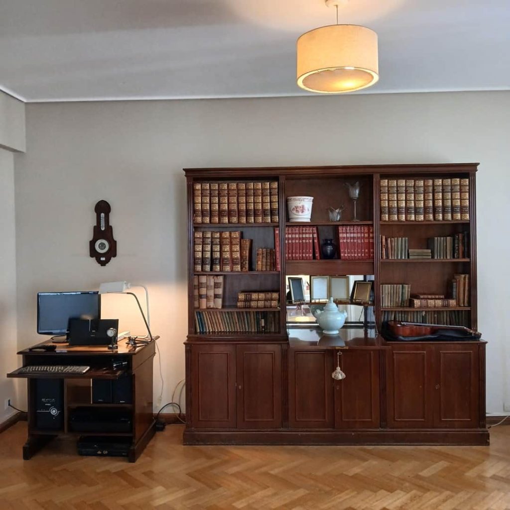 Sillón de 3 cuerpos color manteca; par silloncitos estilo Inglés; silloncito esterillado estilo Francés; 2 sillones 1 cuerpo estilo Francés; sillón 1 cuerpo pana marrón; par silloncitos con funda color gris; sofá cama 1 ½ plazas en corderoy azulino; par sillas estilo Inglés; 2 bancos de guardado; mesas auxiliares: tapa octogonal estilo Inglés doble plano, enchapada doble plano tapas vítreas, estilo Inglés tapa redonda y pata central con 2 cajones, oval con bandeja desmontable bronce, de Bridge; gabinete de guardado estilo Inglés, otro 2 cajones y 2 puertas con herrajes en bronce; mueble bajo auxiliar 2 cajones, 2 puertas, otro estilo Inglés tapa cuero y viñeta; biblioteca bar y puertas; vajillero con vitrina estilo Inglés; comedor: mesa con alargue doble pedestal, 8 sillas, par silloncitos; consola doble pedestal en yeso y tapa vítrea ahumada; biblioteca; cama 2 plazas estilo Inglés con colchón; cama 1 plaza con colchón; par mesas de luz estilo Inglés, otras 1 cajón y puertas, con 3 cajones; perchas valet madera-Adornos y vajilla, lote de vajilla Verbano blanca; platos decorativos; potiche de cerámica craquele; porcelana “Mono”; violetero cristal azul con pie, refrescador cristal con virola; servicio de te en metal plateado Elkington 5 piezas, par candeleros metal; barómetro; reloj de pared estilo Inglés; espejo; óleo “Naturaleza muerta”, cuadro firmado Nelly Álvarez, otros decorativos; láminas “Patos”; óleografía “Libros”; araña tipo Osler 4 luces; luminaria techo; 2 luminarias en chapa; lámparas de mesa metal, en cerámica blanca, negra, en bronce, de pie en hierro y bronce, de pie en bronce, velador bronce; par apliques 2 luces en bronce estilo Holandés-TV LG con soporte; TV Samsung; Ukelele; heladera Mabe No Frost; lavarropas Whirlpool; cafetera Express Cuori; comedor diario: mesa madera blanca con tapa azulejos blancos y 4 sillas blancas con almohadones; bicicleta fija Sport Element; libros de arte y otros varios; alfombras; ropa blanca, cortinas-Ropa de hombre, mujer y más…