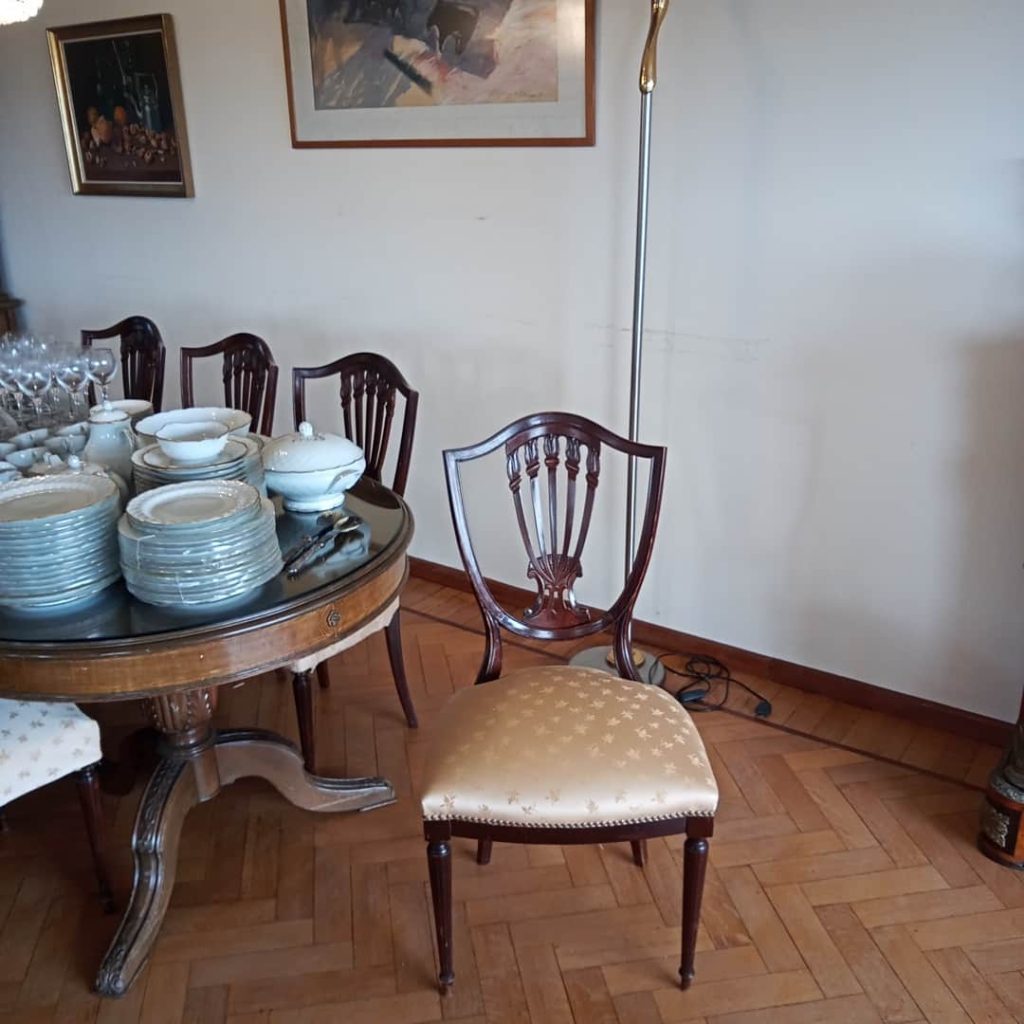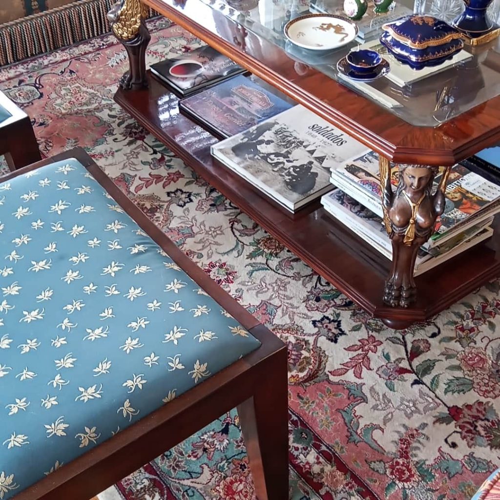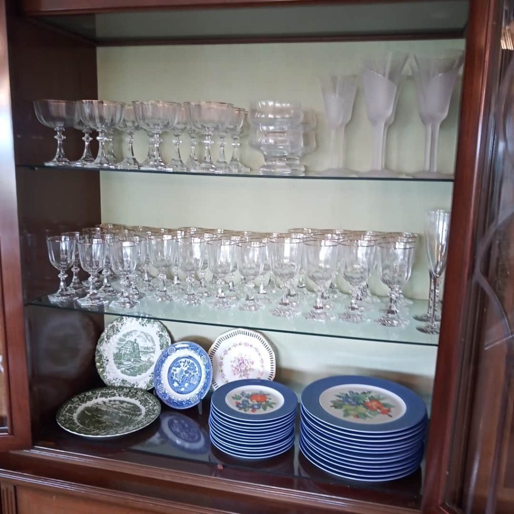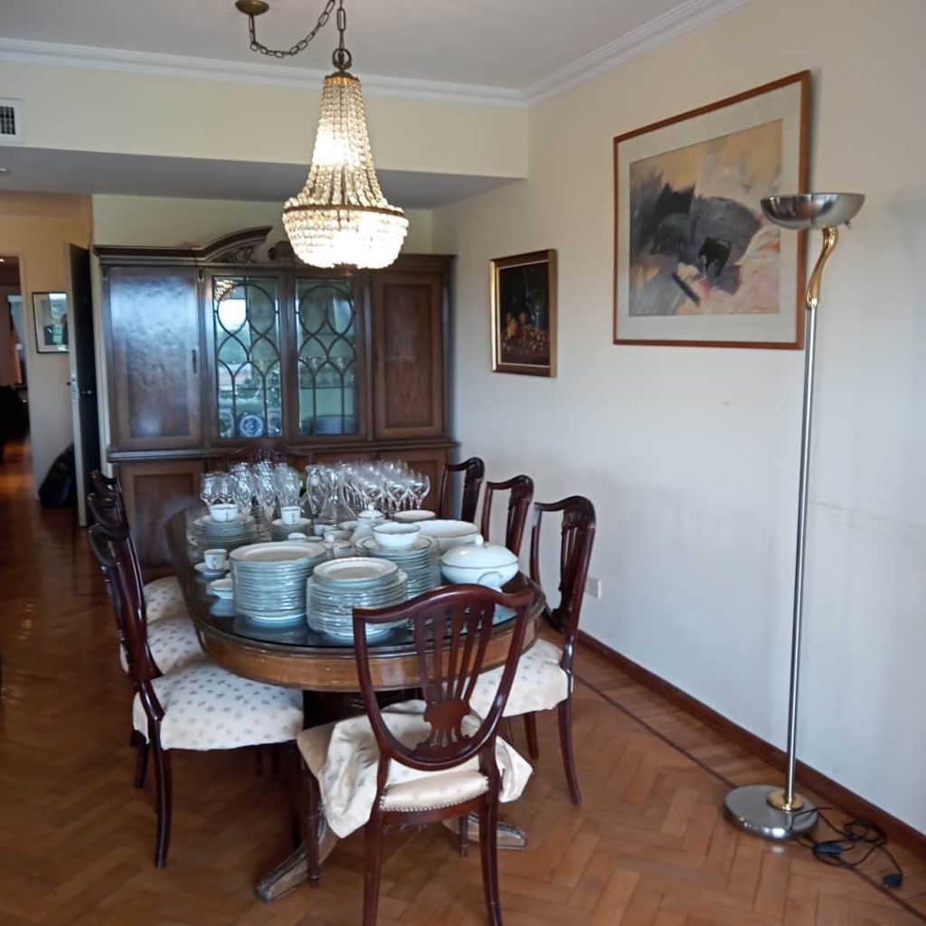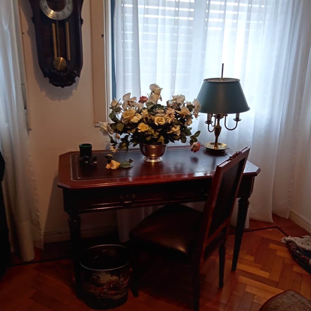Sofá 3 cuerpos y 2 sillones 1 cuerpo tapizado bastones en natural y celeste; sofá en cuero 2 cuerpos color natural; 2 sillones Ingleses tapizados en seda azul; 2 sillas de roble; puff cuadrado marrón; 2 banquetas con tapizado azul; banqueta estilo Francés; banqueta tapizada en seda; mesas auxiliares: baja de sala con 2 cajones, con pie central tapa redonda y bordes irregulares, de juego Napoleón, cuadrada 2 planos Imperio, de arrimo con bordes irregulares, redonda con pie central; mueble boullé y escritorio Francés; comedor estilo Inglés: mesa oval entera y 8 sillas lira; vajillero en raíz con 6 puertas y 2 vitrinas centrales; mueble con esquina, estantes, 4 puertas y 3 cajones; mueble rack con ruedas, 2 puertas y vidrio; revistero en hierro y ratán; escritorio estilo Inglés con 2 cajones y silla; biblioteca pequeña con 2 cajones y 3 estantes; chiffonier Francés 7 cajones patinado en verde, con mármol; cómoda estilo Imperio rosa, con mármol, 5 cajones y espejo; 2 camas 1 plaza en hierro con sommiers; 2 mesas luz estilo Francés patinadas en verde, con mármol; cama 2 plazas con respaldo patinado en rosa y colchón; revistero antiguo con 1 cajón y ruedas; percha valet acrílico; mesas de luz tipo Imperio patinadas de rosa, con 3 cajones, mármol rosa y broncería-Adornos y vajilla: servicio de mesa Limpges blando con virola dorada; lote Verbano con te y café, fuentes; lote platos Italy bordes azules y centro frutos; set de te gris y florero oriental; casitas KLM; platos porcelana; ánfora Limoges; figuras Nao, Lladró; caja Limoges; hojas porcelana; cristalería, juegos de copas cristal, centro de mesa, copas, jarras, ensaladera, hieleras, botellón; metal plateado, jarras, bandeja, azucarera, cajas varias, despojadores, chocolatera, lote platos de pan, juegos cubiertos para 12 y para 6 personas, platos de sitio Christofle; reloj con figura y reloj de pared; espejos; cuadros firmados; gran óleo “Campo”, acrílico sobre papel, “Sin título” Josefina Robirosa, “Dique Luján hace mucho” Eduardo Audivert, “Naturaleza muerta” Orihuel, serigrafía Perez Celis, otros óleos decorativos; portarretratos; araña bolsa Imperio; lámpara de bronce pie con 2 luces, una móvil para lectura, de mesa orientales, de escritorio con pantalla de chapa verde, con brazo móvil en acero y travertino, de pie platil, veladores-Heladera doble puerta Whirlpool, otra heladera 3 fríos Whirlpool; comedor diario: mesa Italiana con vidrio, 2 sillas en caño; microondas BGH; cafetera Liliana; tostadora Smartlife; horno BGH; secarropas y lavarropas Whirlpool; lavavajillas; cantidad vajilla de diario, pirex, ollas, sartenes; cantidad enseres cocina; balcón: juego en rattán sintético: sillón 2 cuerpos, par sillones 1 cuerpo y mesa, 2 sillas plástico plegables con mesa; libros y CD´s; artículos de ortopedia; alfombras; ropa de blanco, manteles, mantas-Ropa hombre y Sra.; sombreros, accesorios, bijoux y más…