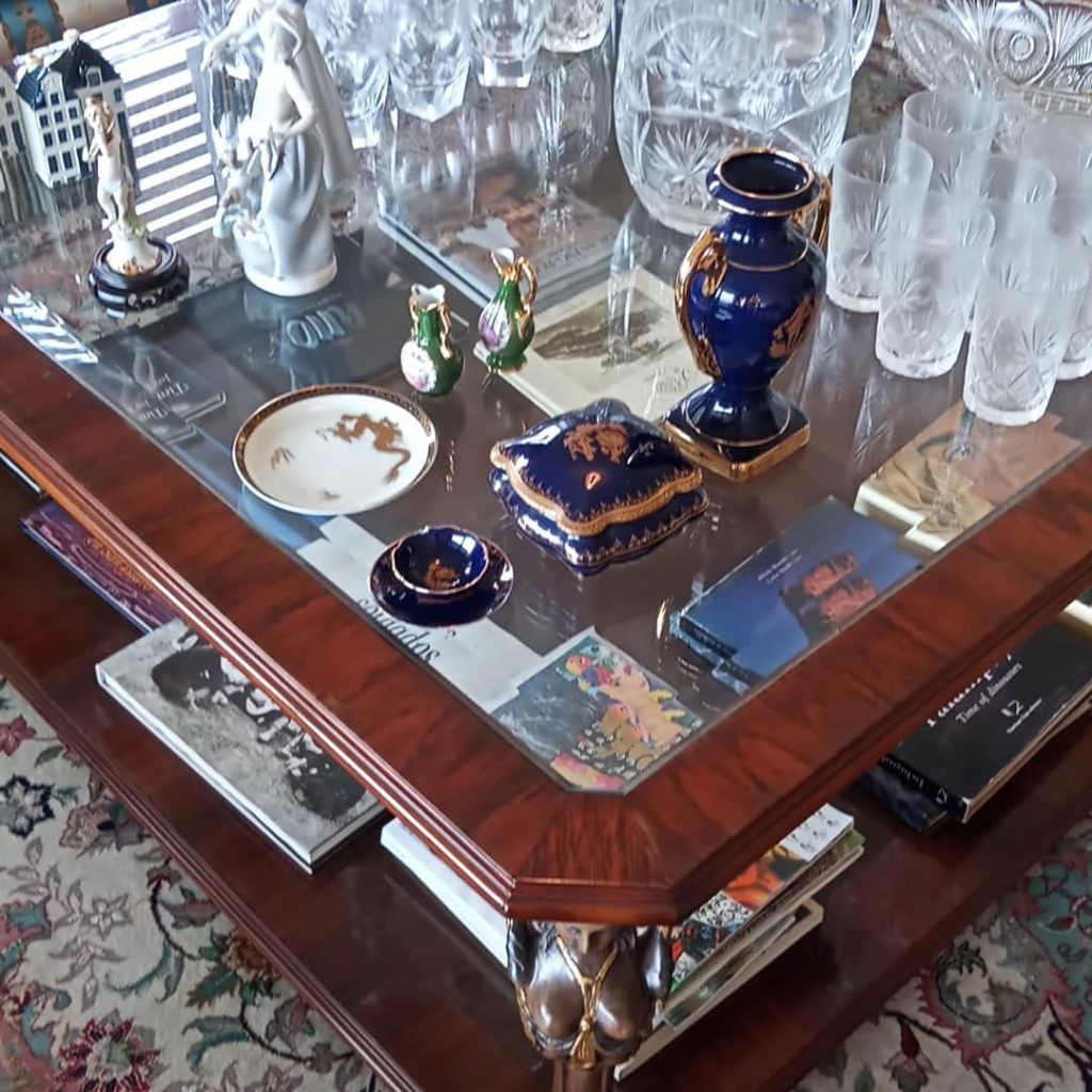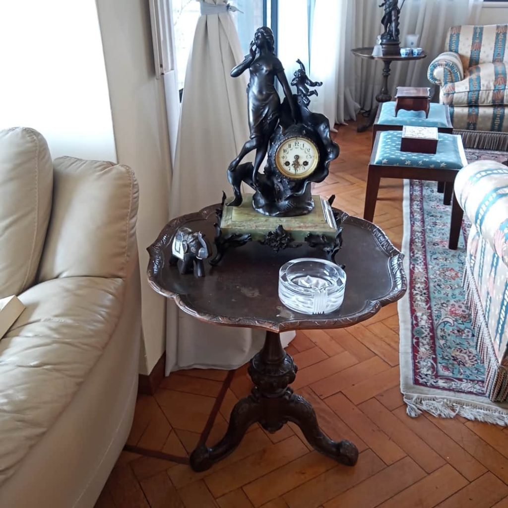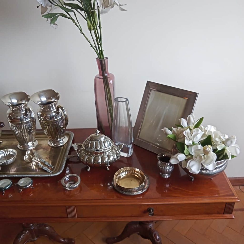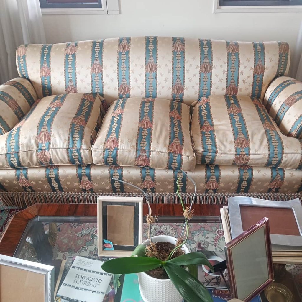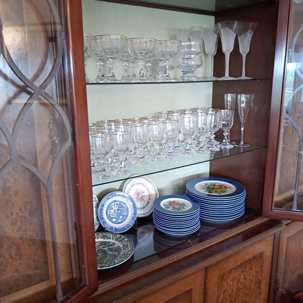 Sofá 3 cuerpos y 2 sillones 1 cuerpo tapizado bastones en natural y celeste; sofá en cuero 2 cuerpos color natural; 2 sillones Ingleses tapizados en seda azul; 2 sillas de roble; puff cuadrado marrón; 2 banquetas con tapizado azul; banqueta estilo Francés; banqueta tapizada en seda; mesas auxiliares: baja de sala con 2 cajones, con pie central tapa redonda y bordes irregulares, de juego Napoleón, cuadrada 2 planos Imperio, de arrimo con bordes irregulares, redonda con pie central; mueble boullé y escritorio Francés; comedor estilo Inglés: mesa oval entera y 8 sillas lira; vajillero en raíz con 6 puertas y 2 vitrinas centrales; mueble con esquina, estantes, 4 puertas y 3 cajones; mueble rack con ruedas, 2 puertas y vidrio; revistero en hierro y ratán; escritorio estilo Inglés con 2 cajones y silla; biblioteca pequeña con 2 cajones y 3 estantes; chiffonier Francés 7 cajones patinado en verde, con mármol; cómoda estilo Imperio rosa, con mármol, 5 cajones y espejo; 2 camas 1 plaza en hierro con sommiers; 2 mesas luz estilo Francés patinadas en verde, con mármol; cama 2 plazas con respaldo patinado en rosa y colchón; revistero antiguo con 1 cajón y ruedas; percha valet acrílico; mesas de luz tipo Imperio patinadas de rosa, con 3 cajones, mármol rosa y broncería-Adornos y vajilla: servicio de mesa Limpges blando con virola dorada; lote Verbano con te y café, fuentes; lote platos Italy bordes azules y centro frutos; set de te gris y florero oriental; casitas KLM; platos porcelana; ánfora Limoges; figuras Nao, Lladró; caja Limoges; hojas porcelana; cristalería, juegos de copas cristal, centro de mesa, copas, jarras, ensaladera, hieleras, botellón; metal plateado, jarras, bandeja, azucarera, cajas varias, despojadores, chocolatera, lote platos de pan, juegos cubiertos para 12 y para 6 personas, platos de sitio Christofle; reloj con figura y reloj de pared; espejos; cuadros firmados; gran óleo “Campo”, acrílico sobre papel, “Sin título” Josefina Robirosa, “Dique Luján hace mucho” Eduardo Audivert, “Naturaleza muerta” Orihuel, serigrafía Perez Celis, otros óleos decorativos; portarretratos; araña bolsa Imperio; lámpara de bronce pie con 2 luces, una móvil para lectura, de mesa orientales, de escritorio con pantalla de chapa verde, con brazo móvil en acero y travertino, de pie platil, veladores-Heladera doble puerta Whirlpool, otra heladera 3 fríos Whirlpool; comedor diario: mesa Italiana con vidrio, 2 sillas en caño; microondas BGH; cafetera Liliana; tostadora Smartlife; horno BGH; secarropas y lavarropas Whirlpool; lavavajillas; cantidad vajilla de diario, pirex, ollas, sartenes; cantidad enseres cocina; balcón: juego en rattán sintético: sillón 2 cuerpos, par sillones 1 cuerpo y mesa, 2 sillas plástico plegables con mesa; libros y CD´s; artículos de ortopedia; alfombras; ropa de blanco, manteles, mantas-Ropa hombre y Sra.; sombreros, accesorios, bijoux y más…