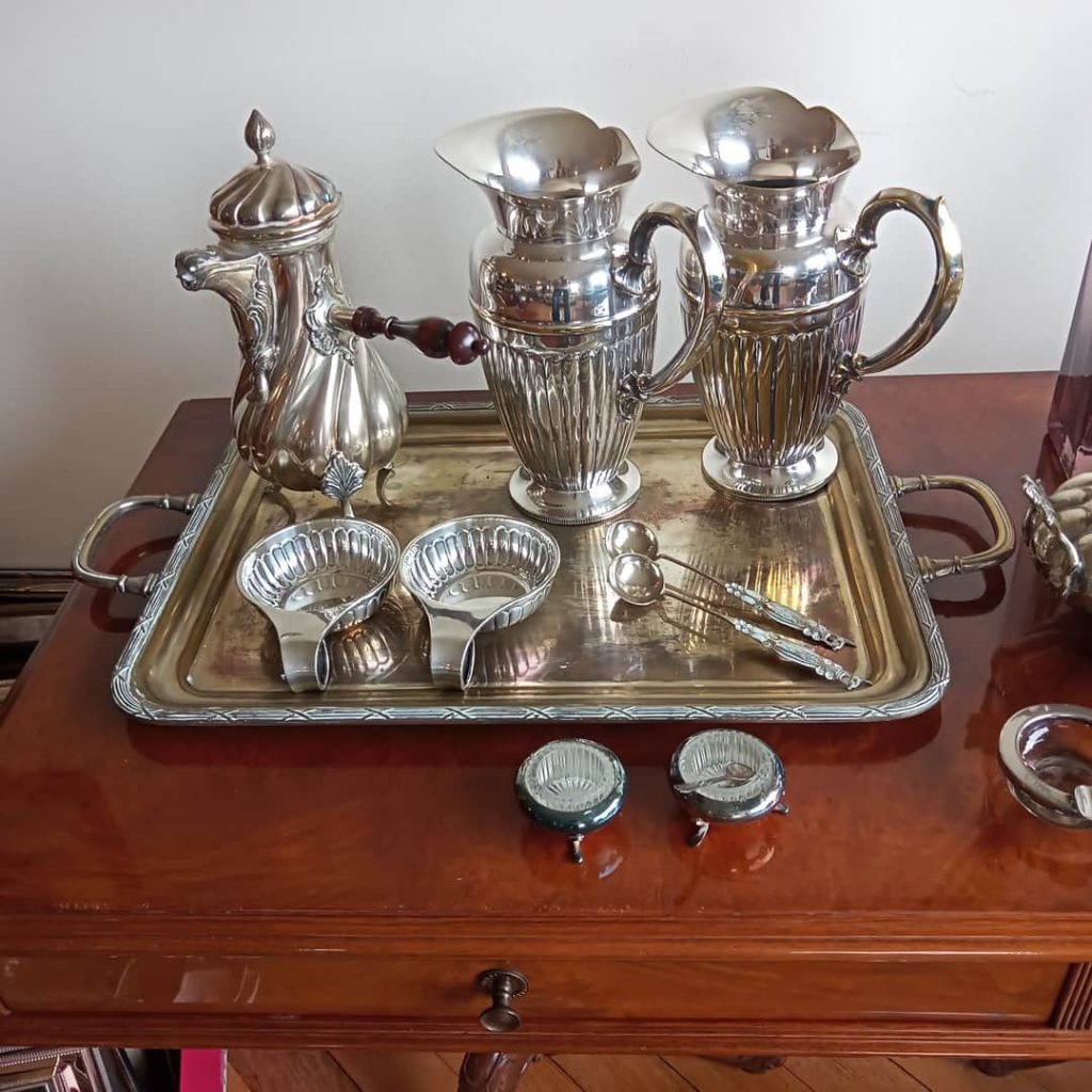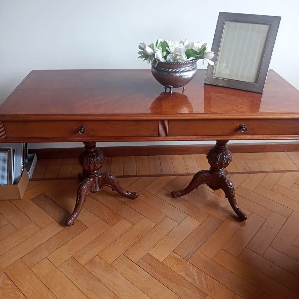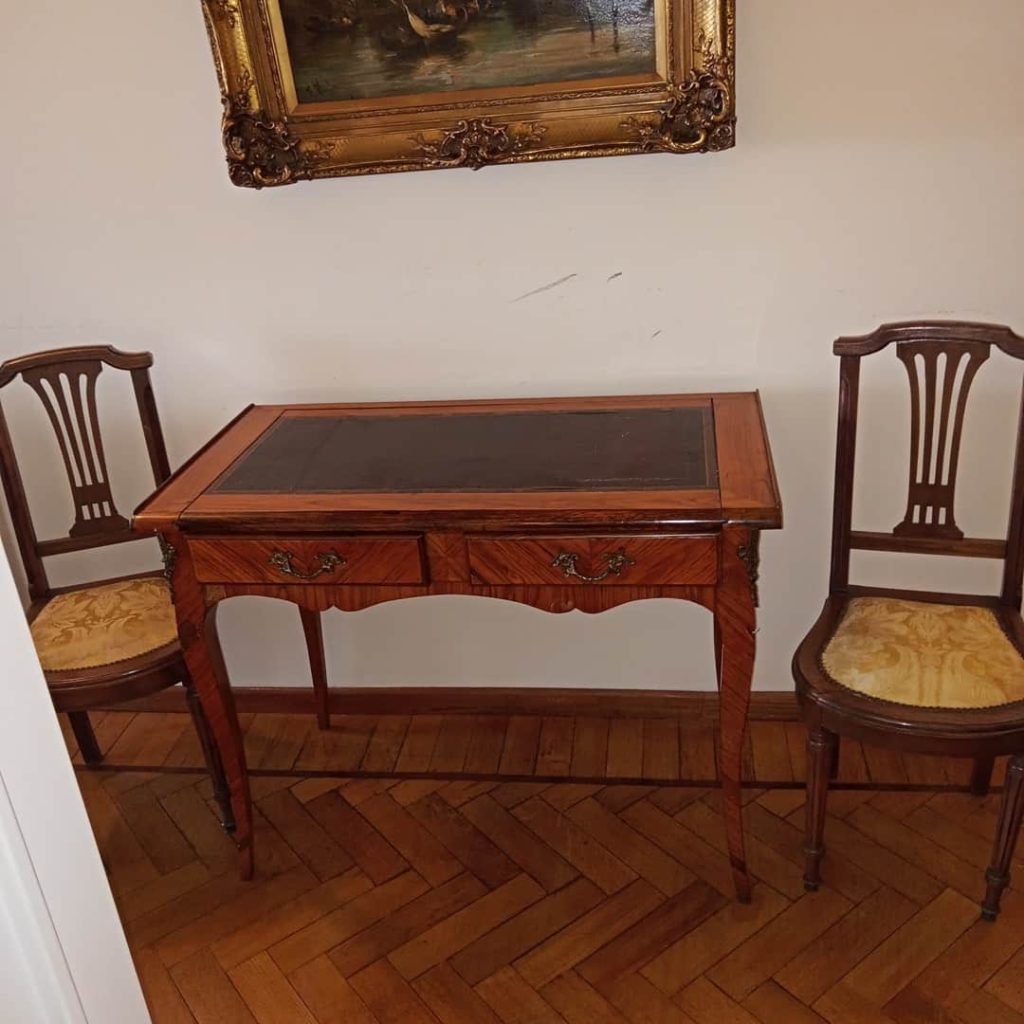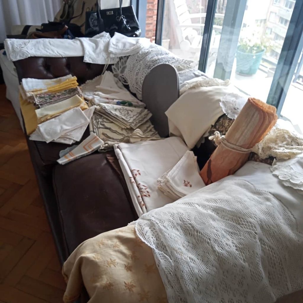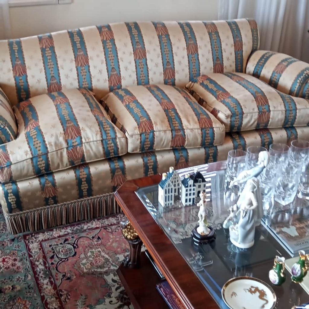 Sofá 3 cuerpos y 2 sillones 1 cuerpo tapizado bastones en natural y celeste; sofá en cuero 2 cuerpos color natural; 2 sillones Ingleses tapizados en seda azul; 2 sillas de roble; puff cuadrado marrón; 2 banquetas con tapizado azul; banqueta estilo Francés; banqueta tapizada en seda; mesas auxiliares: baja de sala con 2 cajones, con pie central tapa redonda y bordes irregulares, de juego Napoleón, cuadrada 2 planos Imperio, de arrimo con bordes irregulares, redonda con pie central; mueble boullé y escritorio Francés; comedor estilo Inglés: mesa oval entera y 8 sillas lira; vajillero en raíz con 6 puertas y 2 vitrinas centrales; mueble con esquina, estantes, 4 puertas y 3 cajones; mueble rack con ruedas, 2 puertas y vidrio; revistero en hierro y ratán; escritorio estilo Inglés con 2 cajones y silla; biblioteca pequeña con 2 cajones y 3 estantes; chiffonier Francés 7 cajones patinado en verde, con mármol; cómoda estilo Imperio rosa, con mármol, 5 cajones y espejo; 2 camas 1 plaza en hierro con sommiers; 2 mesas luz estilo Francés patinadas en verde, con mármol; cama 2 plazas con respaldo patinado en rosa y colchón; revistero antiguo con 1 cajón y ruedas; percha valet acrílico; mesas de luz tipo Imperio patinadas de rosa, con 3 cajones, mármol rosa y broncería-Adornos y vajilla: servicio de mesa Limpges blando con virola dorada; lote Verbano con te y café, fuentes; lote platos Italy bordes azules y centro frutos; set de te gris y florero oriental; casitas KLM; platos porcelana; ánfora Limoges; figuras Nao, Lladró; caja Limoges; hojas porcelana; cristalería, juegos de copas cristal, centro de mesa, copas, jarras, ensaladera, hieleras, botellón; metal plateado, jarras, bandeja, azucarera, cajas varias, despojadores, chocolatera, lote platos de pan, juegos cubiertos para 12 y para 6 personas, platos de sitio Christofle; reloj con figura y reloj de pared; espejos; cuadros firmados; gran óleo “Campo”, acrílico sobre papel, “Sin título” Josefina Robirosa, “Dique Luján hace mucho” Eduardo Audivert, “Naturaleza muerta” Orihuel, serigrafía Perez Celis, otros óleos decorativos; portarretratos; araña bolsa Imperio; lámpara de bronce pie con 2 luces, una móvil para lectura, de mesa orientales, de escritorio con pantalla de chapa verde, con brazo móvil en acero y travertino, de pie platil, veladores-Heladera doble puerta Whirlpool, otra heladera 3 fríos Whirlpool; comedor diario: mesa Italiana con vidrio, 2 sillas en caño; microondas BGH; cafetera Liliana; tostadora Smartlife; horno BGH; secarropas y lavarropas Whirlpool; lavavajillas; cantidad vajilla de diario, pirex, ollas, sartenes; cantidad enseres cocina; balcón: juego en rattán sintético: sillón 2 cuerpos, par sillones 1 cuerpo y mesa, 2 sillas plástico plegables con mesa; libros y CD´s; artículos de ortopedia; alfombras; ropa de blanco, manteles, mantas-Ropa hombre y Sra.; sombreros, accesorios, bijoux y más…