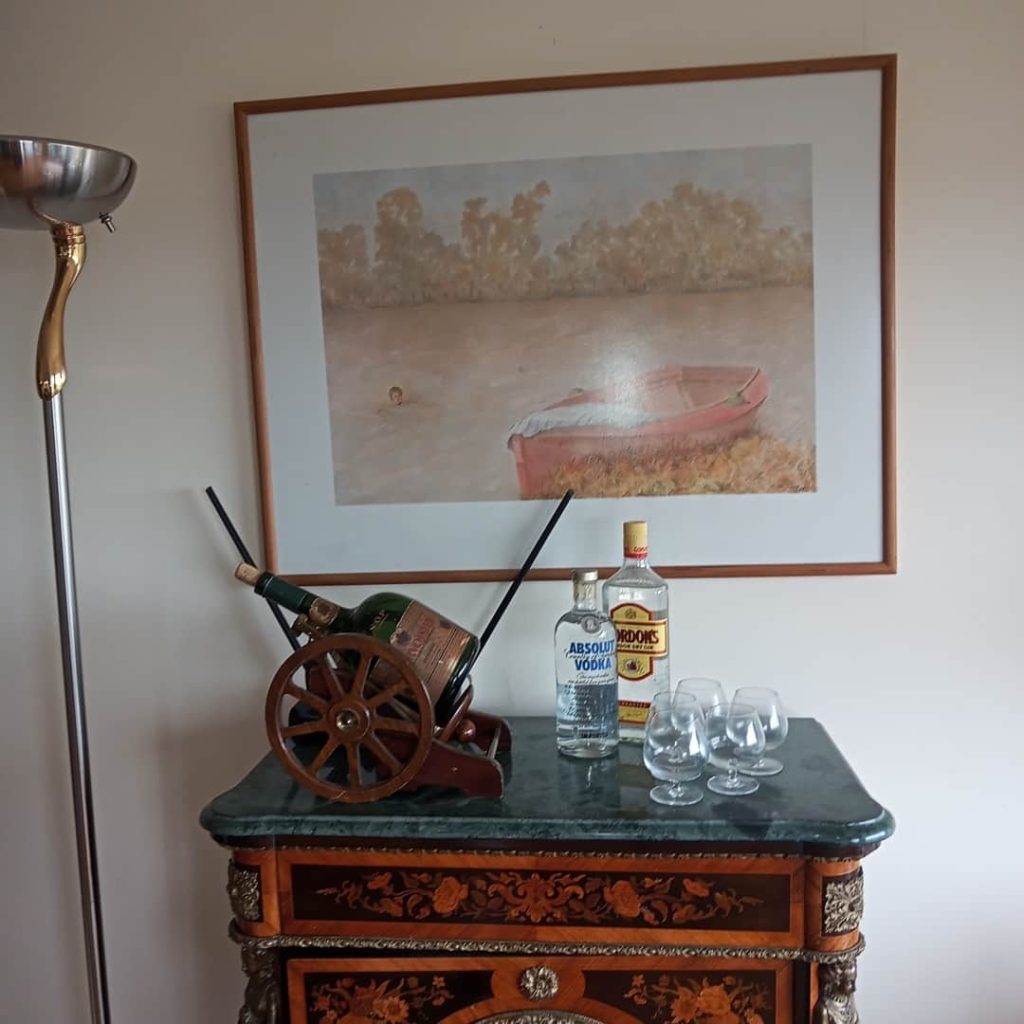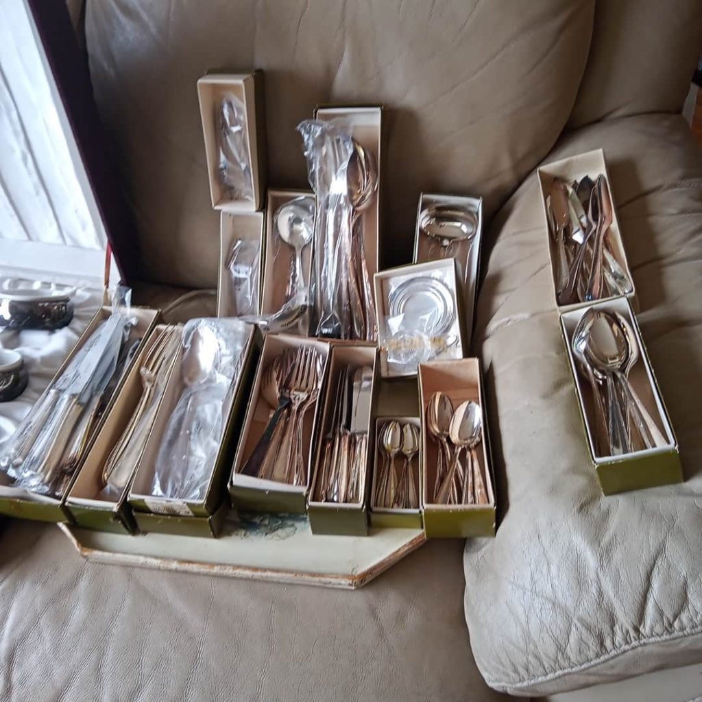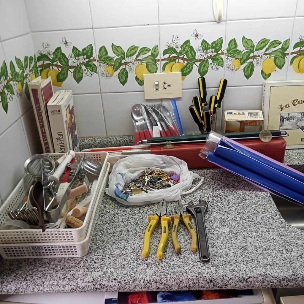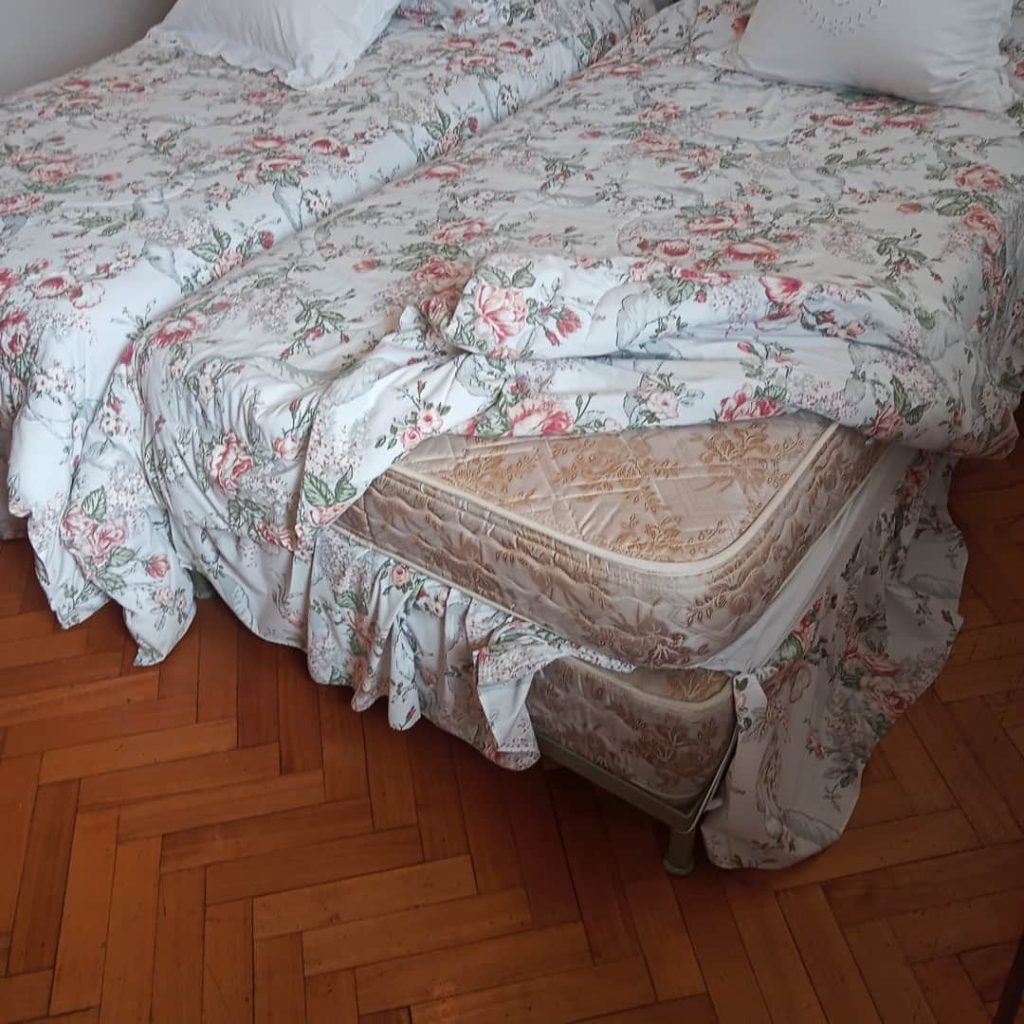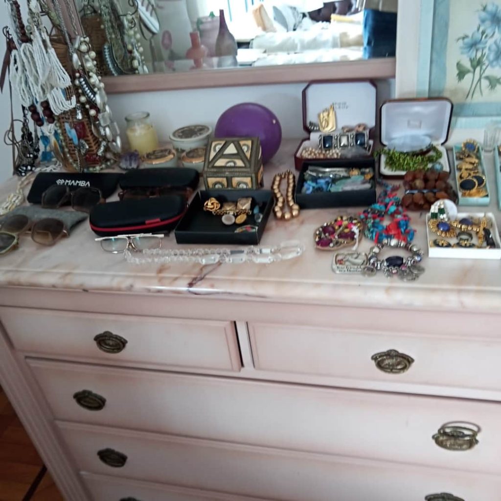 Sofá 3 cuerpos y 2 sillones 1 cuerpo tapizado bastones en natural y celeste; sofá en cuero 2 cuerpos color natural; 2 sillones Ingleses tapizados en seda azul; 2 sillas de roble; puff cuadrado marrón; 2 banquetas con tapizado azul; banqueta estilo Francés; banqueta tapizada en seda; mesas auxiliares: baja de sala con 2 cajones, con pie central tapa redonda y bordes irregulares, de juego Napoleón, cuadrada 2 planos Imperio, de arrimo con bordes irregulares, redonda con pie central; mueble boullé y escritorio Francés; comedor estilo Inglés: mesa oval entera y 8 sillas lira; vajillero en raíz con 6 puertas y 2 vitrinas centrales; mueble con esquina, estantes, 4 puertas y 3 cajones; mueble rack con ruedas, 2 puertas y vidrio; revistero en hierro y ratán; escritorio estilo Inglés con 2 cajones y silla; biblioteca pequeña con 2 cajones y 3 estantes; chiffonier Francés 7 cajones patinado en verde, con mármol; cómoda estilo Imperio rosa, con mármol, 5 cajones y espejo; 2 camas 1 plaza en hierro con sommiers; 2 mesas luz estilo Francés patinadas en verde, con mármol; cama 2 plazas con respaldo patinado en rosa y colchón; revistero antiguo con 1 cajón y ruedas; percha valet acrílico; mesas de luz tipo Imperio patinadas de rosa, con 3 cajones, mármol rosa y broncería-Adornos y vajilla: servicio de mesa Limpges blando con virola dorada; lote Verbano con te y café, fuentes; lote platos Italy bordes azules y centro frutos; set de te gris y florero oriental; casitas KLM; platos porcelana; ánfora Limoges; figuras Nao, Lladró; caja Limoges; hojas porcelana; cristalería, juegos de copas cristal, centro de mesa, copas, jarras, ensaladera, hieleras, botellón; metal plateado, jarras, bandeja, azucarera, cajas varias, despojadores, chocolatera, lote platos de pan, juegos cubiertos para 12 y para 6 personas, platos de sitio Christofle; reloj con figura y reloj de pared; espejos; cuadros firmados; gran óleo “Campo”, acrílico sobre papel, “Sin título” Josefina Robirosa, “Dique Luján hace mucho” Eduardo Audivert, “Naturaleza muerta” Orihuel, serigrafía Perez Celis, otros óleos decorativos; portarretratos; araña bolsa Imperio; lámpara de bronce pie con 2 luces, una móvil para lectura, de mesa orientales, de escritorio con pantalla de chapa verde, con brazo móvil en acero y travertino, de pie platil, veladores-Heladera doble puerta Whirlpool, otra heladera 3 fríos Whirlpool; comedor diario: mesa Italiana con vidrio, 2 sillas en caño; microondas BGH; cafetera Liliana; tostadora Smartlife; horno BGH; secarropas y lavarropas Whirlpool; lavavajillas; cantidad vajilla de diario, pirex, ollas, sartenes; cantidad enseres cocina; balcón: juego en rattán sintético: sillón 2 cuerpos, par sillones 1 cuerpo y mesa, 2 sillas plástico plegables con mesa; libros y CD´s; artículos de ortopedia; alfombras; ropa de blanco, manteles, mantas-Ropa hombre y Sra.; sombreros, accesorios, bijoux y más…