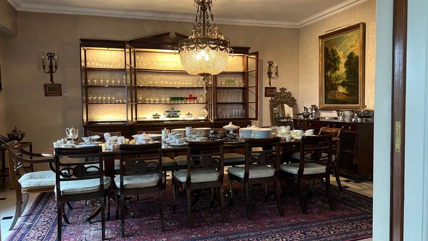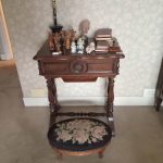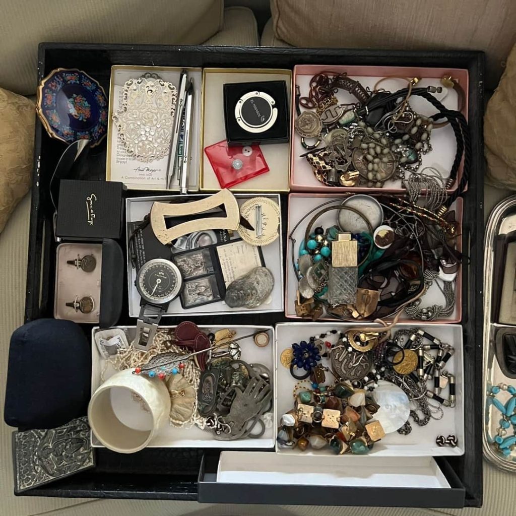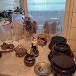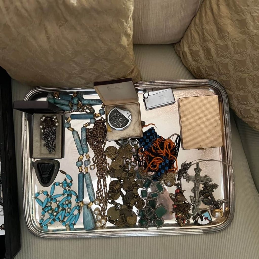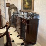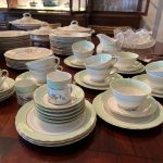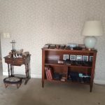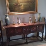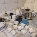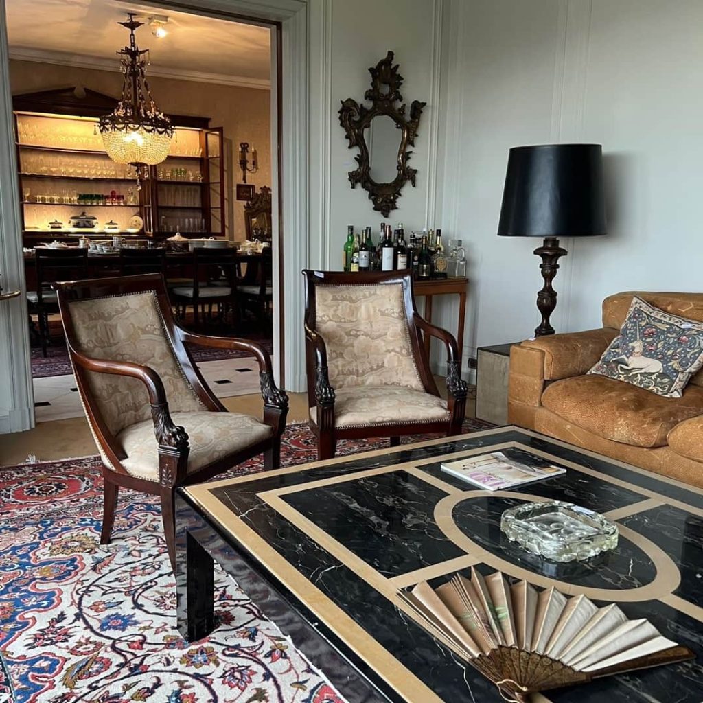 Sofá 3 cuerpos y par sillones 1 cuerpo tapizado en cuero; chaise longue estilo Inglés; sofás 3 y 2 cuerpos tapizados en carpincho; trono tapizado en gobelino estilo Chippendale; par tronos estilo Inglés; par sofás 2 cuerpos; par sillas con respaldo en madera tallada; par sillones 1 cuerpo; sillón bergere 1 cuerpo; sillón relax; silla estilo Inglés; mecedora; banqueta estilo Francés y otras; mesas auxiliares: con centro oval, formato riñón, libro tapa oval estilo Inglés, tapa rectangular en mármol, acrílica 4 planos, semi circular de apoyo, 3 planos escalonados, tapa rectangular, estilo Inglés tapa redonda pie central, tapa redonda, estilo Inglés 1 cajón, 3 planos escalonados; arcón madera tallada; comedor estilo Inglés, 10 sillas y par silloncitos cabecera; consola Francesa tapa verde, otra estilo Chippendale talla leones enchapada en raíz, tapa rectangular libro, pie central tapa redonda, par con tachas; mueble auxiliar 5 puertas estilo Inglés; tocador borde irregular con aplicaciones bronce estilo Francés; cómoda patinada 3 cajones tapa mármol, otra pequeña 3 cajones; bibliotecas colgante, estilo Francés, circular; esquinero estilo Inglés estantes degradé; par respaldos tapizados; mesa de luz; respaldo y piecera hierro; par mesas de luz patinada tapa mármol-Adornos y vajilla: lote platos en porcelana Limoges virola dorada; lote platos porcelana Inglesa con flores tonos pastel; tazas de café y de te; lote vajilla Indian Tree; potiche en porcelana; sopera y par salseras loza Inglesa; par floreros turquesa con personajes opalinas; jarra Art Nouveau con decoración floral; botellón azul con tapa chico y botella azul; jarras iridiscentes; par floreros cerámica esmaltada turquesa; par floreros isabelinos; 3 despojadores porcelana, 2 despojadores turquesas y par orientales; par jarras vidrio prensado 2 colores; par jarras pintadas virola dorada; par candeleros patinado en verde, par de “Ángeles” y con inscripción; jarrón y tintero en cerámica; bizcochera en cristal tallado tapa metal; cristalería, par jarras, jarrón, botellones, juego copas pie torneado firmadas decorado, par ceniceros, par candeleros con caireles, copón cristal color, cenicero diseño; potiche metal plateado; par caracolas metal; caviarera metal; balde refrescador en metal; cantidad bandejas en metal plateado; macetero, par candeleros, imagen religiosa, maceta y balde bronce; retablo de la Virgen, talla Cristo en la Cruz, “Imagen religiosa” sobre acrílico; libro con herrajes en metal; Árbol de la vida; pie verde con caramelos Murano; pequeñas piezas en malaquita; cajitas; geisha en marfil; tríptico estilo oriental; mapamundi; reloj bolitas; reloj de pared caja madera; espejo marco dorado ángeles en yeso patinado, espejo marco dorado y otros; cuadros firmados, óleos “Bosque” Mazza, decorativos “Noche en altamar”, “Personaje masculino” y otros; óleos miniaturas “Naturalezas muertas”; lámina enmarcada oriental; grabados; dibujo “Personajes”; portarretratos; araña estilo Francés bolsa; quinqué colgante; par lámparas madera patinada, otras bronce, porcelana, celedón, porcelana decoración oriental, en bronce brazo móvil; mesas lámparas; apliques bronce Franceses, otros-Yamaha AX-492, Yamaha TX-480, Yamaha CDC-565; microondas; comedor diario: mesa tapa rectangular blanca y mesa tapa fórmica rectangular, sillas; bebidas; atril en bronce; bicicleta fija; silla para bebé; alfombras bordó, con cuadrícula guarda perimetral flores y aves, base bordó; mantelería y más…