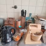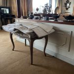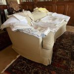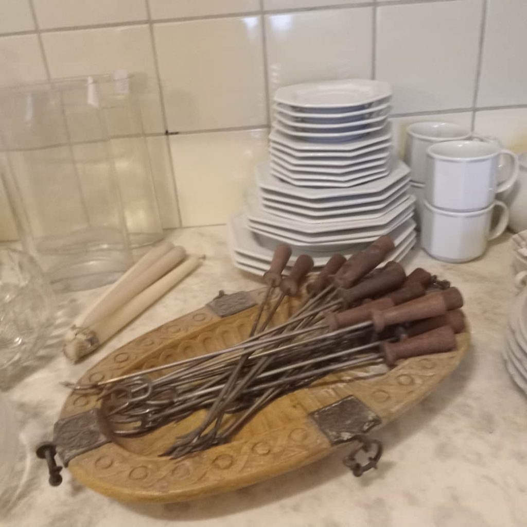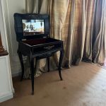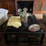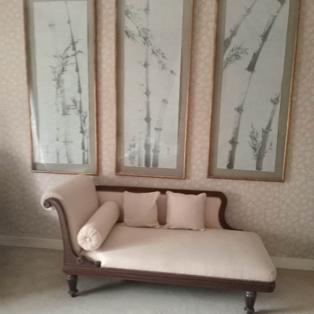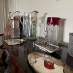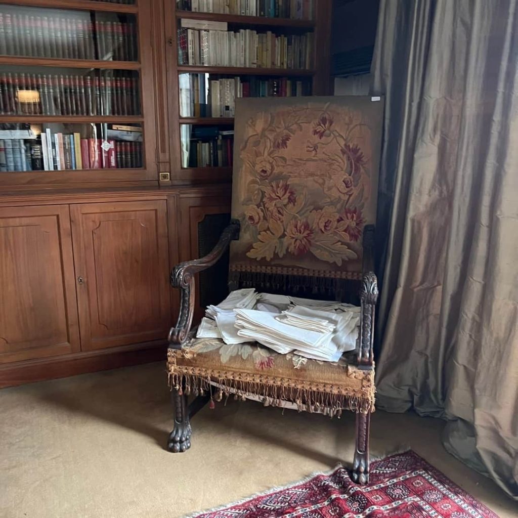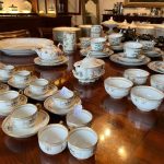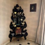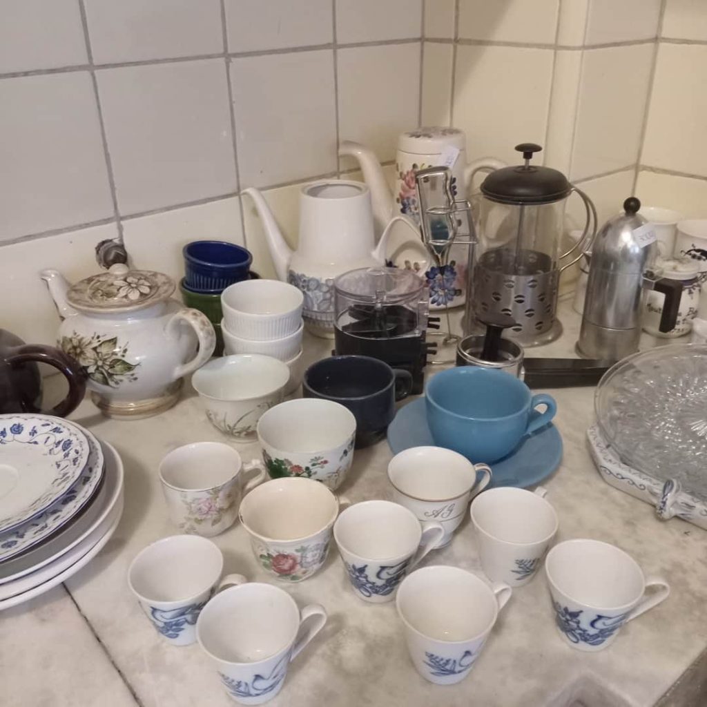Sofá 3 cuerpos y par sillones 1 cuerpo tapizado en cuero; chaise longue estilo Inglés; sofás 3 y 2 cuerpos tapizados en carpincho; trono tapizado en gobelino estilo Chippendale; par tronos estilo Inglés; par sofás 2 cuerpos; par sillas con respaldo en madera tallada; par sillones 1 cuerpo; sillón bergere 1 cuerpo; sillón relax; silla estilo Inglés; mecedora; banqueta estilo Francés y otras; mesas auxiliares: con centro oval, formato riñón, libro tapa oval estilo Inglés, tapa rectangular en mármol, acrílica 4 planos, semi circular de apoyo, 3 planos escalonados, tapa rectangular, estilo Inglés tapa redonda pie central, tapa redonda, estilo Inglés 1 cajón, 3 planos escalonados; arcón madera tallada; comedor estilo Inglés, 10 sillas y par silloncitos cabecera; consola Francesa tapa verde, otra estilo Chippendale talla leones enchapada en raíz, tapa rectangular libro, pie central tapa redonda, par con tachas; mueble auxiliar 5 puertas estilo Inglés; tocador borde irregular con aplicaciones bronce estilo Francés; cómoda patinada 3 cajones tapa mármol, otra pequeña 3 cajones; bibliotecas colgante, estilo Francés, circular; esquinero estilo Inglés estantes degradé; par respaldos tapizados; mesa de luz; respaldo y piecera hierro; par mesas de luz patinada tapa mármol-Adornos y vajilla: lote platos en porcelana Limoges virola dorada; lote platos porcelana Inglesa con flores tonos pastel; tazas de café y de te; lote vajilla Indian Tree; potiche en porcelana; sopera y par salseras loza Inglesa; par floreros turquesa con personajes opalinas; jarra Art Nouveau con decoración floral; botellón azul con tapa chico y botella azul; jarras iridiscentes; par floreros cerámica esmaltada turquesa; par floreros isabelinos; 3 despojadores porcelana, 2 despojadores turquesas y par orientales; par jarras vidrio prensado 2 colores; par jarras pintadas virola dorada; par candeleros patinado en verde, par de “Ángeles” y con inscripción; jarrón y tintero en cerámica; bizcochera en cristal tallado tapa metal; cristalería, par jarras, jarrón, botellones, juego copas pie torneado firmadas decorado, par ceniceros, par candeleros con caireles, copón cristal color, cenicero diseño; potiche metal plateado; par caracolas metal; caviarera metal; balde refrescador en metal; cantidad bandejas en metal plateado; macetero, par candeleros, imagen religiosa, maceta y balde bronce; retablo de la Virgen, talla Cristo en la Cruz, “Imagen religiosa” sobre acrílico; libro con herrajes en metal; Árbol de la vida; pie verde con caramelos Murano; pequeñas piezas en malaquita; cajitas; geisha en marfil; tríptico estilo oriental; mapamundi; reloj bolitas; reloj de pared caja madera; espejo marco dorado ángeles en yeso patinado, espejo marco dorado y otros; cuadros firmados, óleos “Bosque” Mazza, decorativos “Noche en altamar”, “Personaje masculino” y otros; óleos miniaturas “Naturalezas muertas”; lámina enmarcada oriental; grabados; dibujo “Personajes”; portarretratos; araña estilo Francés bolsa; quinqué colgante; par lámparas madera patinada, otras bronce, porcelana, celedón, porcelana decoración oriental, en bronce brazo móvil; mesas lámparas; apliques bronce Franceses, otros-Yamaha AX-492, Yamaha TX-480, Yamaha CDC-565; microondas; comedor diario: mesa tapa rectangular blanca y mesa tapa fórmica rectangular, sillas; bebidas; atril en bronce; bicicleta fija; silla para bebé; alfombras bordó, con cuadrícula guarda perimetral flores y aves, base bordó; mantelería y más…