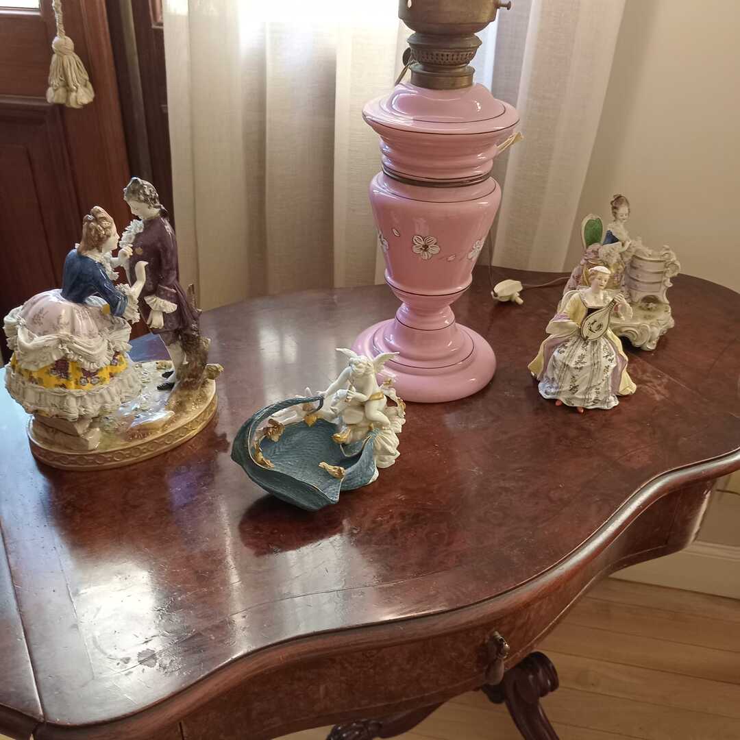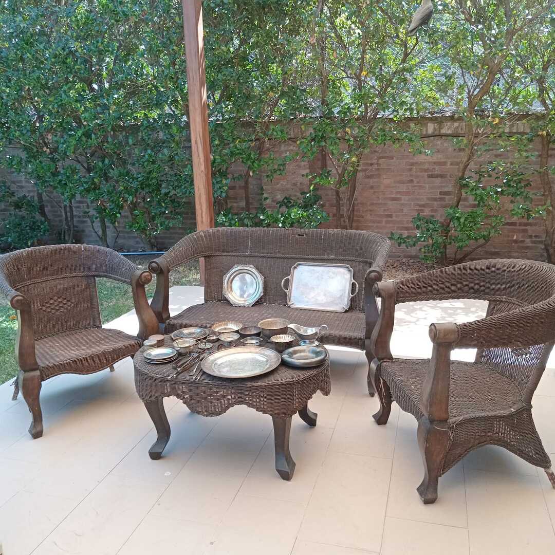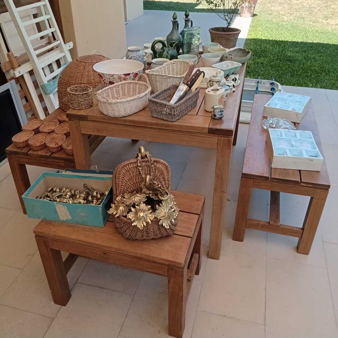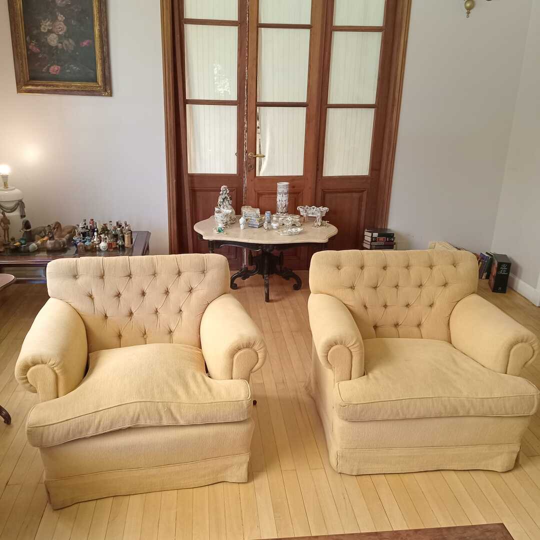 Sofá 3 cuerpos estilo Inglés tapizado chenille; sofá 2 cuerpos; par sillones 1 cuerpo; mesas auxiliares: par estilo Inglés con alas, 2 planos, de sala baja estilo Inglés tapa partida, vitrina, otras; comedor: mesa tapa oval, 2 sillones, 8 sillas; aparador alto estilo Inglés con 8 puertas y 3 cajones; cómoda 6 cajones, otra 4 cajones; mueble 2 módulos con 2 puertas y 4 cajones; perchero con ganchos en bronce y espejo; sommier 2 x 2 Rossen; cama 1 plaza; par mesas de luz estilo Inglés con 1 cajón y pie central, otras par con 1 puerta, 1 cajón y tapa de mármol-Adornos y vajilla; figuras porcelana Capodimonte y otras; florero Capodimonte; cristalería, copas y vasos, botellones, jarra con cucharón, juego de café en vidrio con montura acero; jarra y centro en metal; revistero madera; patos; cacharros cobre; paragüero; espejos con marco dorado y marco patinado; cuadros decorativos, óleos «Naturaleza muerta con flores» y «Naturaleza muerta con uvas» firmado F. Arniholt; par cuadros «Personajes», «Interior», «Vacas»; grabado «Atacando»; marco dorado; araña en bronce 6 luces con caireles; quinqué en porcelana rosa; lámparas de mesa, blanca con gris, par en bronce, pasteca; apliques brazo extensible, par estilo Holandés 2 luces, plafón y aplique colgante; chispero articulado en bronce-LDC 42″ Samsung Smart; freezer cajón Gafa; horno eléctrico Smart Life y otro Atma; enseres de cocina; bolsa con palo de golf; libros; accesorios niños: cuna blanca, coche bebé, practicuna, colchones cuna, 2 sillas autos, bibliotecas, baúl en madera, cocinita, pizarrón de pie, mecedora mimbre, sillita comer, pelela; jardín: living en mimbre, juego en madera maciza: mesa tapa rectangular y bancos; metegol; valijas, bolsos; ropa de cama; cortinas roller y otras, barrales platil; ropa de bebé, juguetes, Barbies, animalitos, autitos-Ropa de mujer: La Ventana, San Ángel, Laura Manrique, Sofía Chame, Adirana Constantini, Anne Taylor, Paradigmas, Prune, otras; perfumes y más…