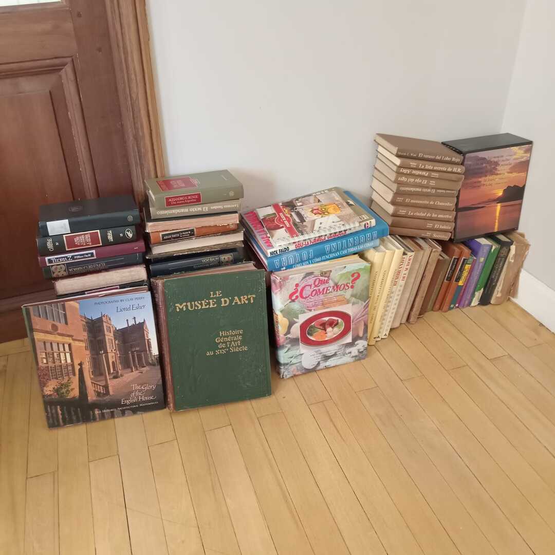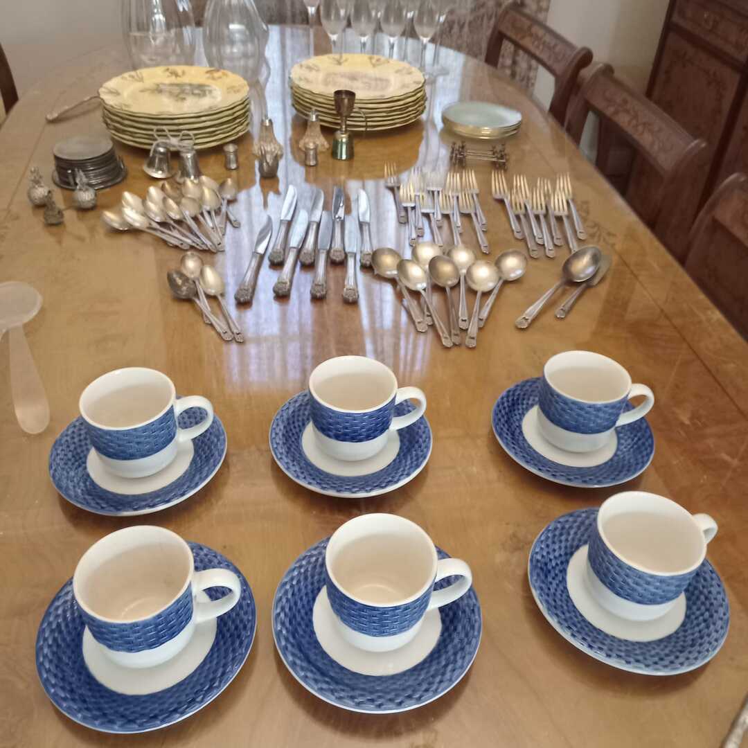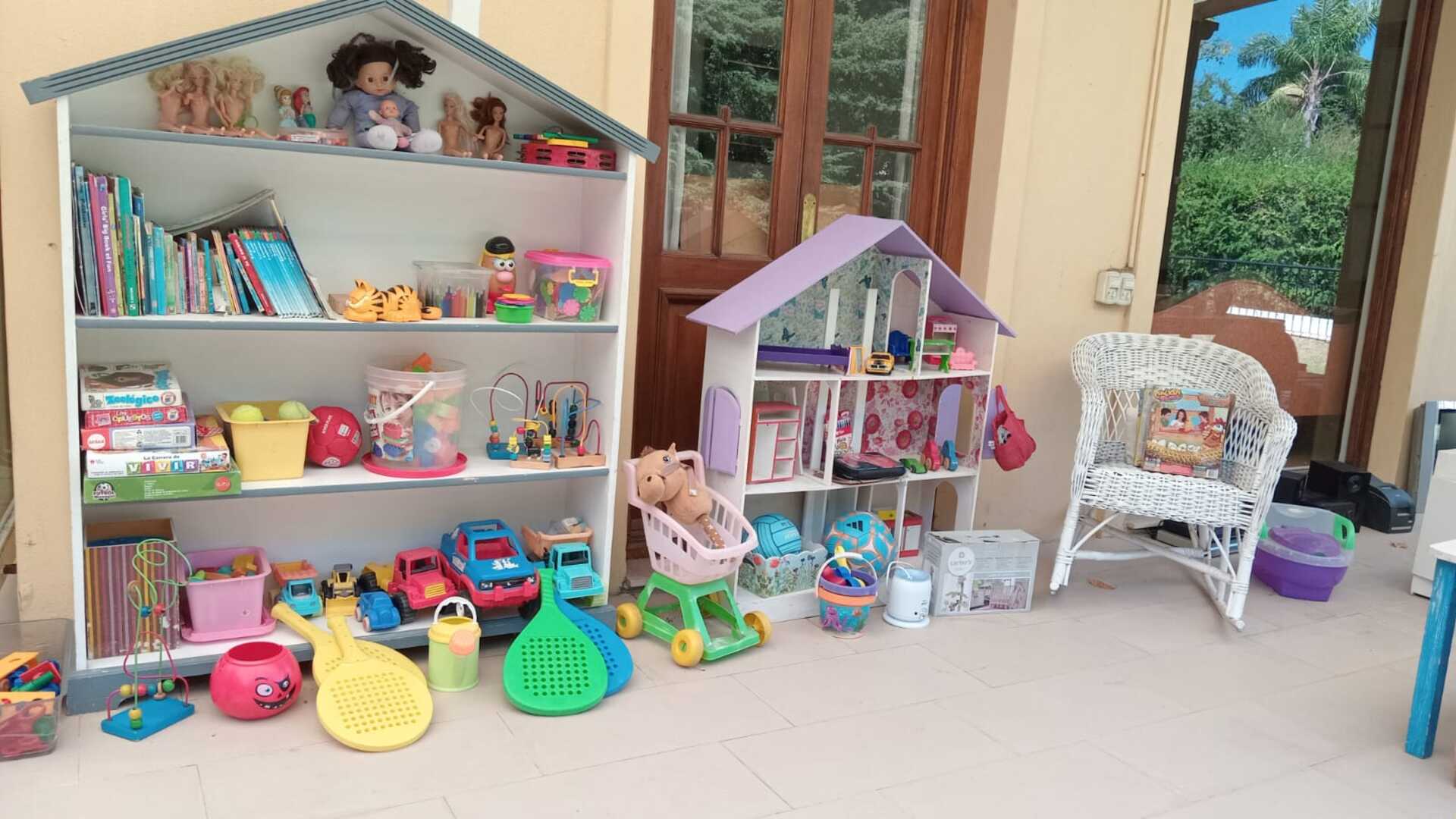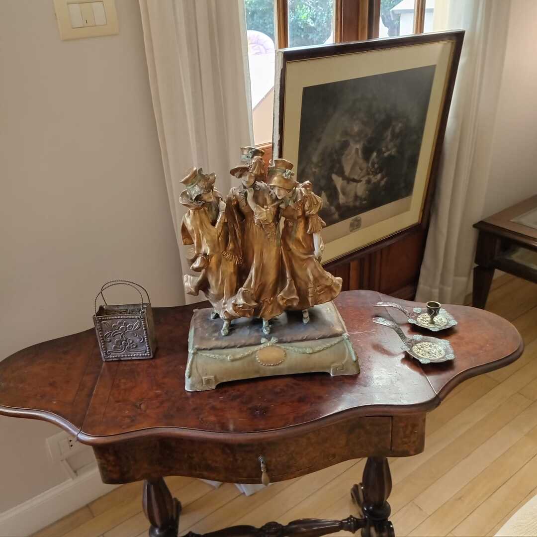 Sofá 3 cuerpos estilo Inglés tapizado chenille; sofá 2 cuerpos; par sillones 1 cuerpo; mesas auxiliares: par estilo Inglés con alas, 2 planos, de sala baja estilo Inglés tapa partida, vitrina, otras; comedor: mesa tapa oval, 2 sillones, 8 sillas; aparador alto estilo Inglés con 8 puertas y 3 cajones; cómoda 6 cajones, otra 4 cajones; mueble 2 módulos con 2 puertas y 4 cajones; perchero con ganchos en bronce y espejo; sommier 2 x 2 Rossen; cama 1 plaza; par mesas de luz estilo Inglés con 1 cajón y pie central, otras par con 1 puerta, 1 cajón y tapa de mármol-Adornos y vajilla; figuras porcelana Capodimonte y otras; florero Capodimonte; cristalería, copas y vasos, botellones, jarra con cucharón, juego de café en vidrio con montura acero; jarra y centro en metal; revistero madera; patos; cacharros cobre; paragüero; espejos con marco dorado y marco patinado; cuadros decorativos, óleos «Naturaleza muerta con flores» y «Naturaleza muerta con uvas» firmado F. Arniholt; par cuadros «Personajes», «Interior», «Vacas»; grabado «Atacando»; marco dorado; araña en bronce 6 luces con caireles; quinqué en porcelana rosa; lámparas de mesa, blanca con gris, par en bronce, pasteca; apliques brazo extensible, par estilo Holandés 2 luces, plafón y aplique colgante; chispero articulado en bronce-LDC 42″ Samsung Smart; freezer cajón Gafa; horno eléctrico Smart Life y otro Atma; enseres de cocina; bolsa con palo de golf; libros; accesorios niños: cuna blanca, coche bebé, practicuna, colchones cuna, 2 sillas autos, bibliotecas, baúl en madera, cocinita, pizarrón de pie, mecedora mimbre, sillita comer, pelela; jardín: living en mimbre, juego en madera maciza: mesa tapa rectangular y bancos; metegol; valijas, bolsos; ropa de cama; cortinas roller y otras, barrales platil; ropa de bebé, juguetes, Barbies, animalitos, autitos-Ropa de mujer: La Ventana, San Ángel, Laura Manrique, Sofía Chame, Adirana Constantini, Anne Taylor, Paradigmas, Prune, otras; perfumes y más…