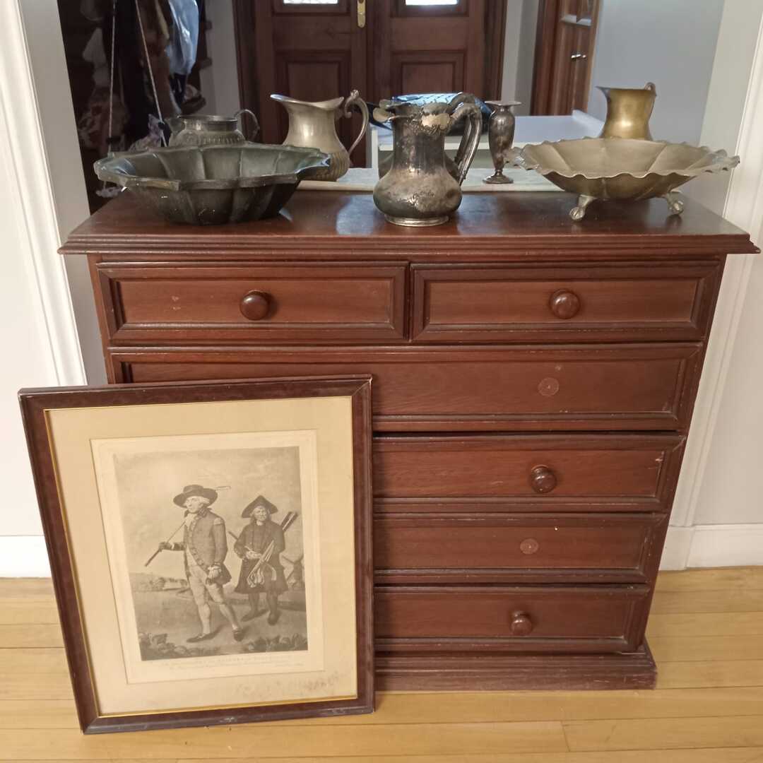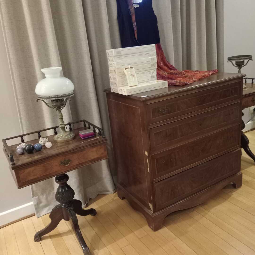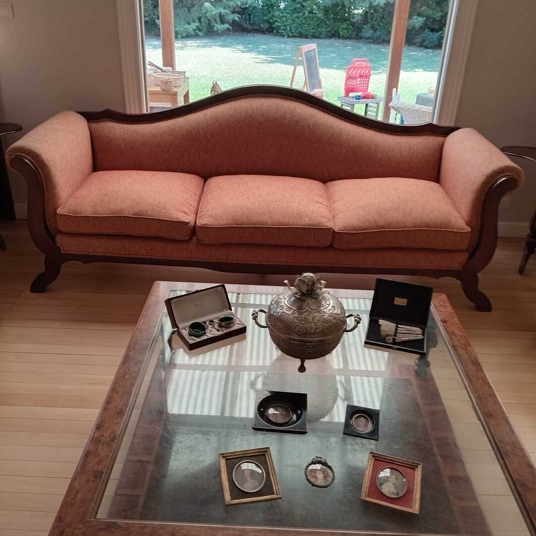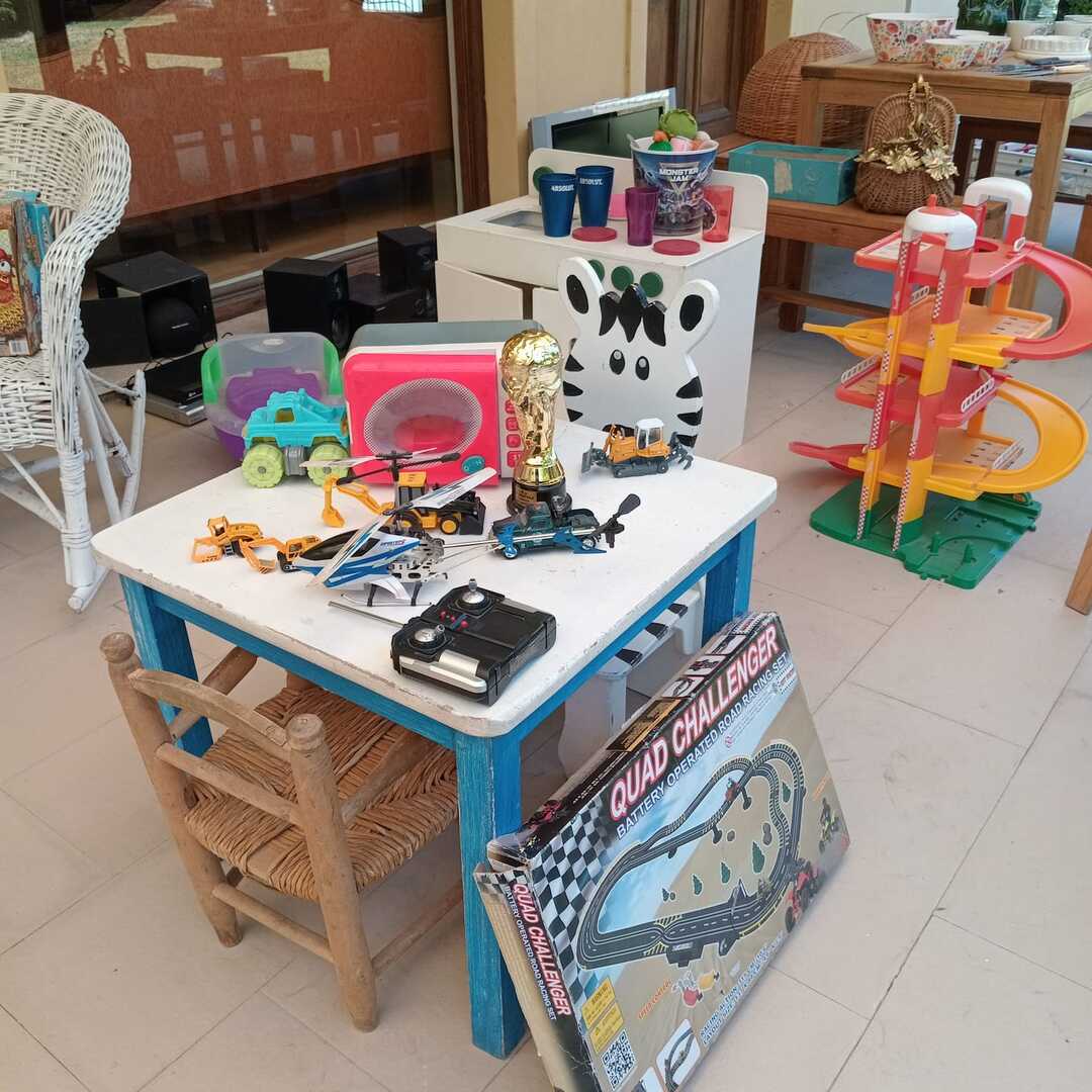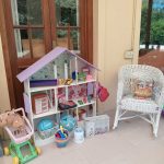 Sofá 3 cuerpos estilo Inglés tapizado chenille; sofá 2 cuerpos; par sillones 1 cuerpo; mesas auxiliares: par estilo Inglés con alas, 2 planos, de sala baja estilo Inglés tapa partida, vitrina, otras; comedor: mesa tapa oval, 2 sillones, 8 sillas; aparador alto estilo Inglés con 8 puertas y 3 cajones; cómoda 6 cajones, otra 4 cajones; mueble 2 módulos con 2 puertas y 4 cajones; perchero con ganchos en bronce y espejo; sommier 2 x 2 Rossen; cama 1 plaza; par mesas de luz estilo Inglés con 1 cajón y pie central, otras par con 1 puerta, 1 cajón y tapa de mármol-Adornos y vajilla; figuras porcelana Capodimonte y otras; florero Capodimonte; cristalería, copas y vasos, botellones, jarra con cucharón, juego de café en vidrio con montura acero; jarra y centro en metal; revistero madera; patos; cacharros cobre; paragüero; espejos con marco dorado y marco patinado; cuadros decorativos, óleos «Naturaleza muerta con flores» y «Naturaleza muerta con uvas» firmado F. Arniholt; par cuadros «Personajes», «Interior», «Vacas»; grabado «Atacando»; marco dorado; araña en bronce 6 luces con caireles; quinqué en porcelana rosa; lámparas de mesa, blanca con gris, par en bronce, pasteca; apliques brazo extensible, par estilo Holandés 2 luces, plafón y aplique colgante; chispero articulado en bronce-LDC 42″ Samsung Smart; freezer cajón Gafa; horno eléctrico Smart Life y otro Atma; enseres de cocina; bolsa con palo de golf; libros; accesorios niños: cuna blanca, coche bebé, practicuna, colchones cuna, 2 sillas autos, bibliotecas, baúl en madera, cocinita, pizarrón de pie, mecedora mimbre, sillita comer, pelela; jardín: living en mimbre, juego en madera maciza: mesa tapa rectangular y bancos; metegol; valijas, bolsos; ropa de cama; cortinas roller y otras, barrales platil; ropa de bebé, juguetes, Barbies, animalitos, autitos-Ropa de mujer: La Ventana, San Ángel, Laura Manrique, Sofía Chame, Adirana Constantini, Anne Taylor, Paradigmas, Prune, otras; perfumes y más…