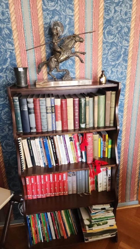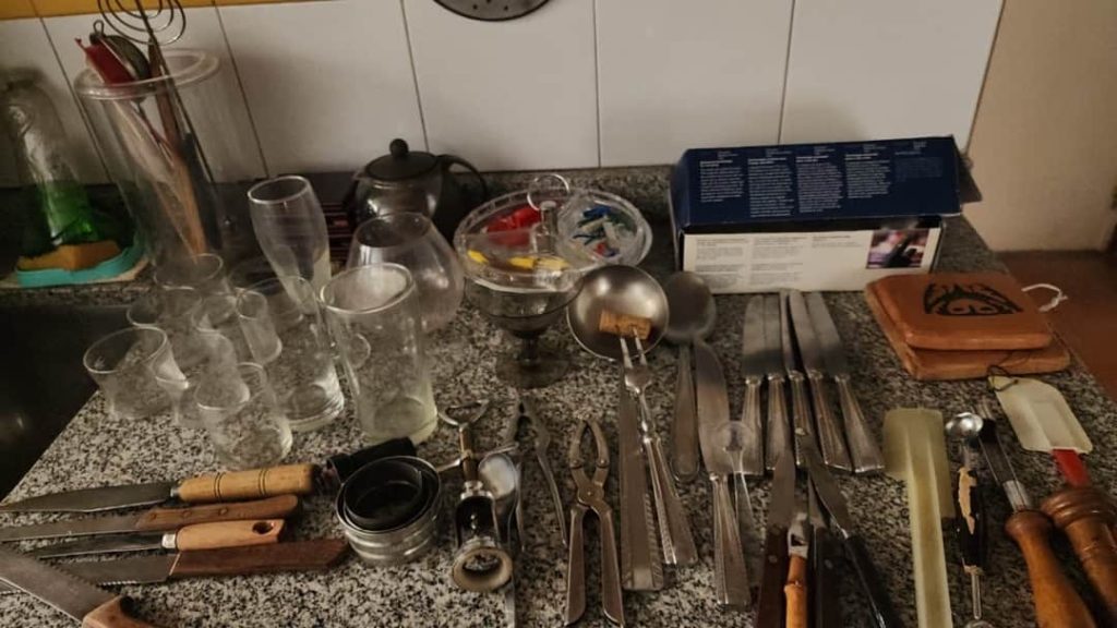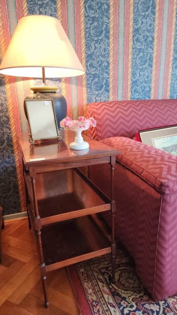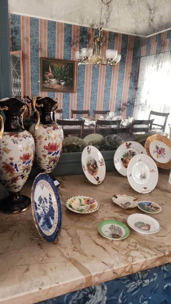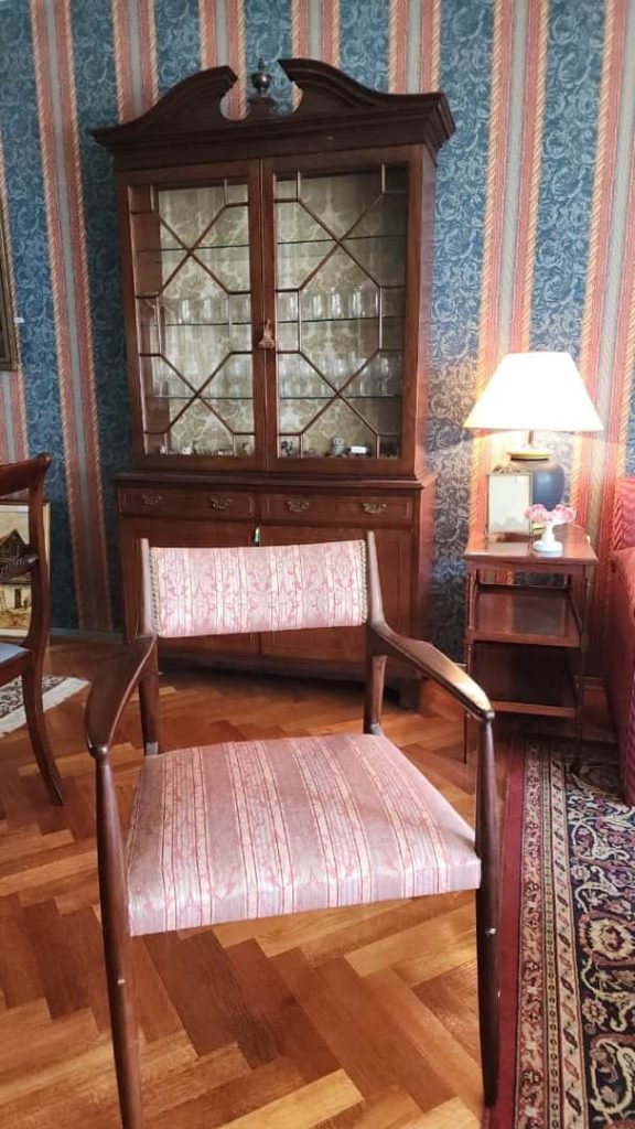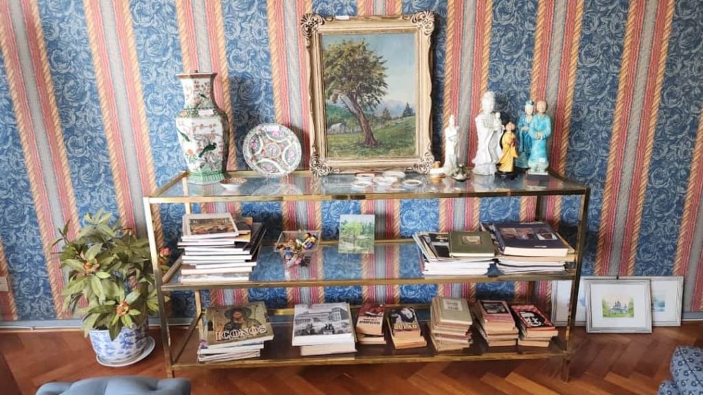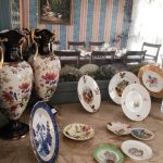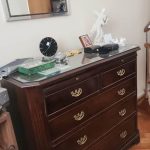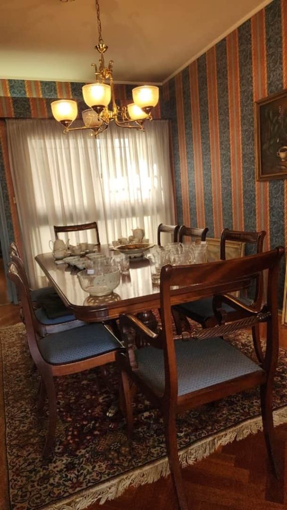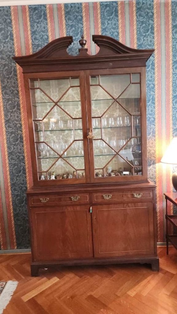 Sofá 3 cuerpos color borravino; par sillones berger tapizado celeste; sillón 1 cuerpo; par sillas estilo Francés; sillones estilo Inglés 1 cuerpo; par butacas; sillón estilo Inglés en cuero; sillón vintage; butacón; mesas auxiliares: en bronce y vítrea 2 planos, estilo Inglés tapa vítrea, con alzada y 2 cajones, tapa redonda y estante con galería, 3 planos estilo Inglés, con ruedas; secretaire estilo Inglés; consola 3 planos en bronce y vítrea; pequeña biblioteca estilo Inglés, otras 2 bibliotecas en roble; escritorio estilo Inglés; comedor estilo Inglés: mesa doble pedestal con tabla de alargue, 6 sillas y par silloncitos; vitrina estilo Inglés; cómoda; 2 camas respaldo de hierro y bronce; cama 1 plaza; par mesas de luz; percha valet-Adornos y vajilla; 2 servicios de café en porcelana; centro porcelana Bavaria en cobalto y dorado; par jarrones Ingleses; platos decorativos en porcelana; pequeña guisera en porcelana; 4 copas de porcelana con motivos caballos; juego copas talla gota, jarras, asos y copas sueltas, pequeño copón, pequeños perfumeros en su estuche; champagnera metal plateado; figuras orientales; talla “Personajes”; Cristo en piedra; bronce “Guerrero”; figura egipcia; macetero oriental; 2 pequeños dispensers en cerámica; espejo con marco cromado; colección de lechuzas; 4 embarcaciones enmarcadas; reloj cucú; cuadros y óleos decorativos, “Nudos”, “Embarcación”, “Casa con escalera”, “Personajes”, “Arroyo”, “Naturaleza muerta”, “Árbol”, “Iglesia”; láminas enmarcadas; araña estilo Osler; lámparas de mesa en bronce, base en porcelana oriental con escenas botánicas, par de cerámica patinadas-Minicomponente Sony; Minicomponente Philips; lavarropas Whirlpool; aspiradora Samsung; mesa fórmica y otra redonda tapa fórmica; enseres cocina; vajilla cotidiana; 2 catres plegables; libros; cantidad bolsos, valijas y carry on; alfombra floral; carpeta con guarda; cortinas y más…