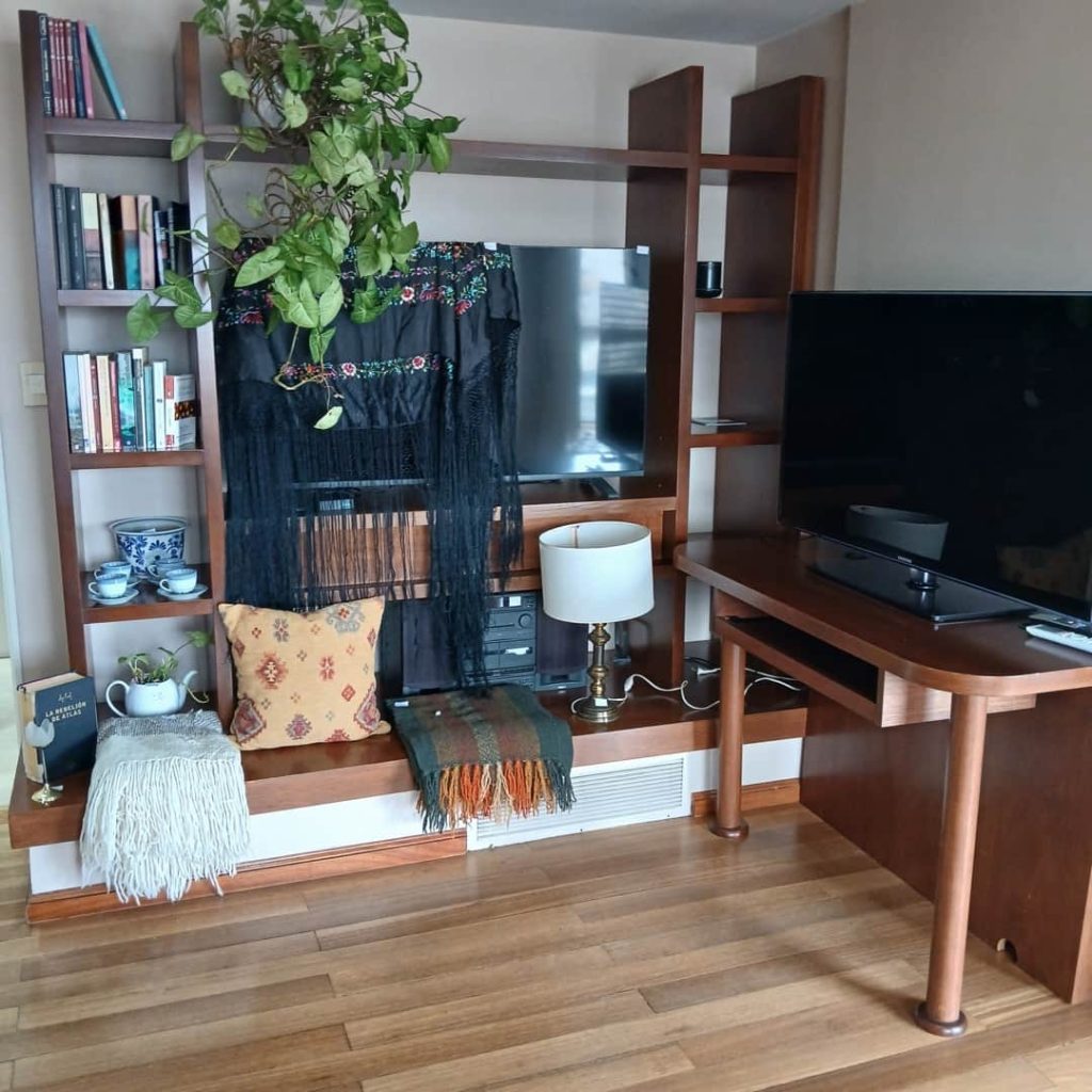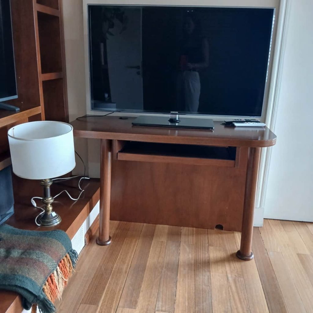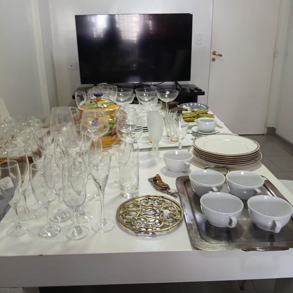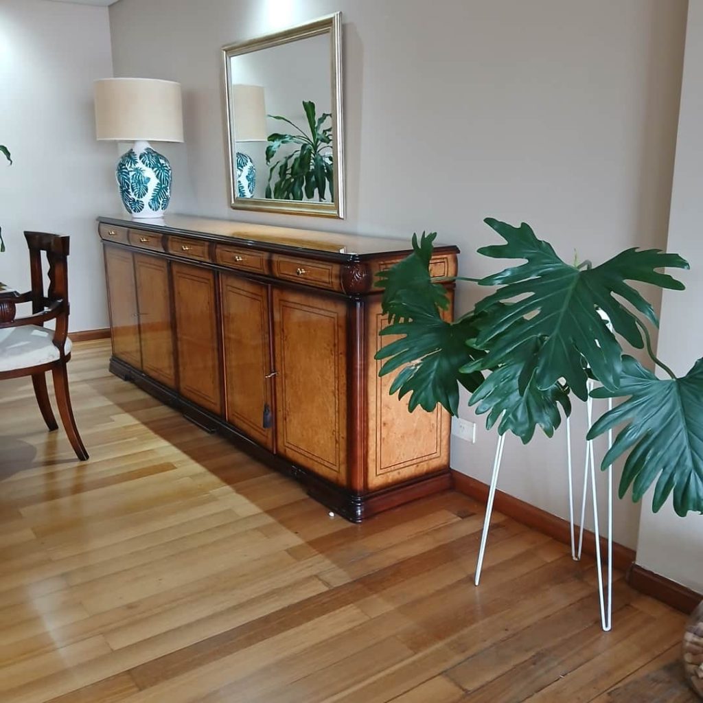 Chaise longue esterillado; sofá 2 cuerpos tapiado en color ladrillo; par sillones esquineros estilo Inglés; sillón relax; mesas auxiliares: estructura en hierro patinado y vítrea, estilo Inglés tapa redonda, de guardado 2 puertas y 2 cajones; comedor Casa Maple: mesa doble pedestal, 6 sillas y par silloncitos; vajillero Casa Maple; mueble auxiliar para TV, alzada, estantes; escritorio blanco, sillón; biblioteca 4 estantes; cajonera 4 cajones; sommier 1.40 cm; diván con colchón y almohadones; colchón 1 plaza; 3 sommier con base-Adornos y vajilla, centro con tapa cerámica frutas; cristalería, copas; espejos marco platil y marcos madera; óleo decorativo abstracto; araña bronce 6 luces; lámparas de mesa diseño, de cerámica hojas-TV Samsung; cava Bosch; microondas Atma; enseres de cocina; pequeños electrodomésticos; libros; balcón: mesa y par sillas plegables en hierro, plantas, maceteros diseño en vidrio con ruedas; artículos en mimbre; cortinas; lanas-Ropa, accesorios y más…
