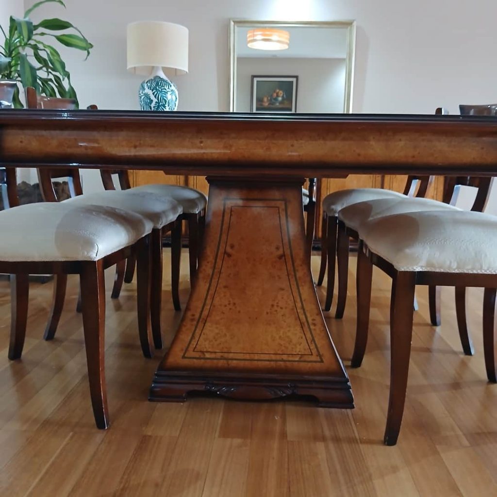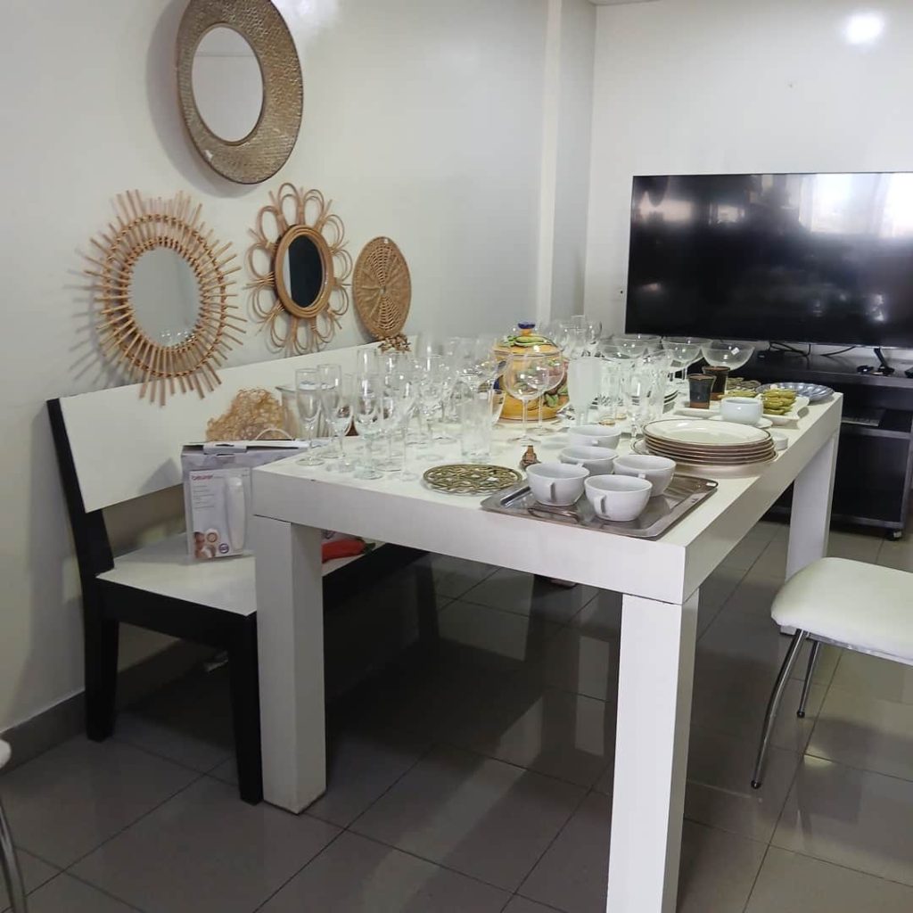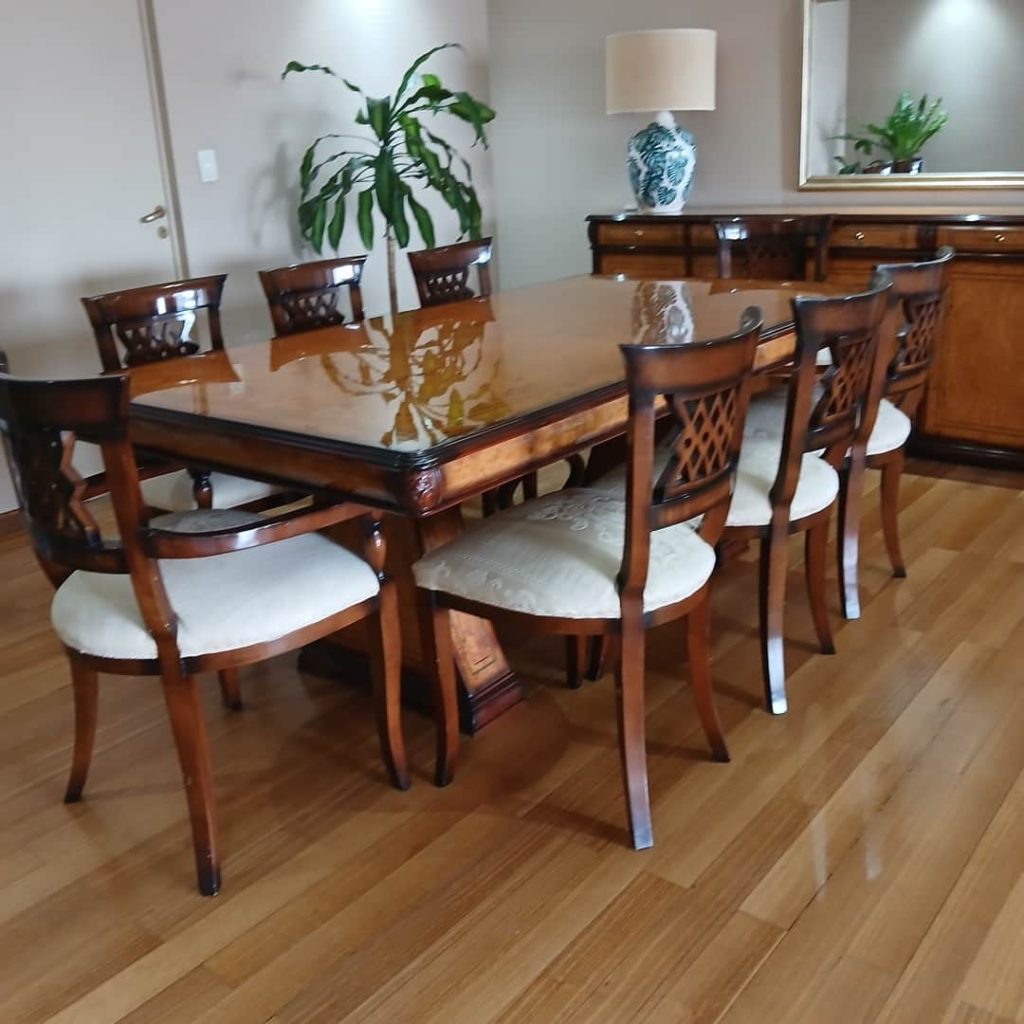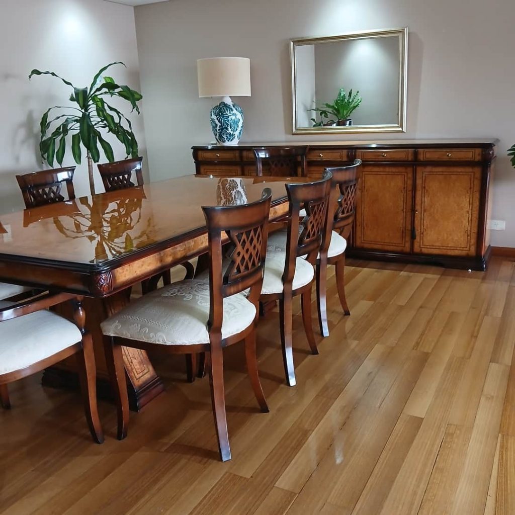 Chaise longue esterillado; sofá 2 cuerpos tapiado en color ladrillo; par sillones esquineros estilo Inglés; sillón relax; mesas auxiliares: estructura en hierro patinado y vítrea, estilo Inglés tapa redonda, de guardado 2 puertas y 2 cajones; comedor Casa Maple: mesa doble pedestal, 6 sillas y par silloncitos; vajillero Casa Maple; mueble auxiliar para TV, alzada, estantes; escritorio blanco, sillón; biblioteca 4 estantes; cajonera 4 cajones; sommier 1.40 cm; diván con colchón y almohadones; colchón 1 plaza; 3 sommier con base-Adornos y vajilla, centro con tapa cerámica frutas; cristalería, copas; espejos marco platil y marcos madera; óleo decorativo abstracto; araña bronce 6 luces; lámparas de mesa diseño, de cerámica hojas-TV Samsung; cava Bosch; microondas Atma; enseres de cocina; pequeños electrodomésticos; libros; balcón: mesa y par sillas plegables en hierro, plantas, maceteros diseño en vidrio con ruedas; artículos en mimbre; cortinas; lanas-Ropa, accesorios y más…