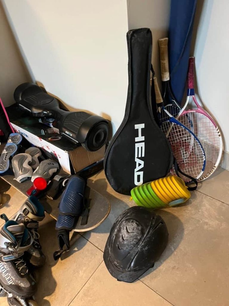 Sofá 3 cuerpos diseño, cuero, con banqueta; sofá 3 cuerpos tapizado lino, color champagne; sofá diseño 3 cuerpos con funda; sofá 2 cuerpos; mesas auxiliares: diseño laqueada, 2 planos y otras; comedor diseño: mesa entera, 8 sillas tapizadas en cuero, vajillero; consola diseño madera maciza; biblioteca diseño; mueble auxiliar bajo audio y TV Pottery barn; escritorio y silla Pottery barn, otro con alzada mas sillay otro Eugenio Aguirre; cama con colchones; respaldo cuero; camastro; mesa de luz-Adornos y vajilla, servicio de mesa Limoges; set piezas Limoges; figura Capodimonte; reloj antiguo; revistero cuero; adorno acrílico con orquídeas; candelabros; juego servicio verde; espejos; lámparas de mesa diseño; veladores; cuadro óleo firmado Arnoldo Nasi, otros decorativos; portarretratos-PC I Mac mouse y teclado a pilas; Play 4 con juegos; juegos play; Wii con los juegos; ventilador pie Liliana; calefactor; hornalla eléctrica Bluesky; nebulizador; vajilla blanca; mesa comedor tipo wengue; mesa baja con 2 bancos teca; mueble de guardado con 2 cajones, tapa volcable; hamaca Paraguaya; Robot Dash & Dot; raquetas; rollers; casco bici; maquina Canon con teleobjetivo; reproductor DVD; Handycam; palos hockey; juegos, peluches, libritos; exterior; juego de balcón en madera con almohadones; silloncito niño Pottery Barn; adornos navidad; alfombras Persa,Turca, de máquina, con pelos; cuerito; cortinas Pottery Barn, barrales, argollas, terminales cerámica, ganchos; almohadones; colcha Rapsodia-Ropa hombre, mujer y más…