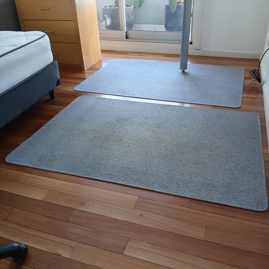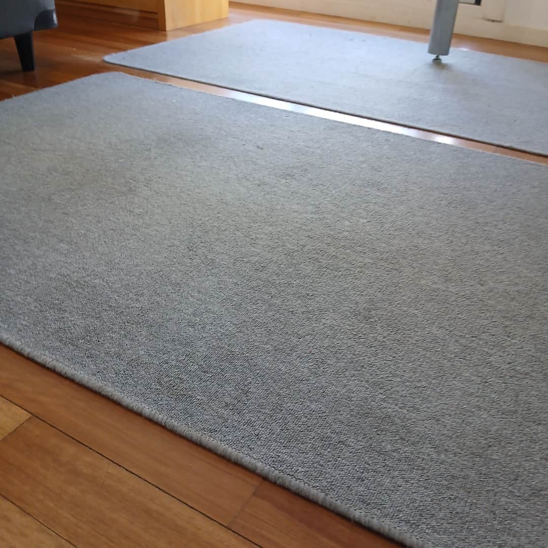2 alfombras mecánicas color grises. Con desgaste de uso (ver fotos). 150 x 100 cm.