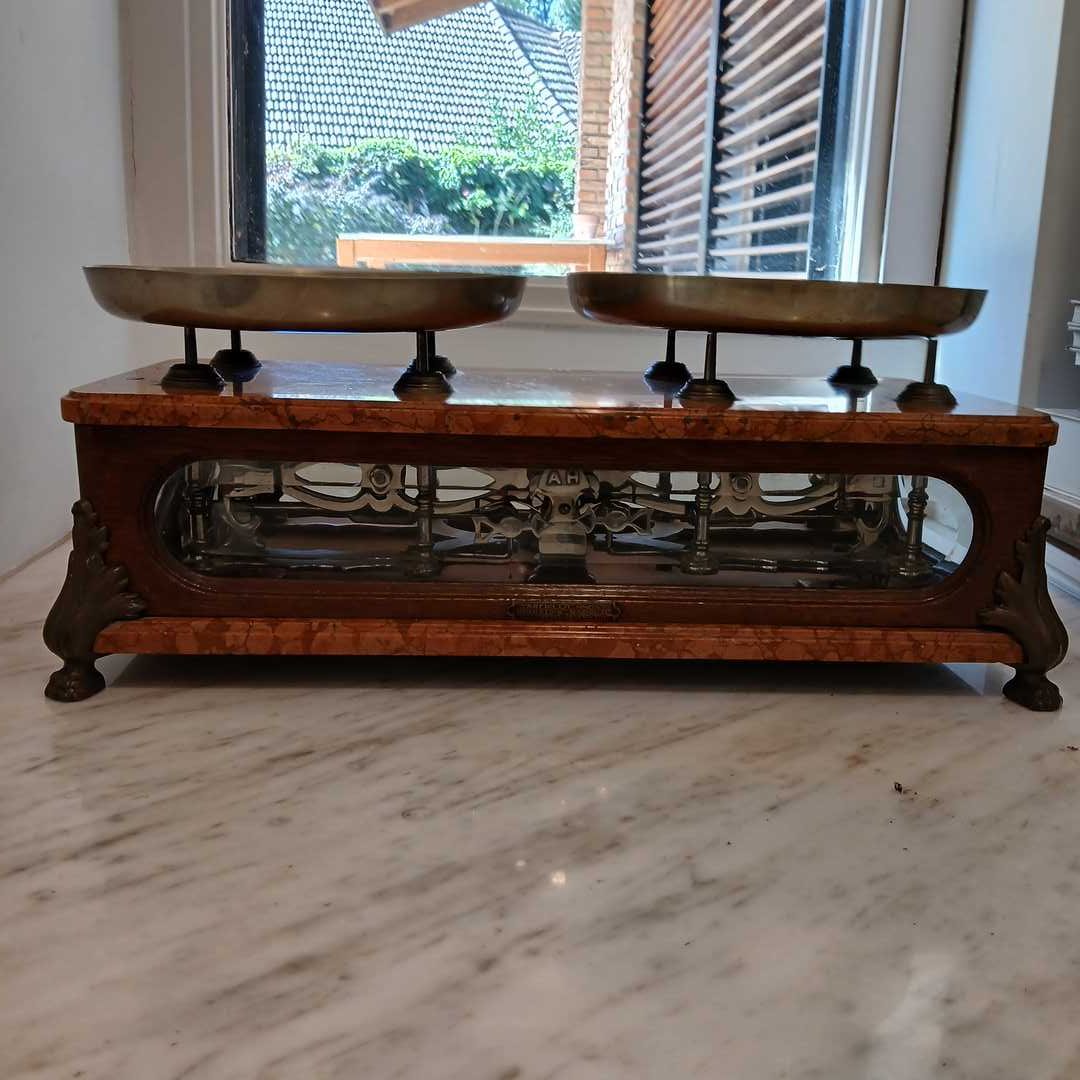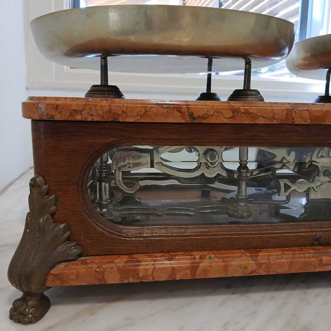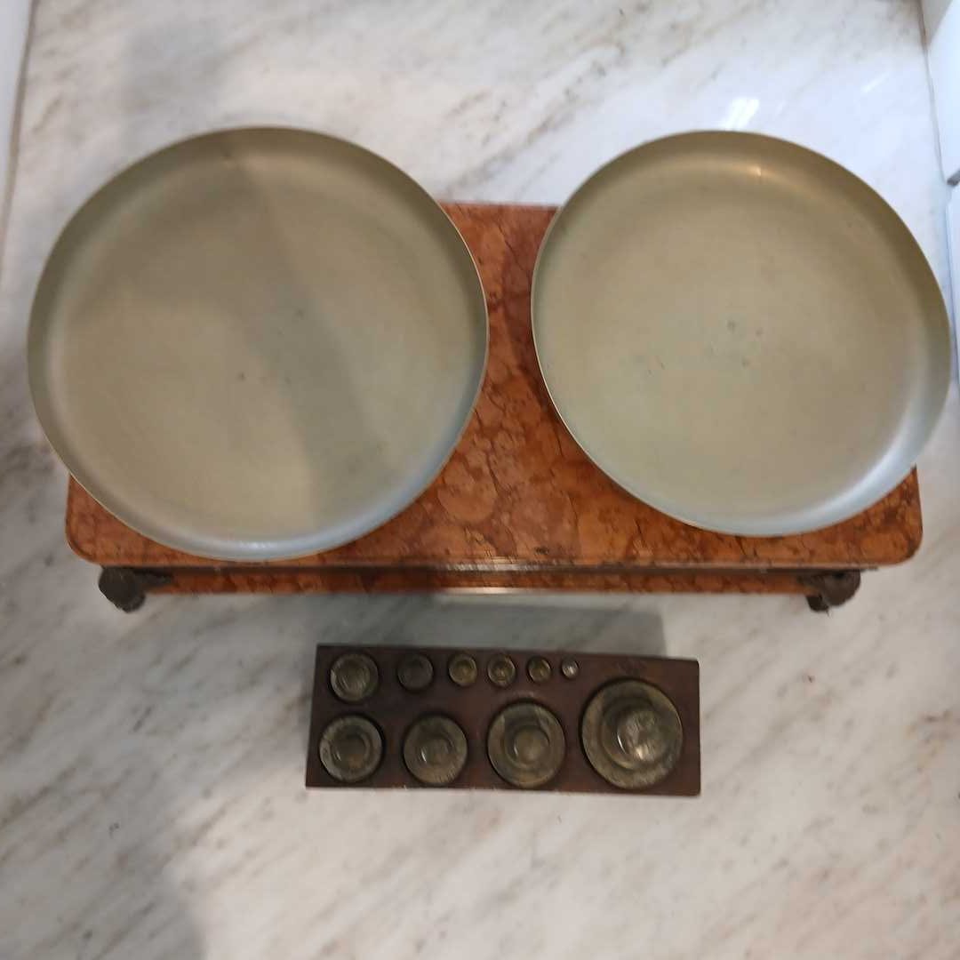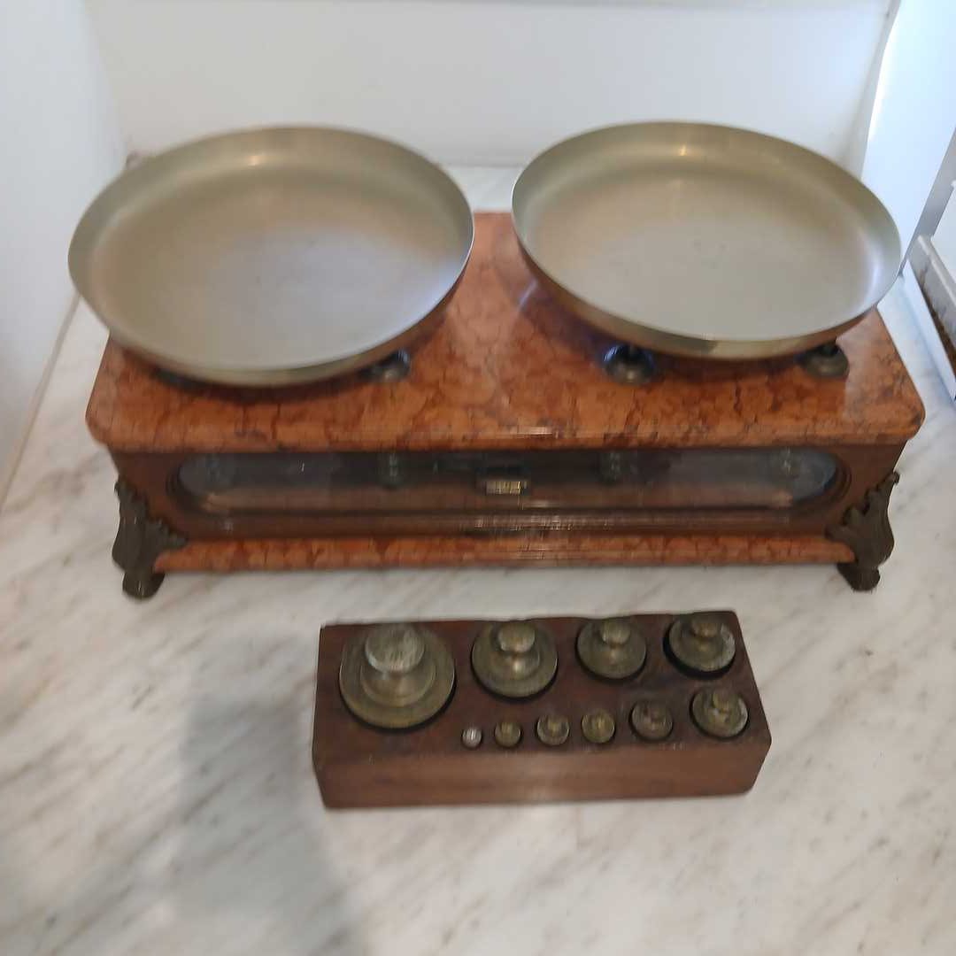 Antigua balanza con tapa de mármol 30 x 68 x 20 cm alt.
