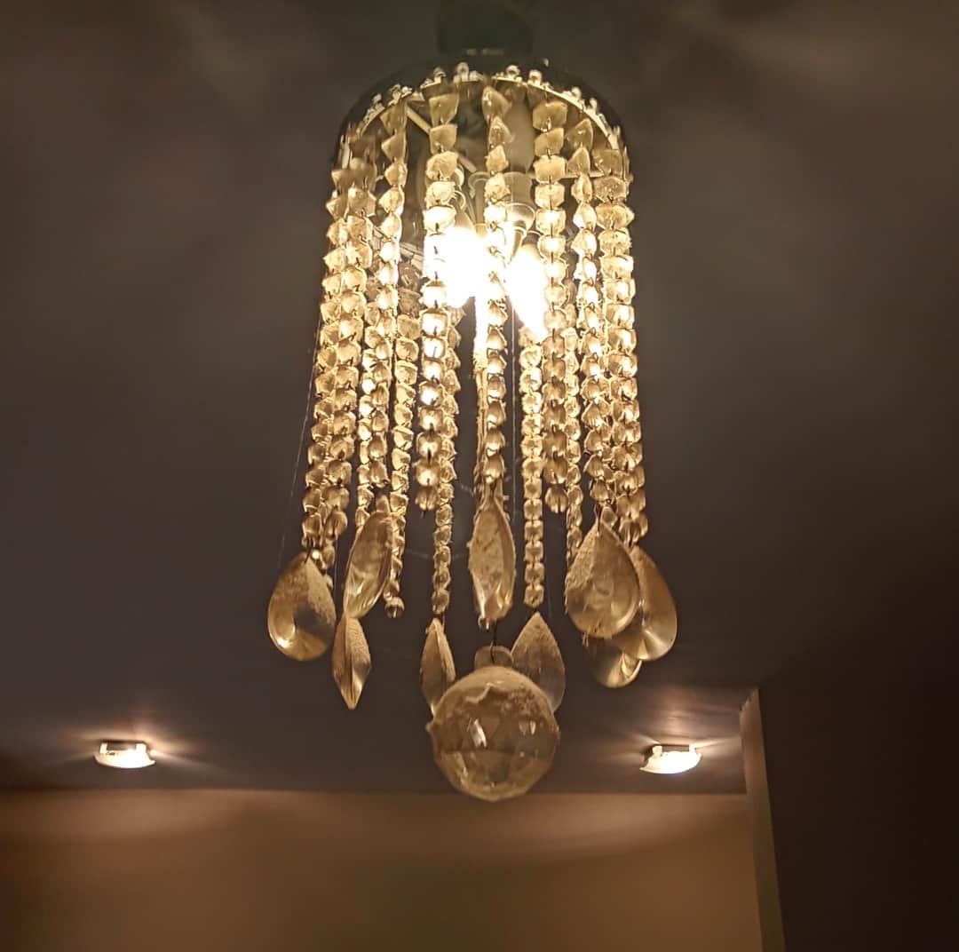 Araña colgante 3 luces, con caireles.