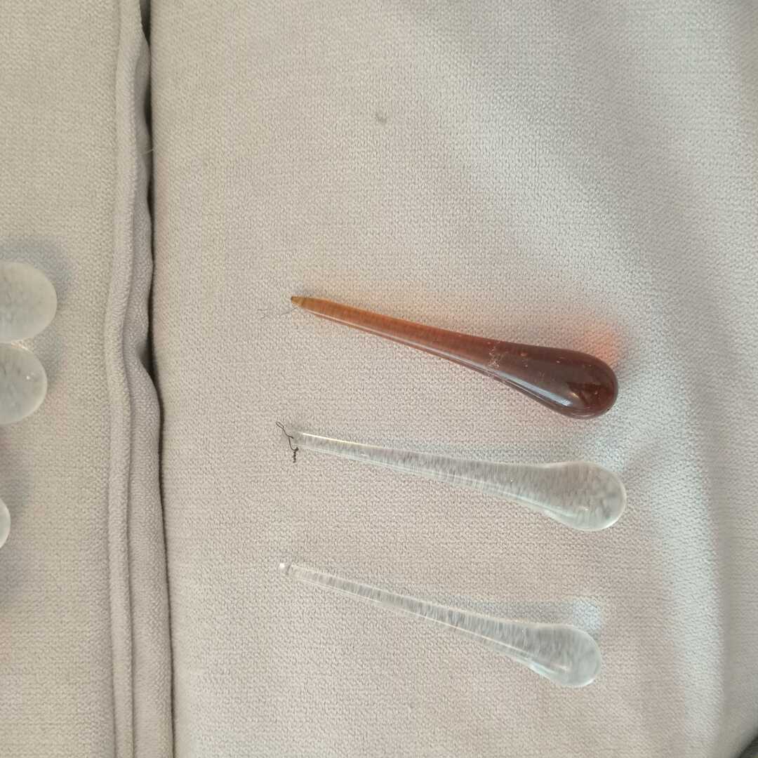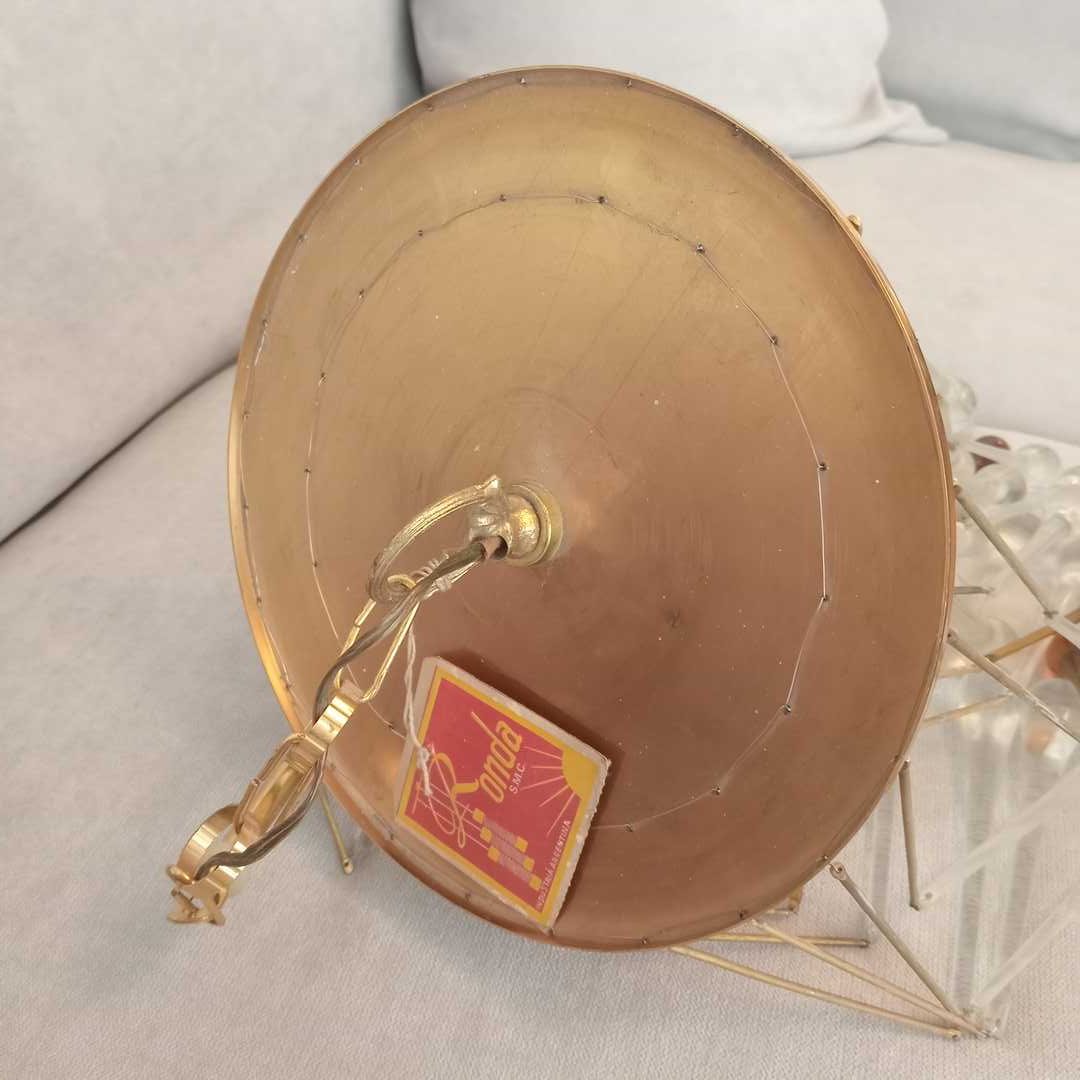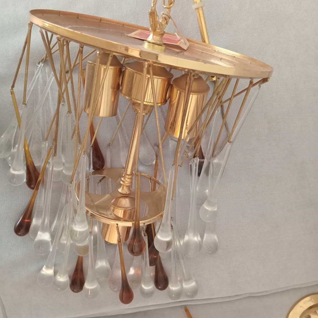 Artefacto lumínico colgante con 3 luces marca Ronda, con gotas en cristal fumé hialino. Diám disco inferior 12 cm.