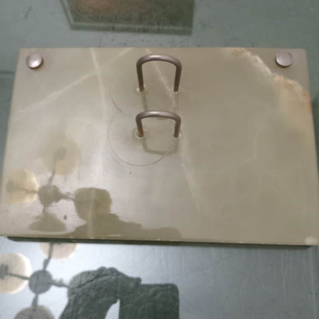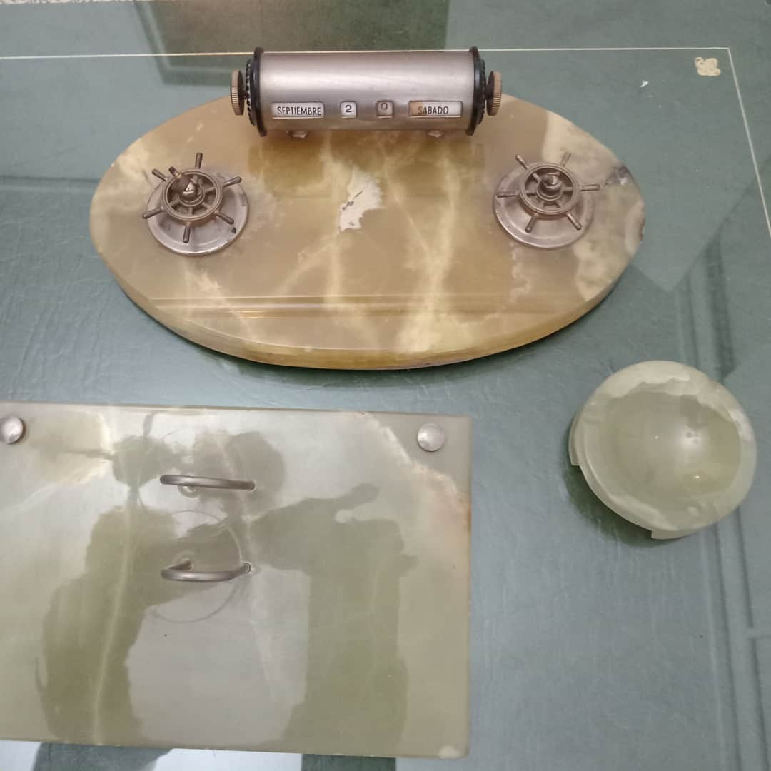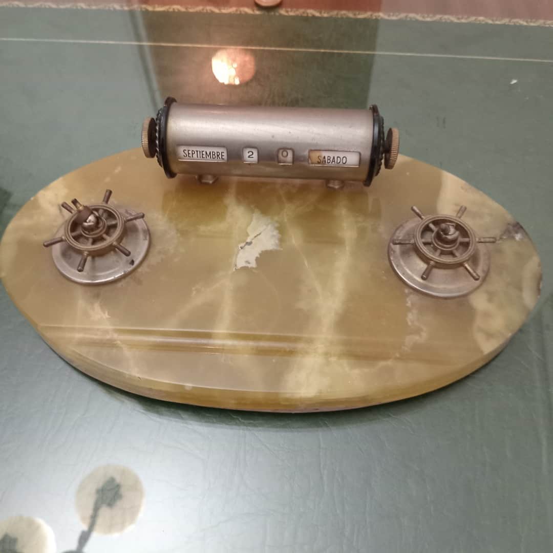 Calendario en mármol, largo 30 cm, ancho 17 cm + Placa mármol con ganchos + Cenicero en mármol.