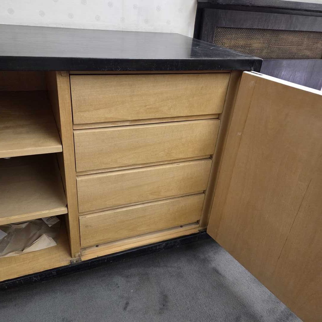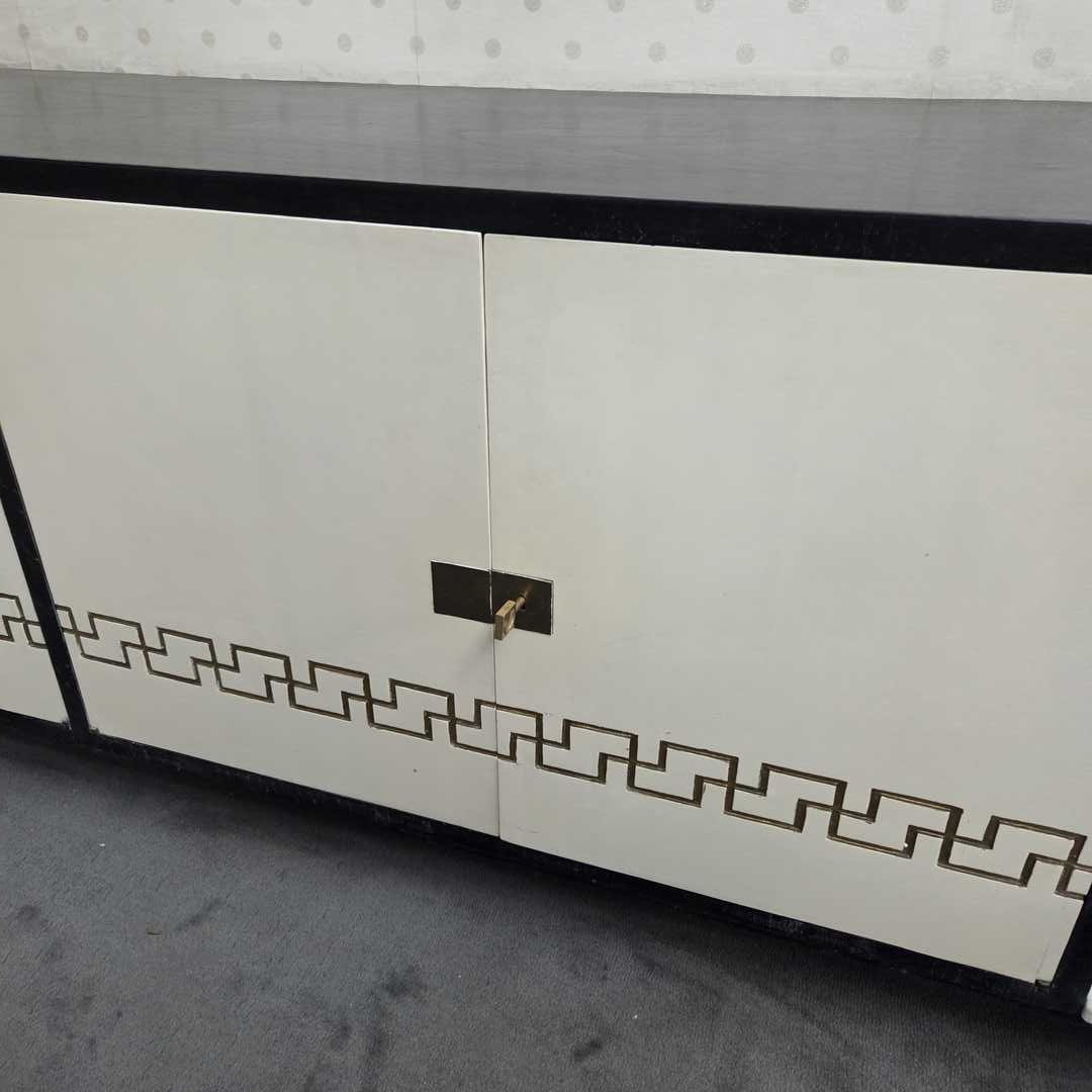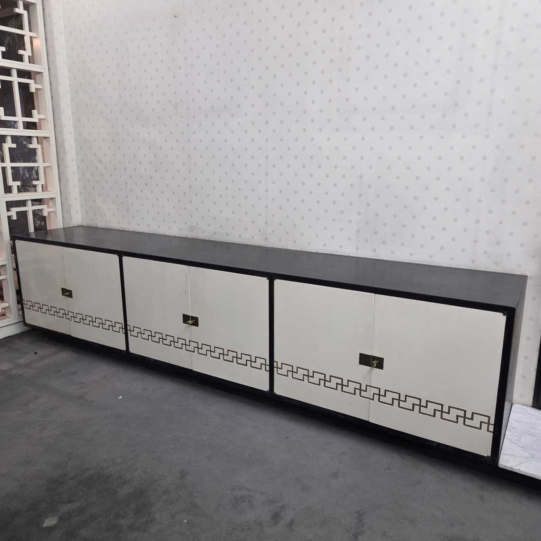 Bahiut laqueado con 6 puertas, tapa de mármol, base de madera y herrajes en bronce. 285 x 50 x 70 cm alt. Atención: baja por aéreo desde un 6to piso.