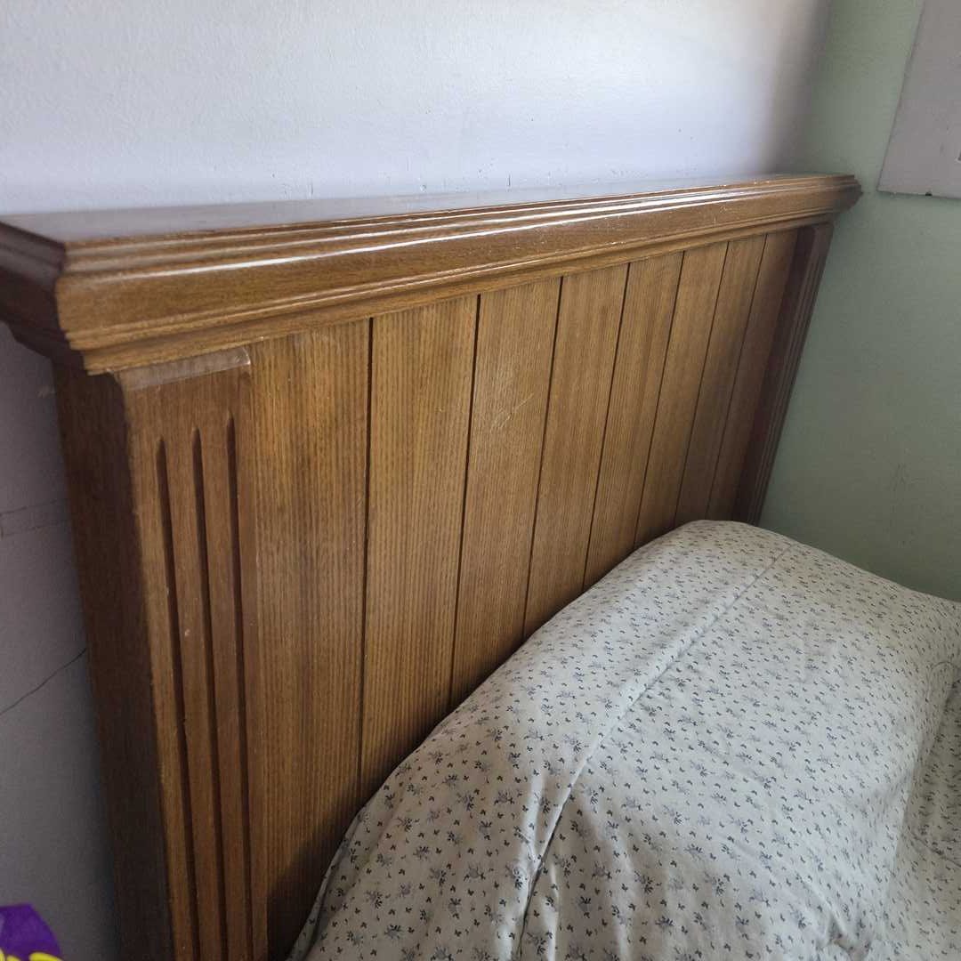Cama de 1 plaza en madera con colchón, cama catre y acolchado con flores. 200 x 105 cm. Alt respaldo 97 cm. Atención: baja 6 pisos por escalera.