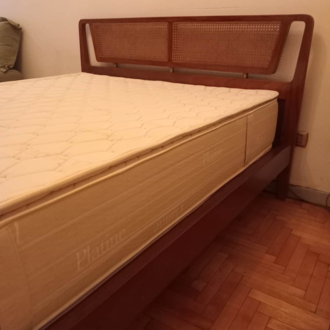 Cama 2 plazas con colchón La Cardeuse Platinum y cabecera y piecera esterilladas 140 x 190 cm.
