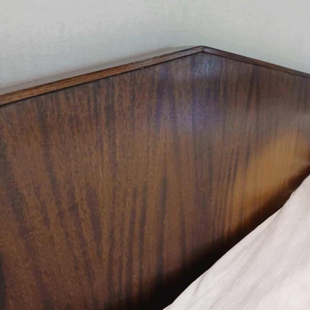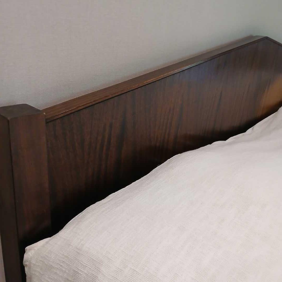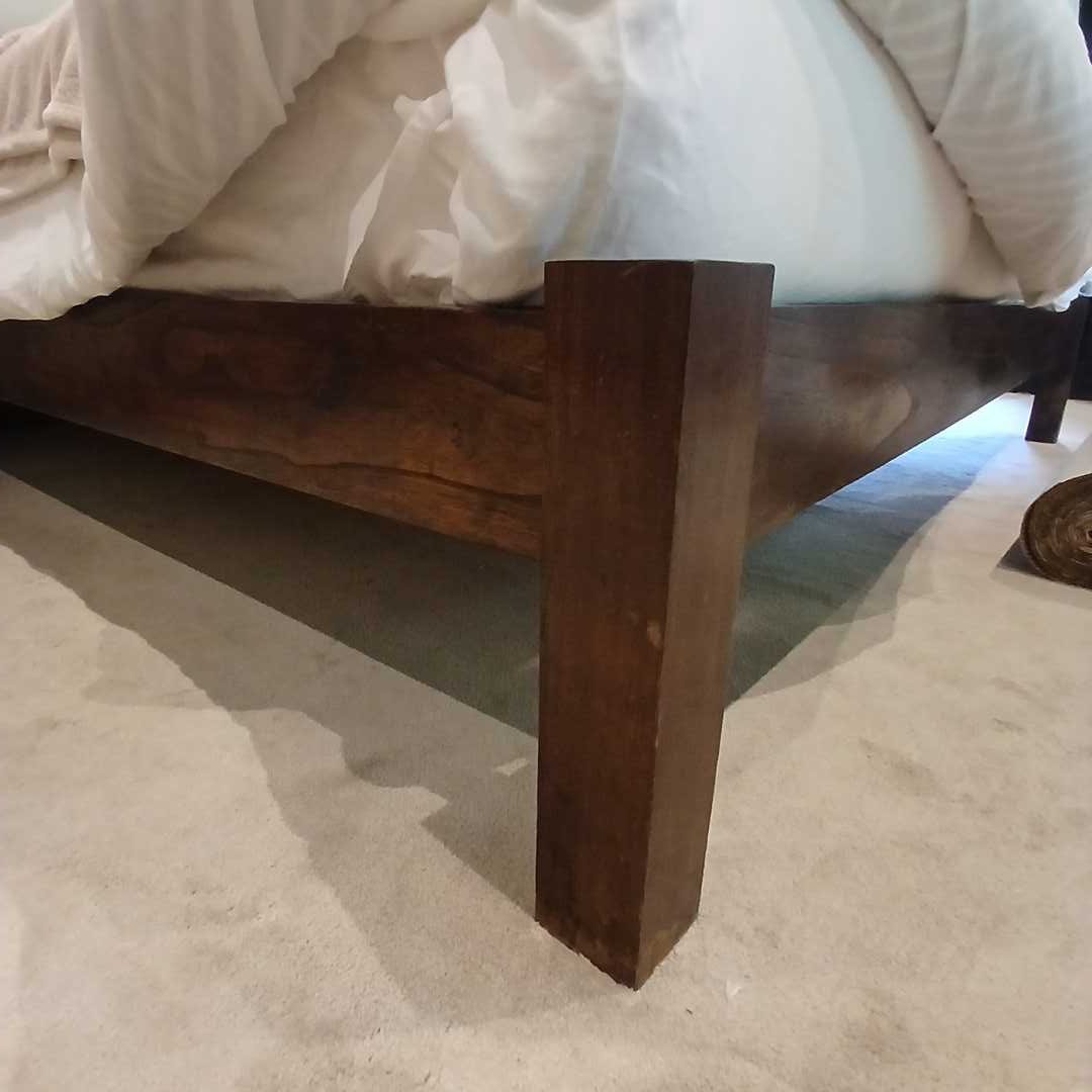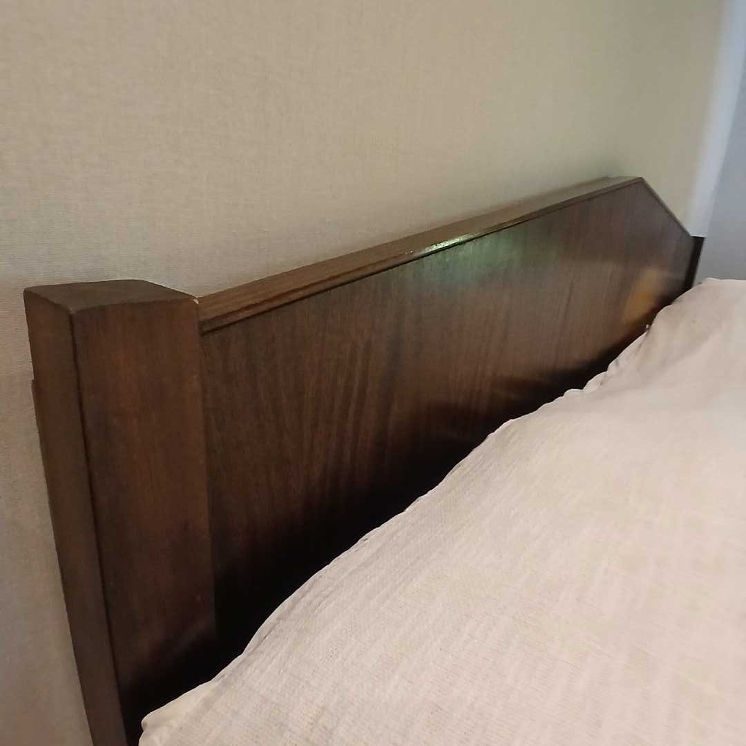 Cama súper king, sin colchón. Con respaldo geométrico en madera maciza 220 x 215 cm. Alt respaldo 100 cm. Retiro el viernes 20/3 a las 10 hs por San Isidro.