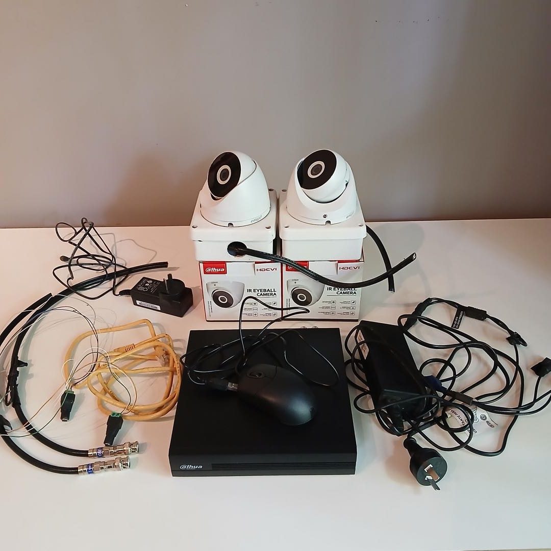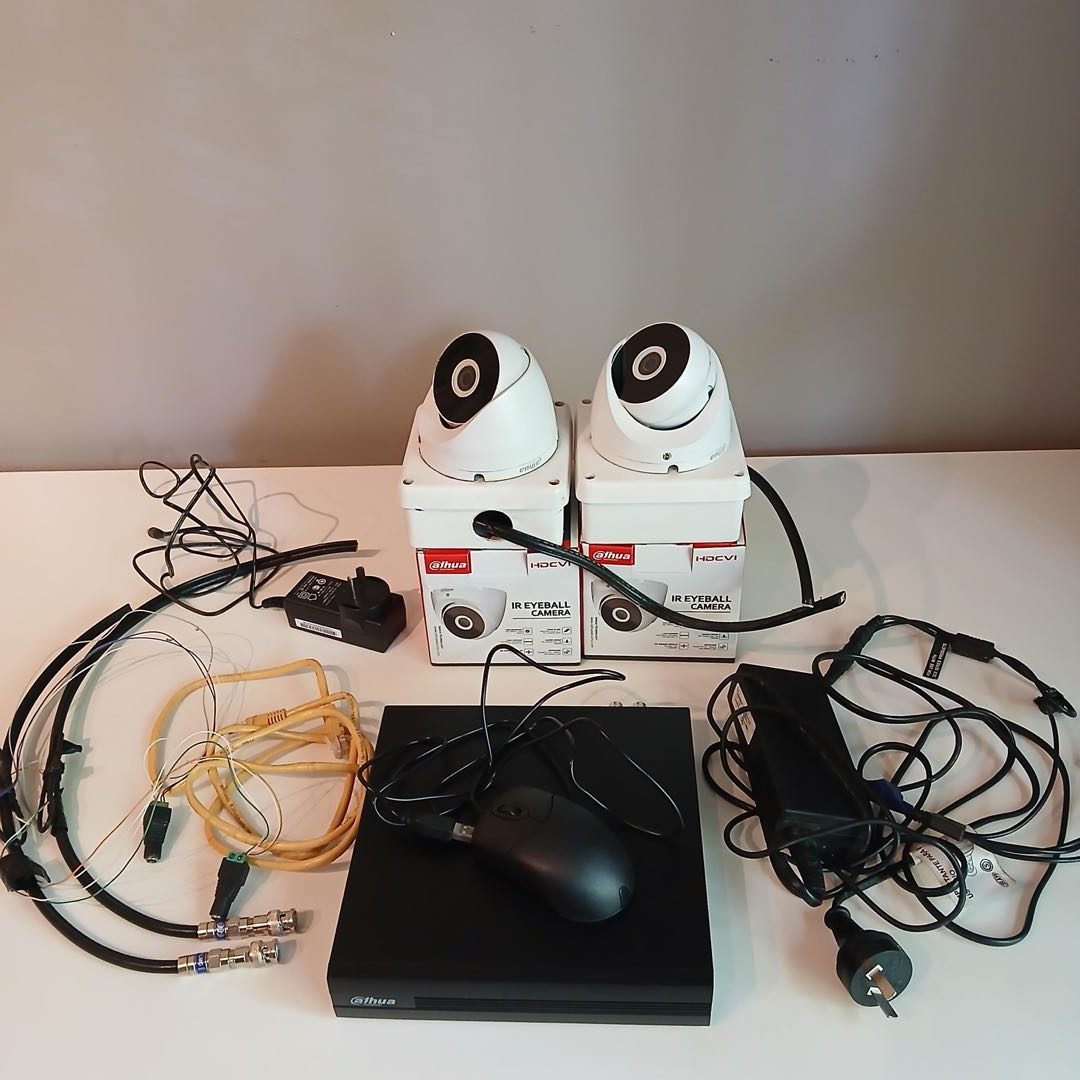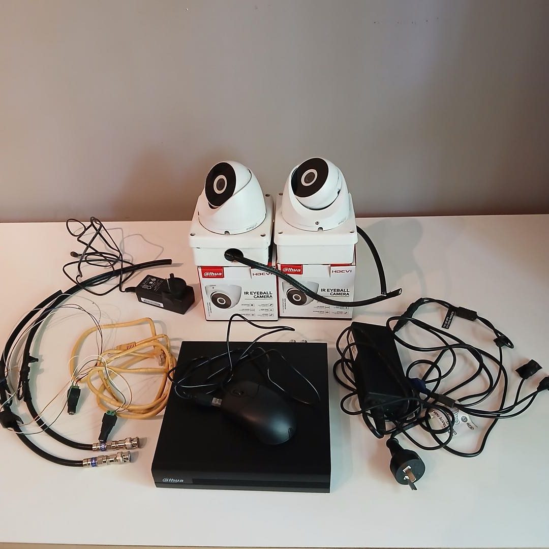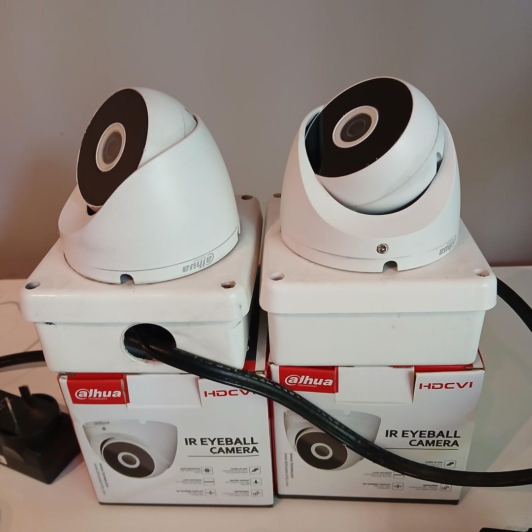 2 cámaras con modem y sus cables. Sistema completo de cámaras de seguridad.