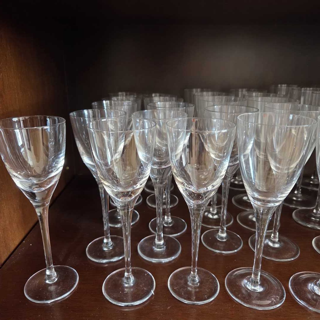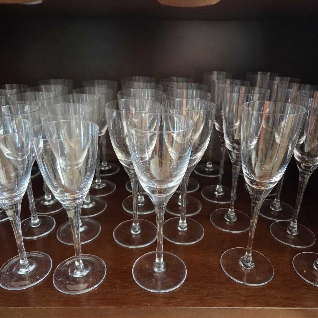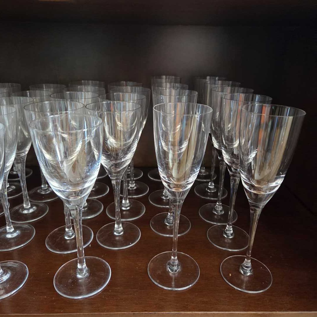 Lote de 39 copas de diferentes medidas y diseños. Champagne, vino tinto y blanco y agua.