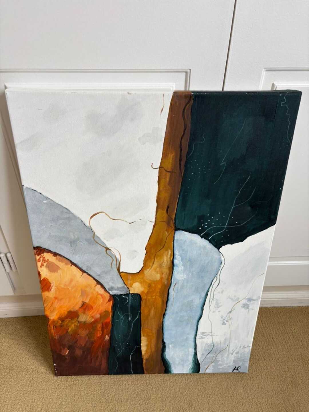 Cuadro «Abstracto» en color mostaza, gris, blanco. 65 cm x 50 cm