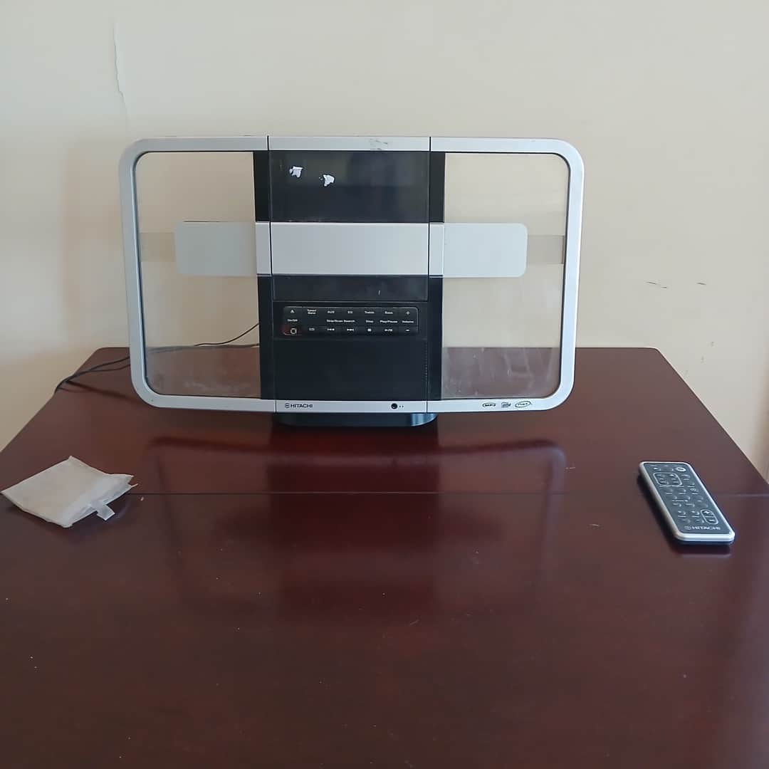 Equipo de música Hitachi con control remoto. Con faltante (ver foto).