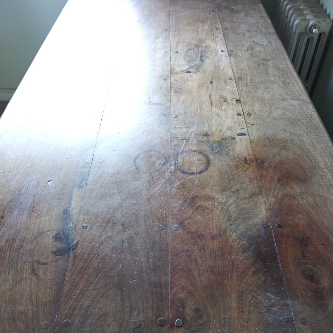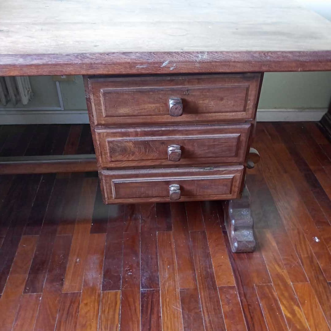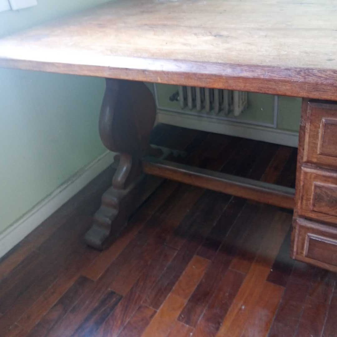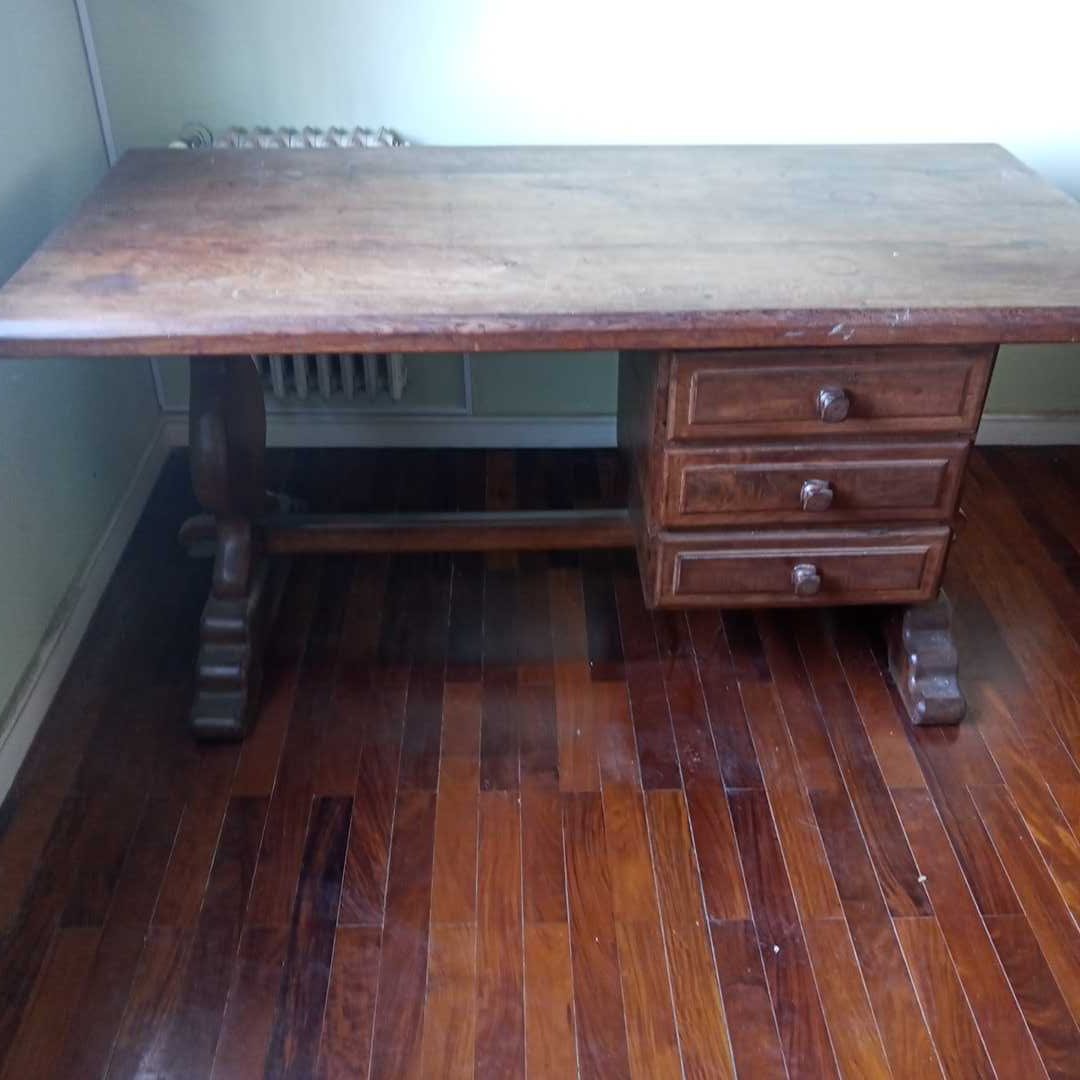 Escritorio en algarrobo con 3 cajones. Tapa con detalle en el lustre (ver fotos). 160 x 80 cm.