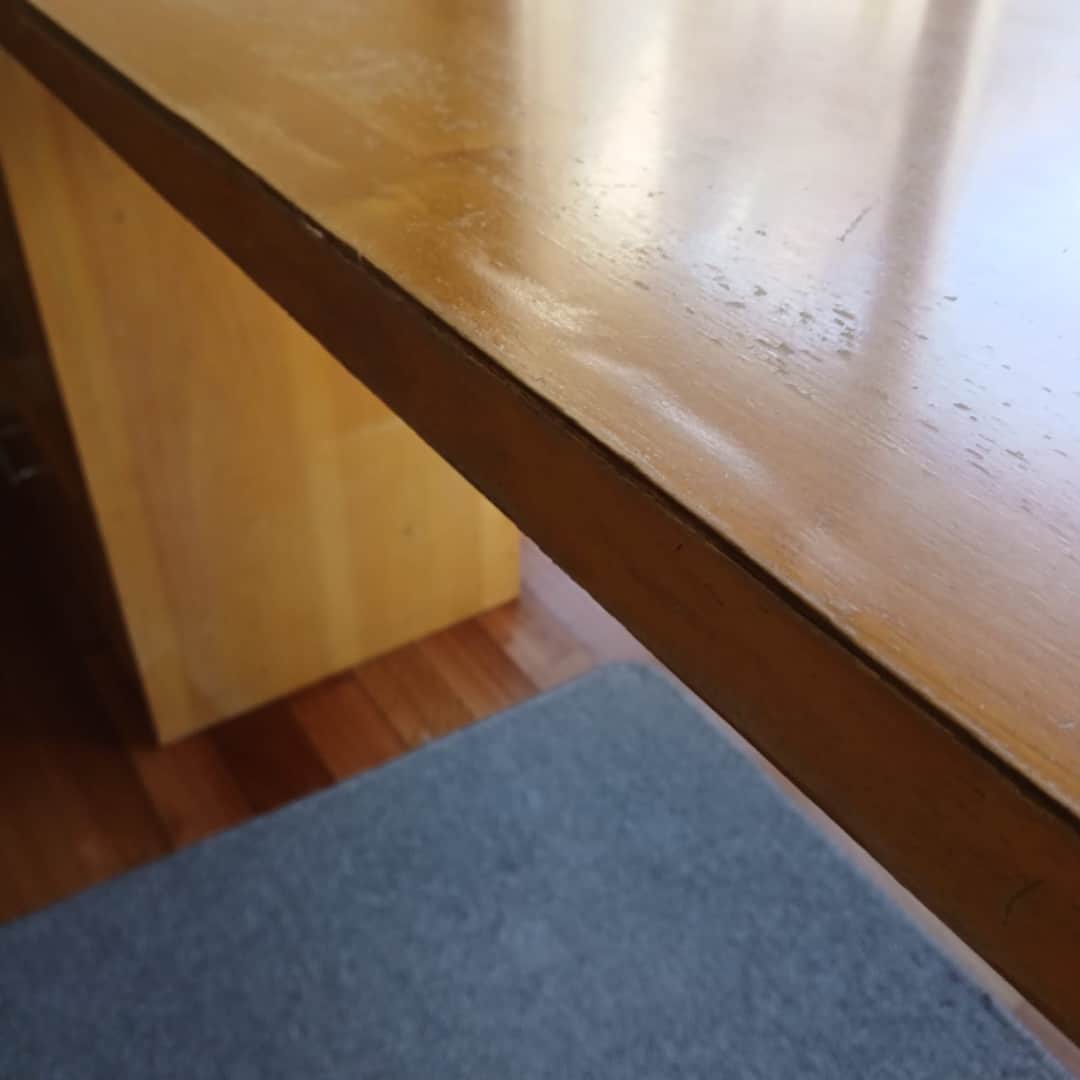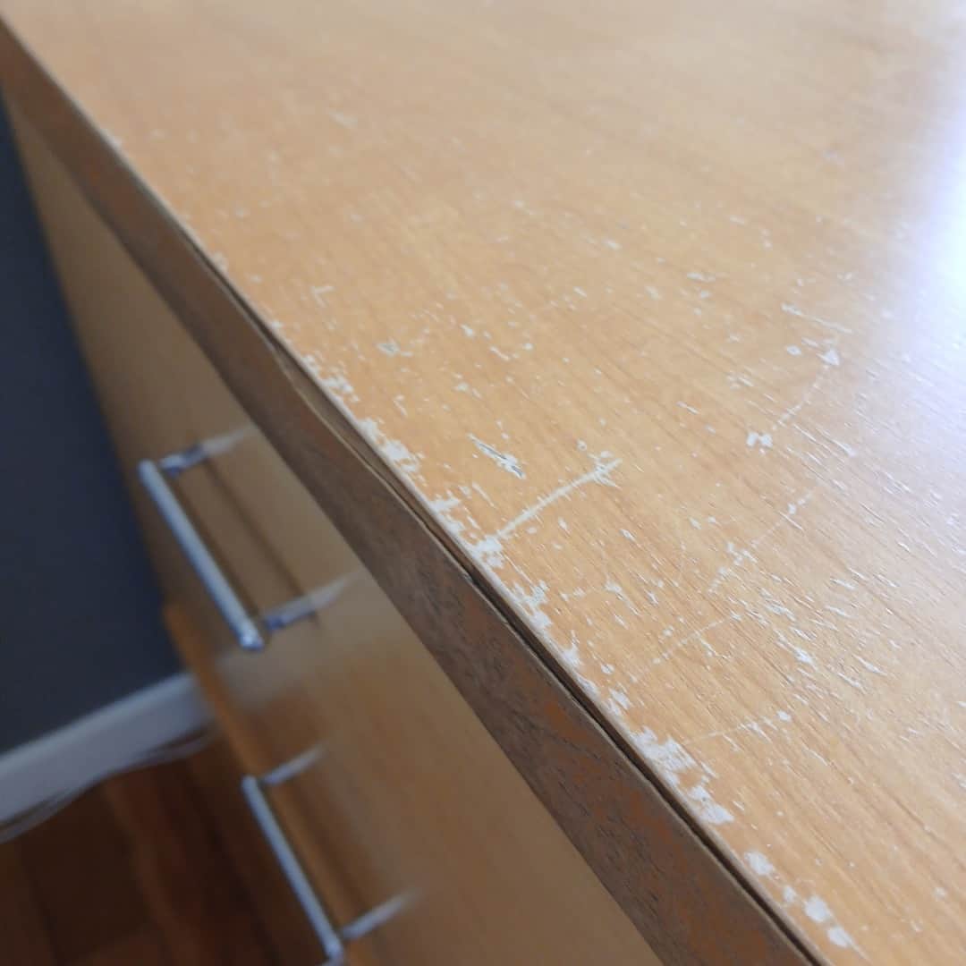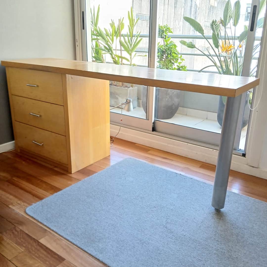 Escritorio de diseño con tapa en madera y estructura cromada 3 cajones con desgastes. 185 x 46 x 77 cm.
