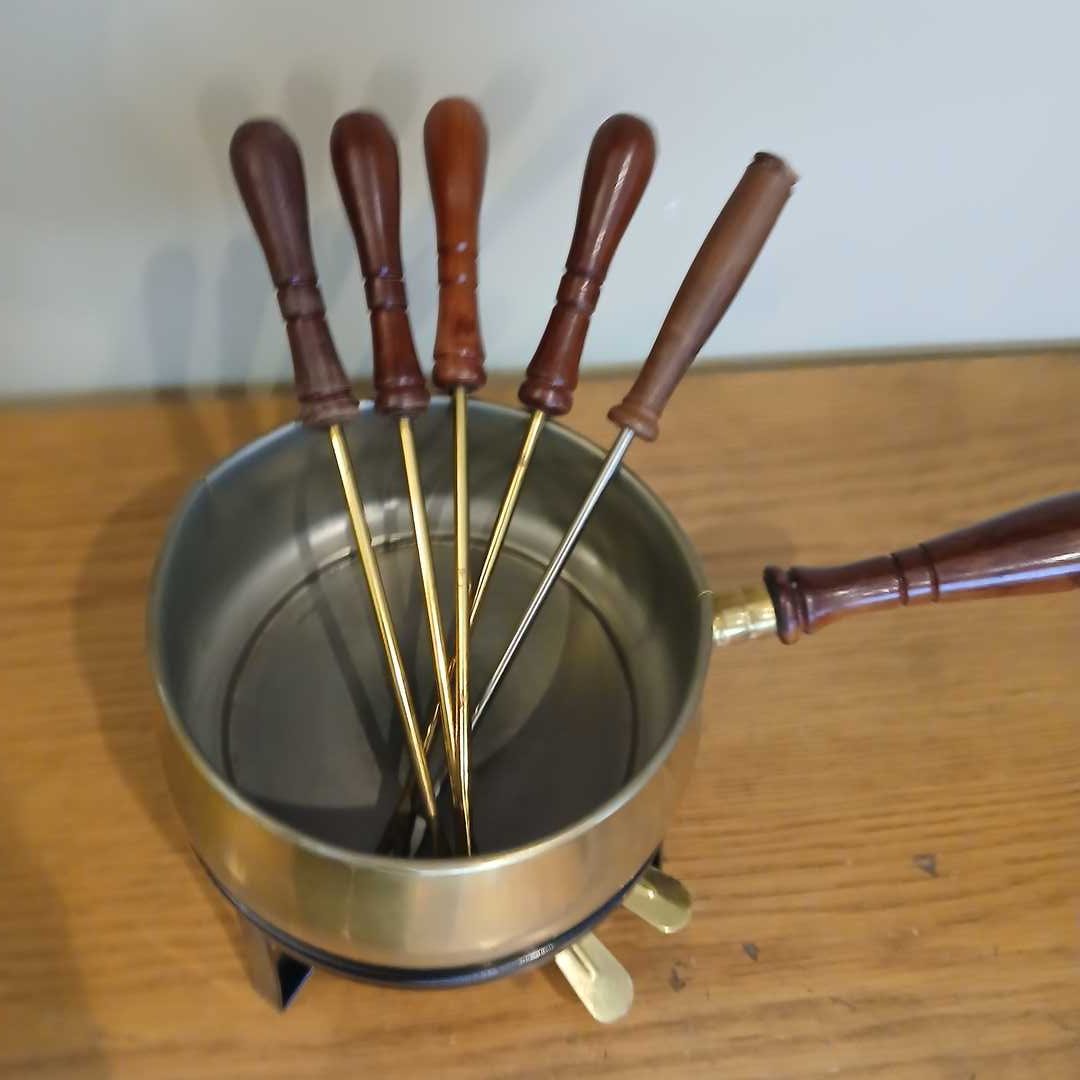 Fondue en bronce con 5 pinchos. Diám 16 cm