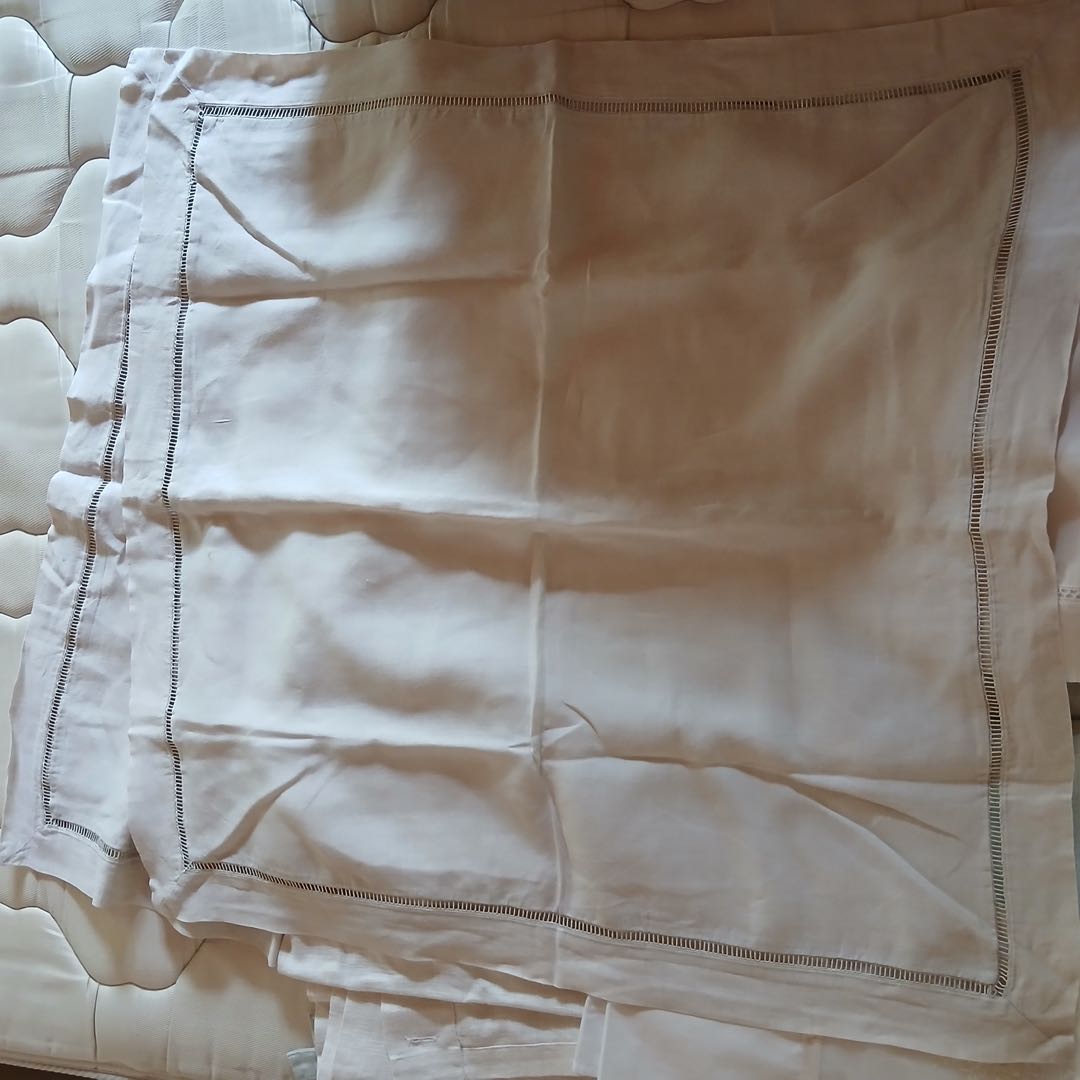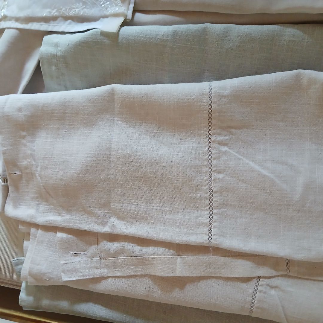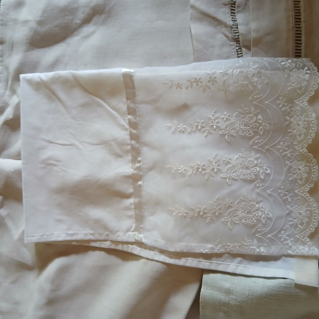 Par Fundas de lino 60 x 60 + Cortina de baño de con pequeño detalle + Par fundas algodón.