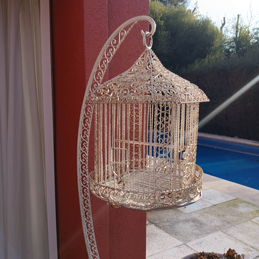 Jaula antigua en hierro con detalles. Alto 165 cm.