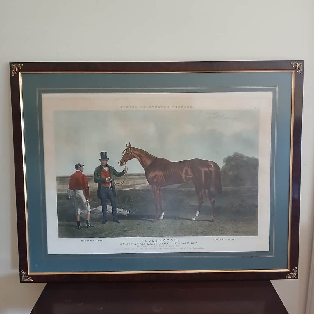 Lámina “Caballo” enmarcada en madera con detalles en bronce. Medida sin marco 90 x 68 cm.
