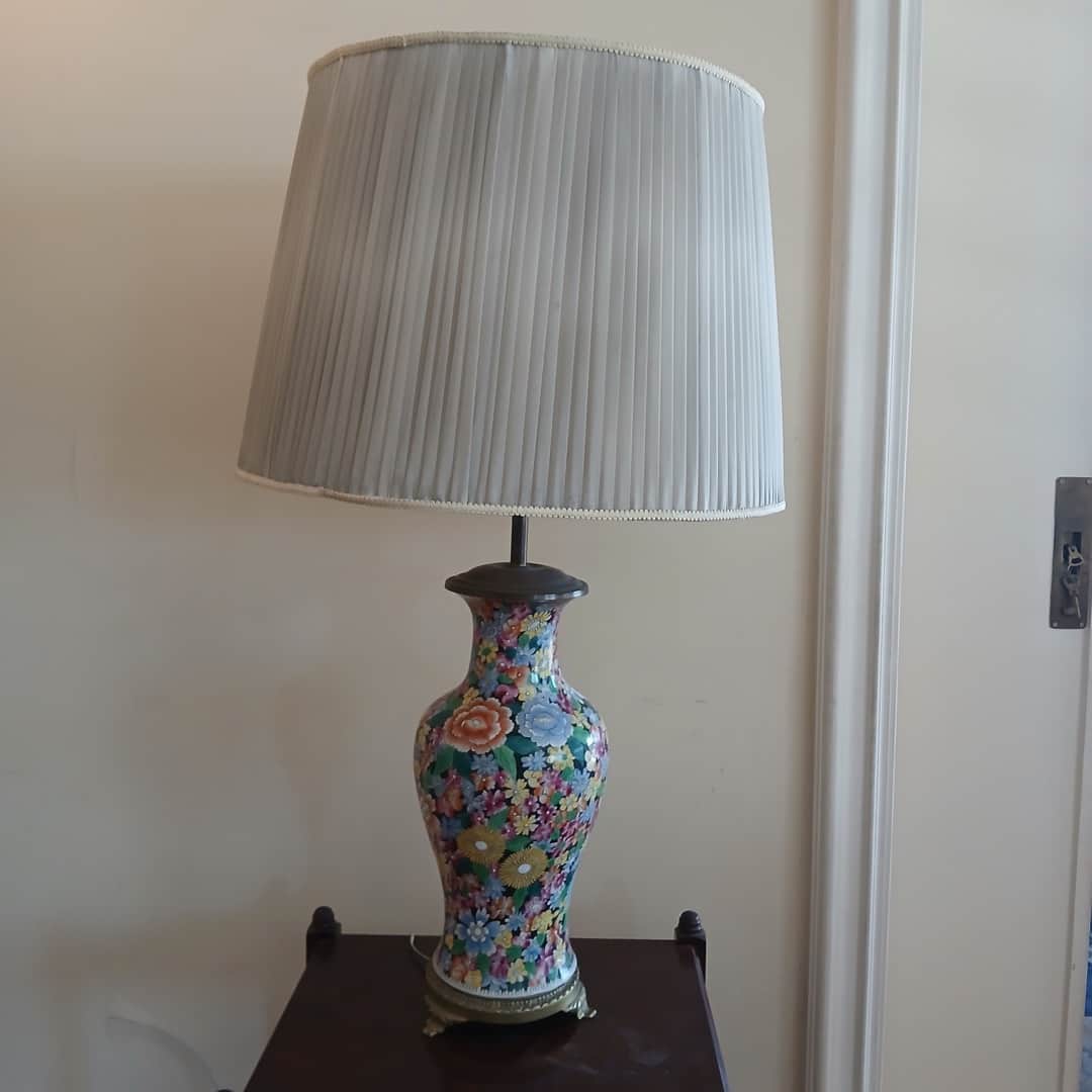 Lámpara estilo oriental con base de bronce y motivos florales. Alt sin pantalla 44 cm