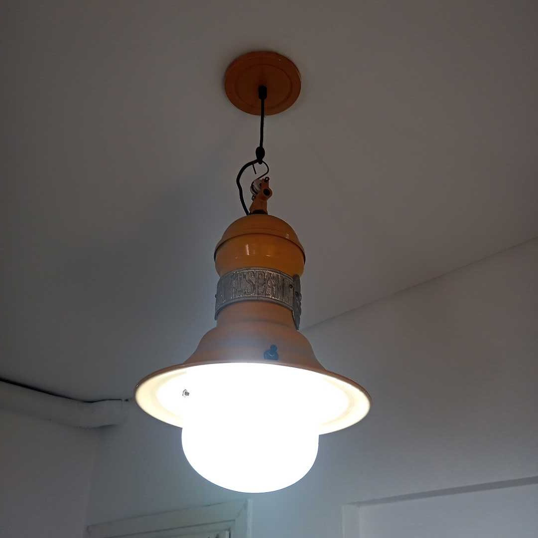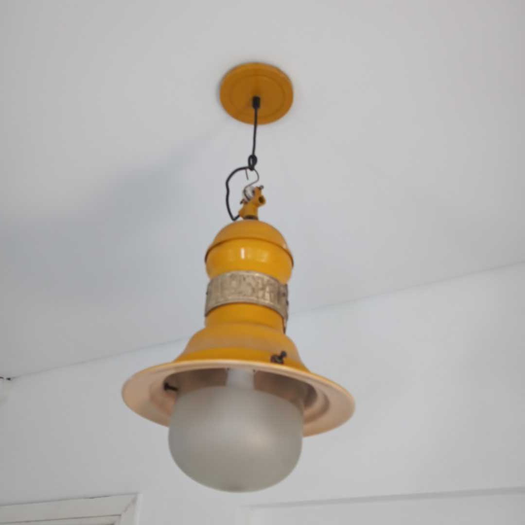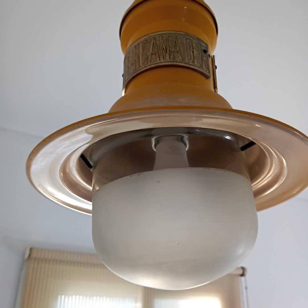 Lámpara galponera color amarillo. Alt 45 cm.