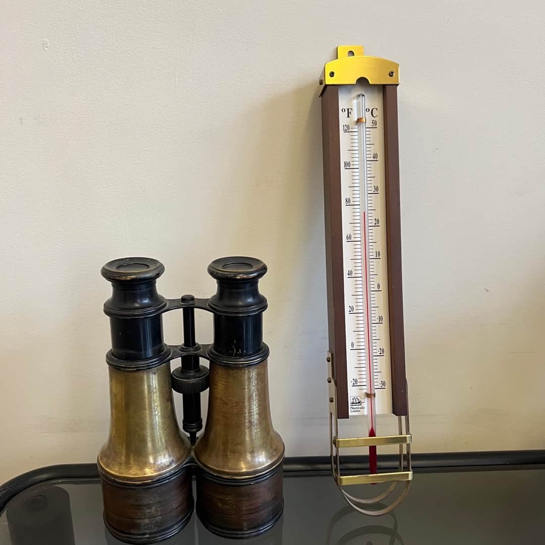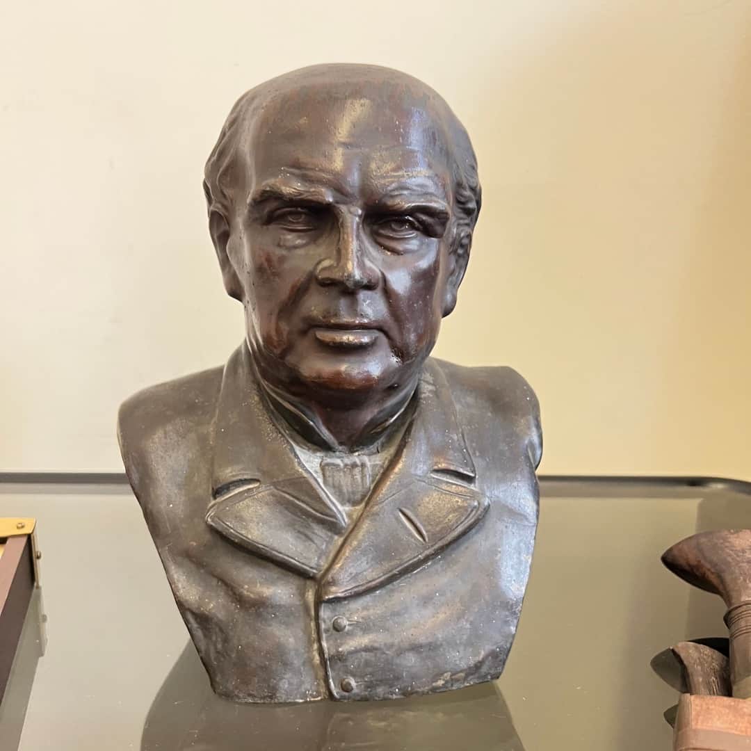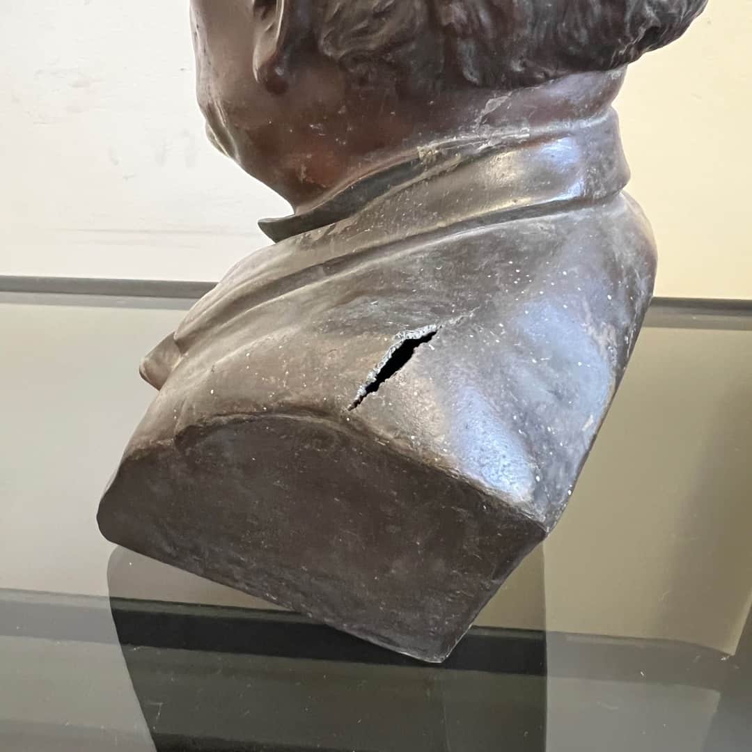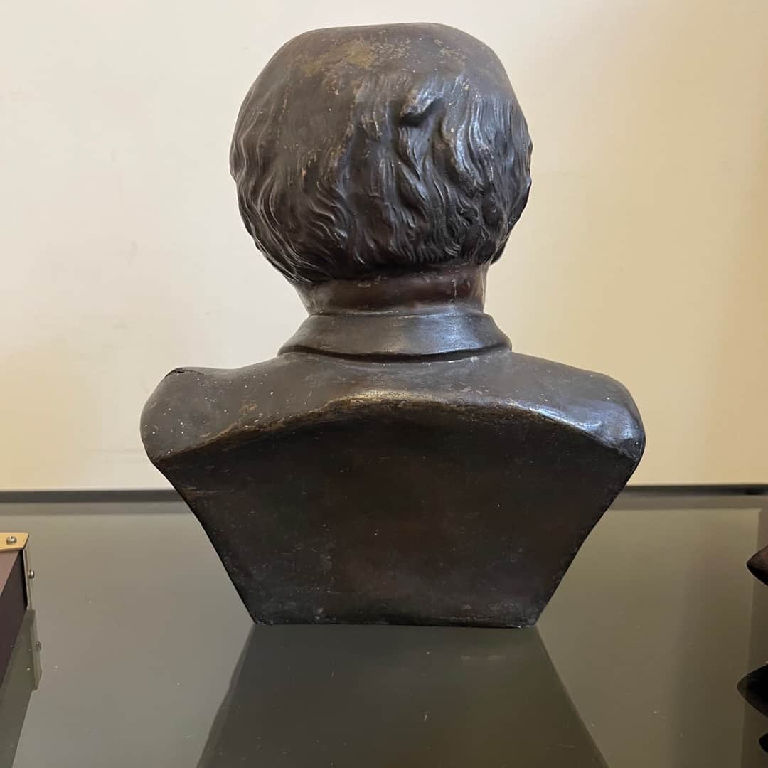 Busto Sarmiento Petit bronce, con averías (ver fotos) Alt 23 cm + Binoculares en metal y bronce + Réplica de arma 35 cm + Termómetro 32 cm.