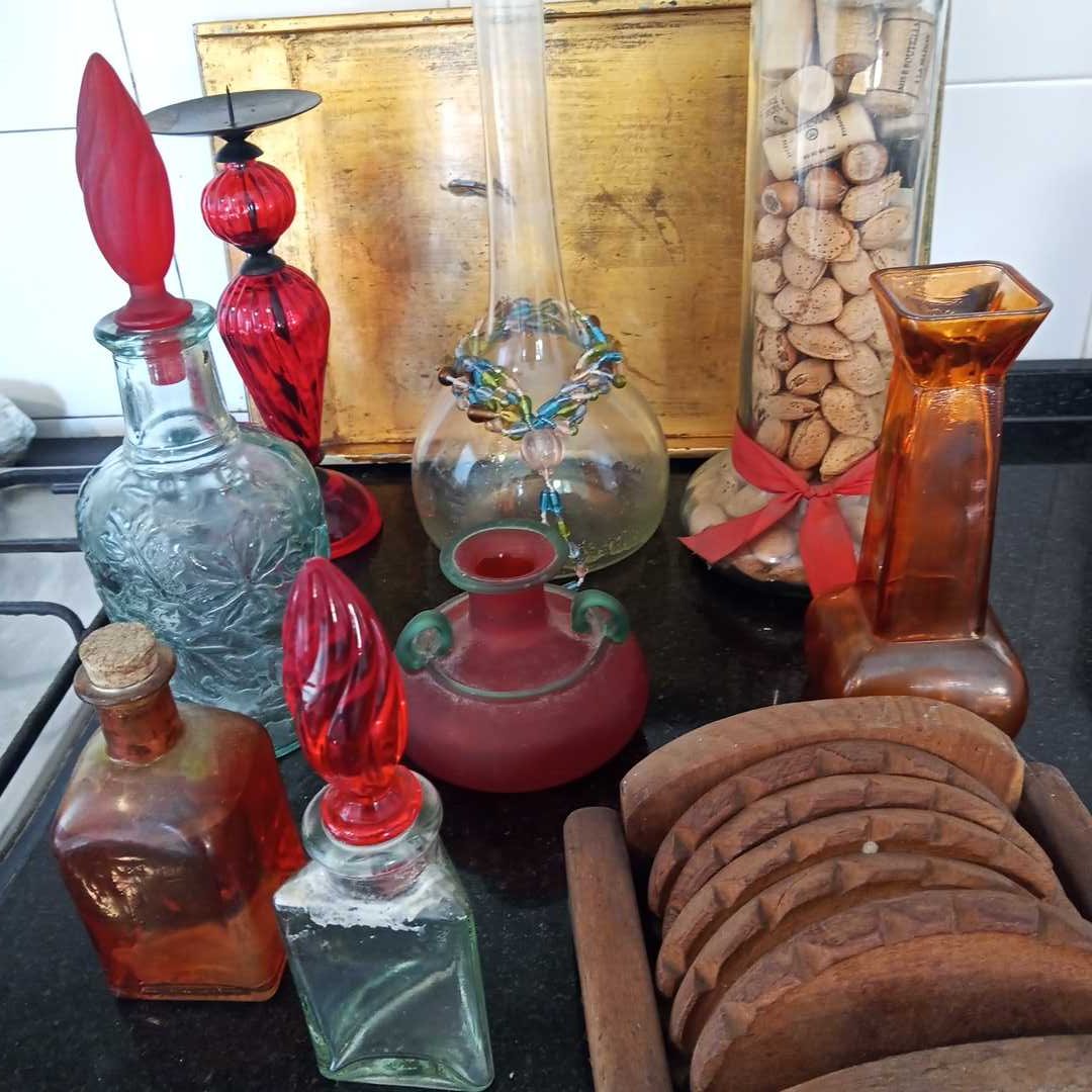 8 productos. Frascos, porta velas, porta empanadas. Alt frasco con corchos 36 cm.