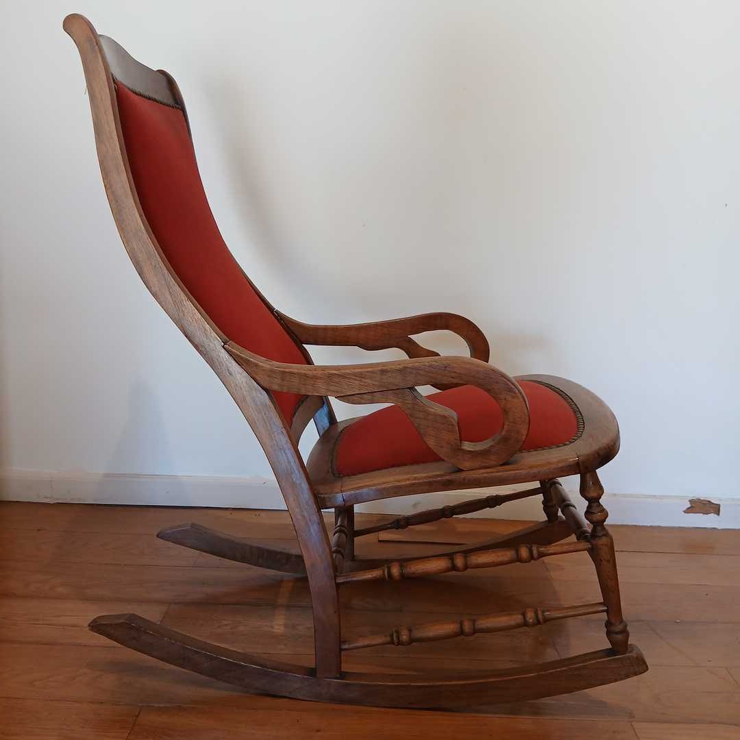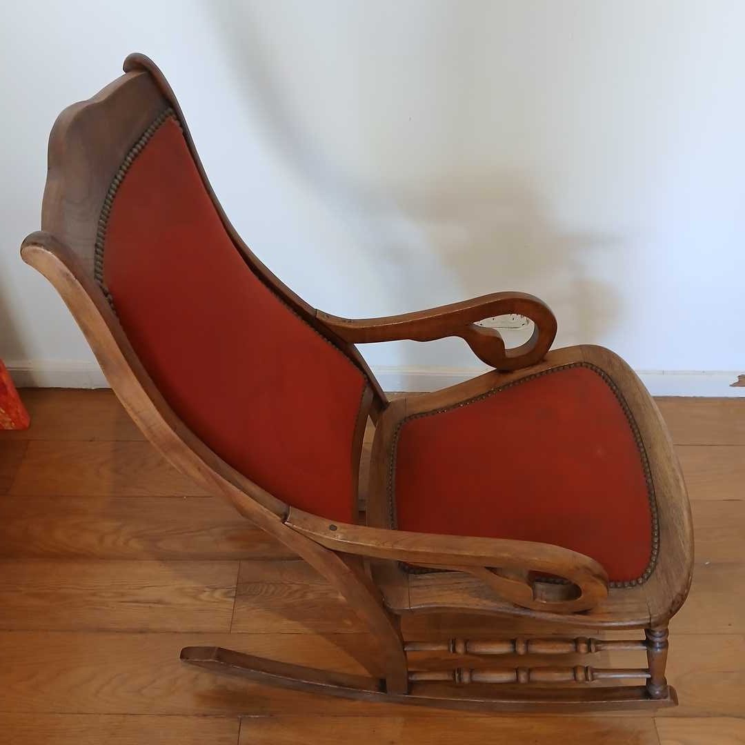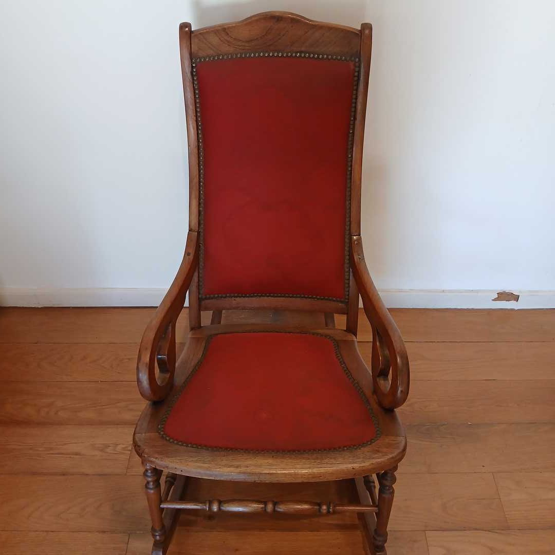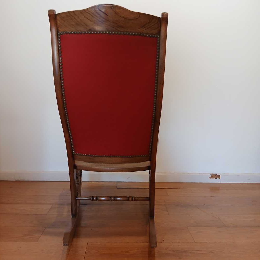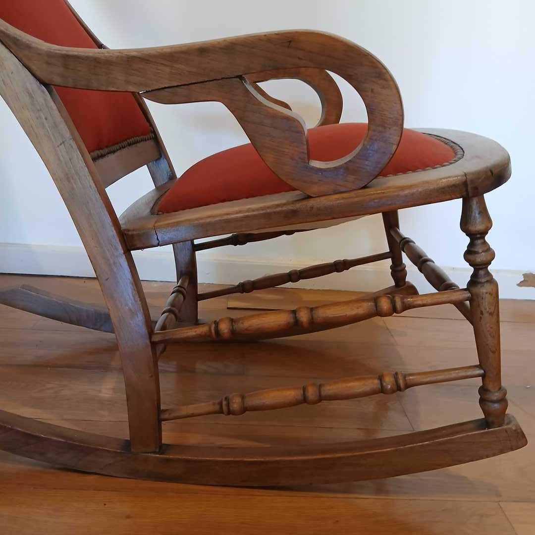 Mecedora en roble, con detalles. Alt total 100 cm. Frente 55 cm.