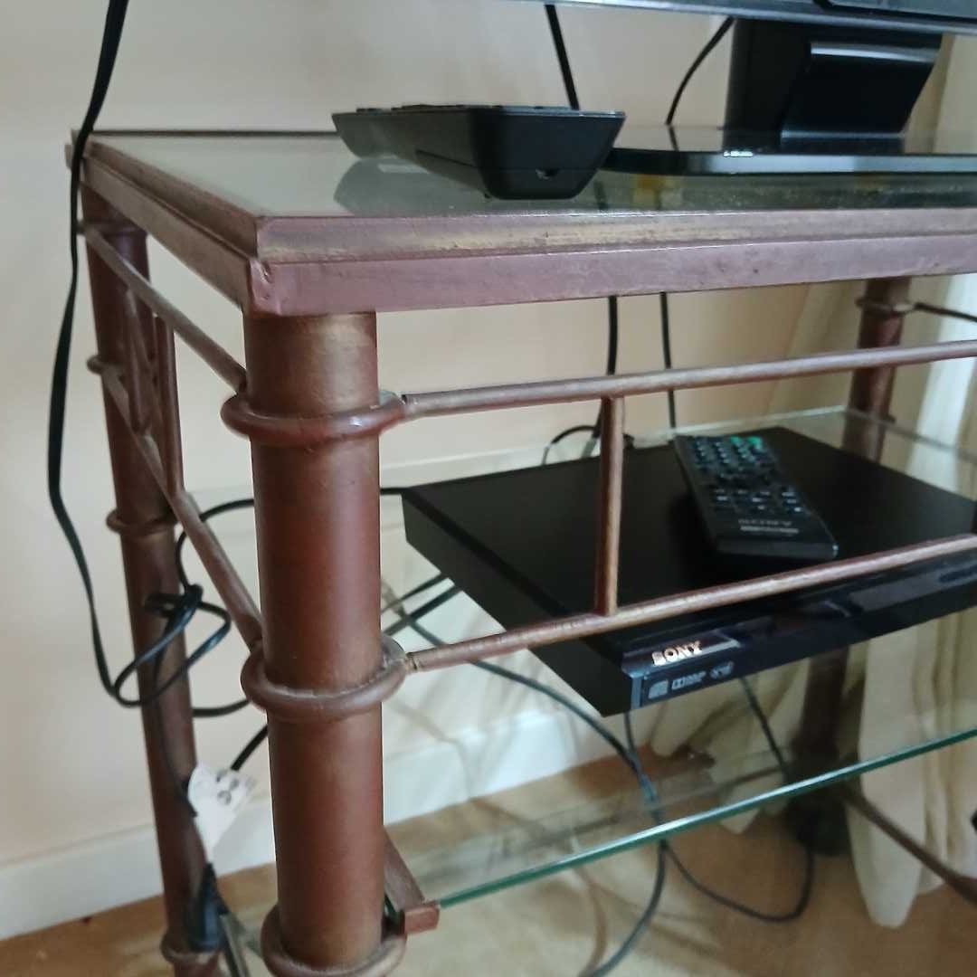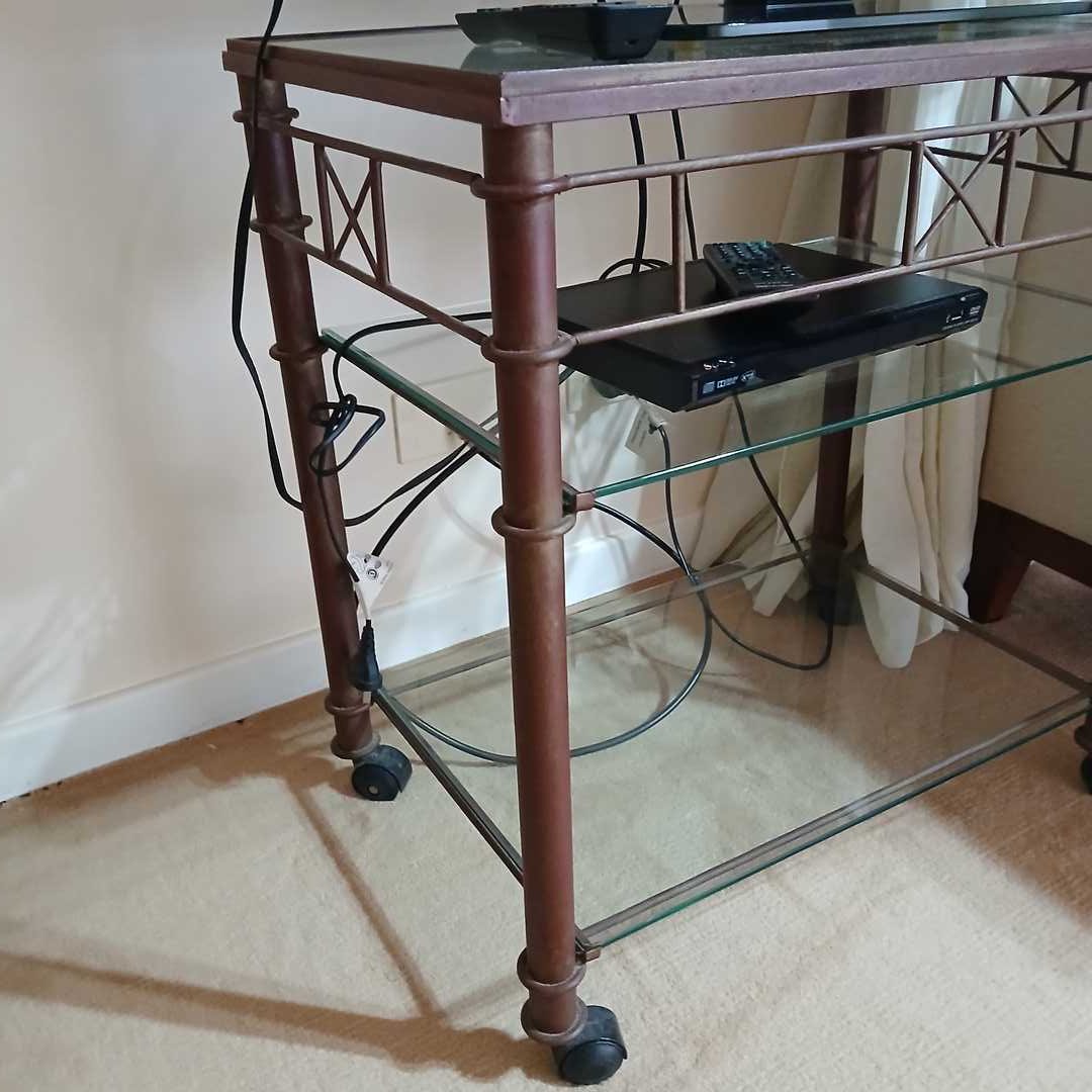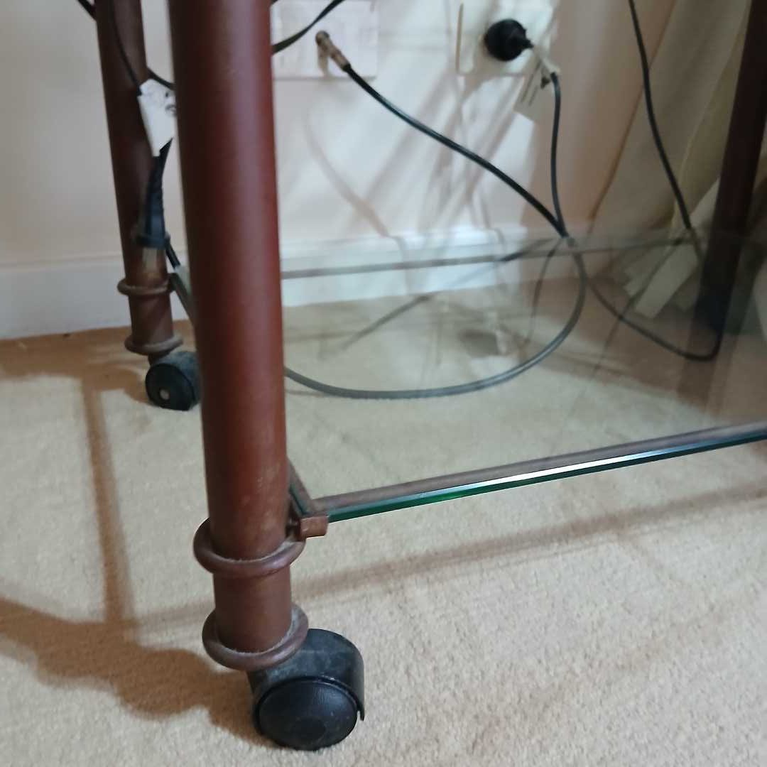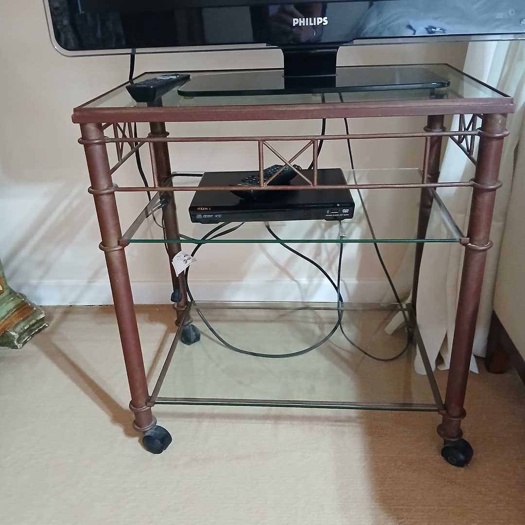 Mesa 2 planos en hierro y vidrio con ruedas 62 x 65 x 38 cm.